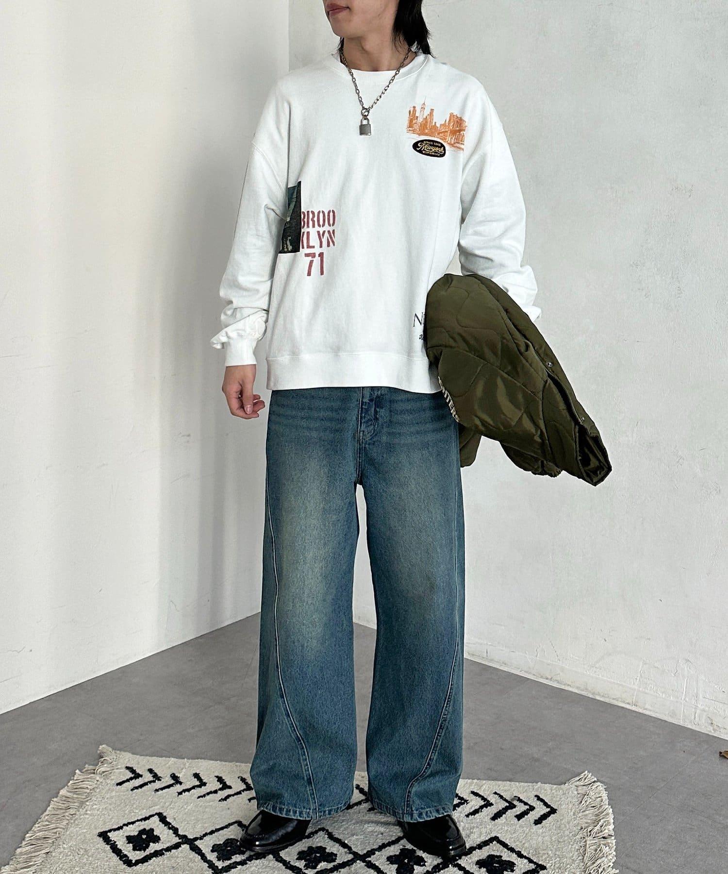 內搭工裝褲或沙拉褲。寬鬆的剪裁營造出舒適感。