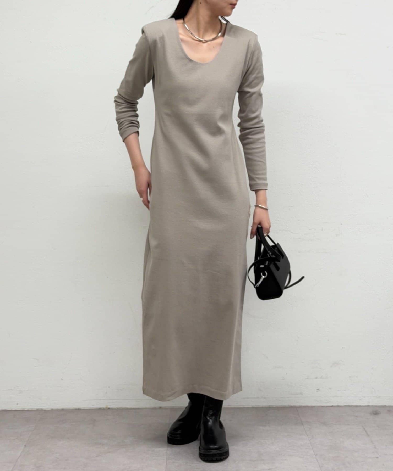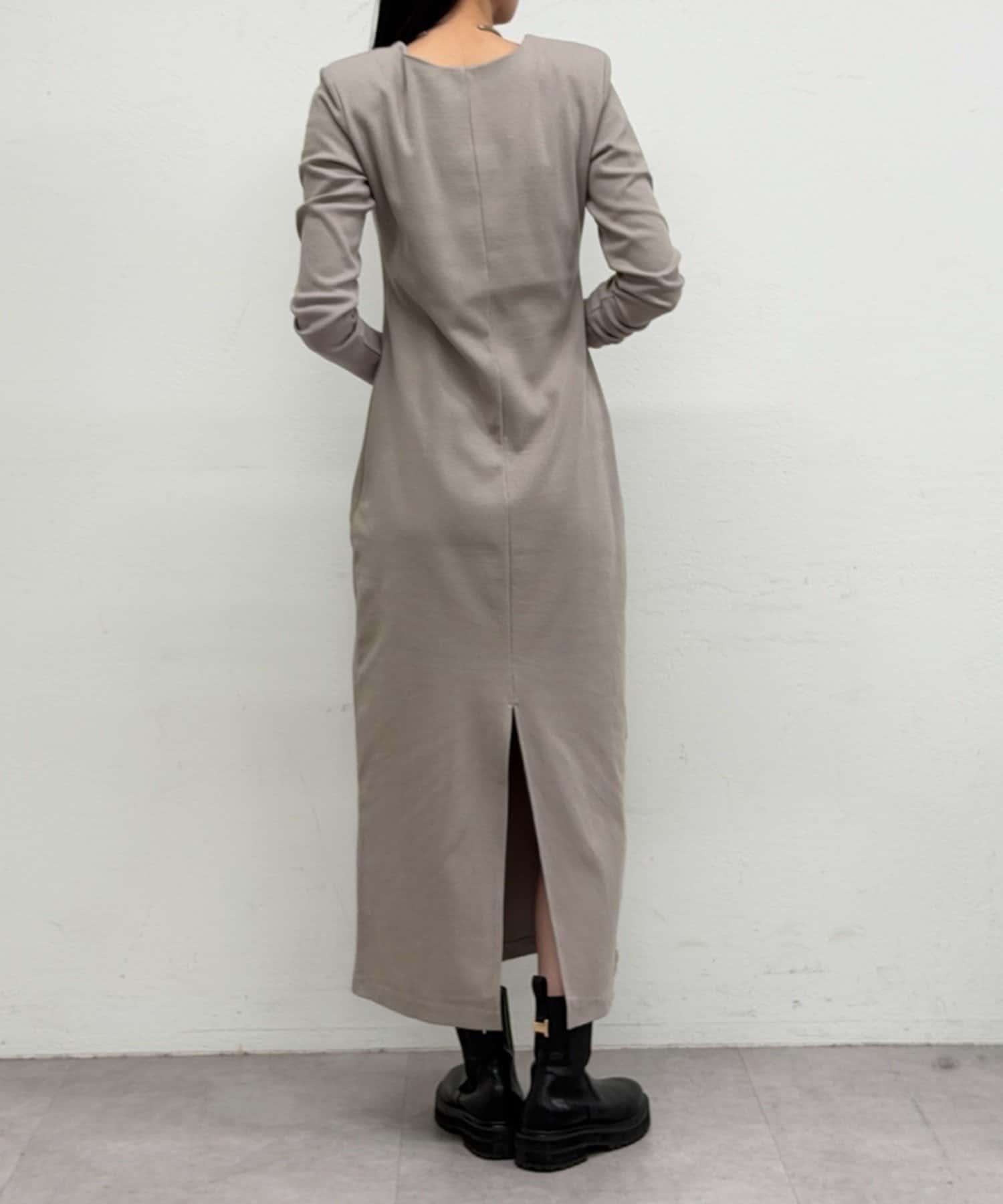 這款連衣裙的特點是微妙的力量肩設計。通過稍稍強調肩部線條,使整體輪廓更加豐滿,只需穿上它就能感受到提升氣質的效果。