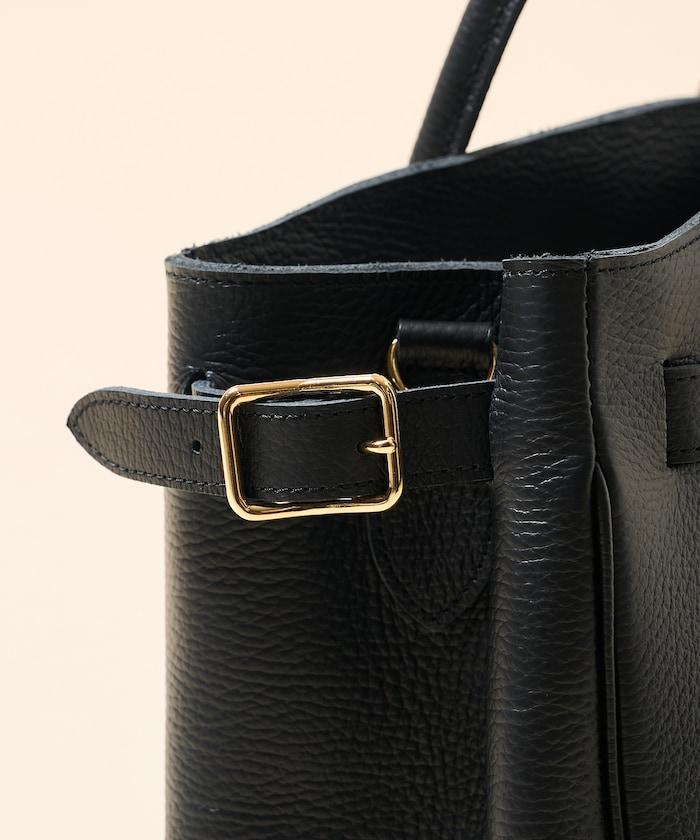 包包採用優質皮革製成,手感奢華,包身烙有金色品牌名稱。