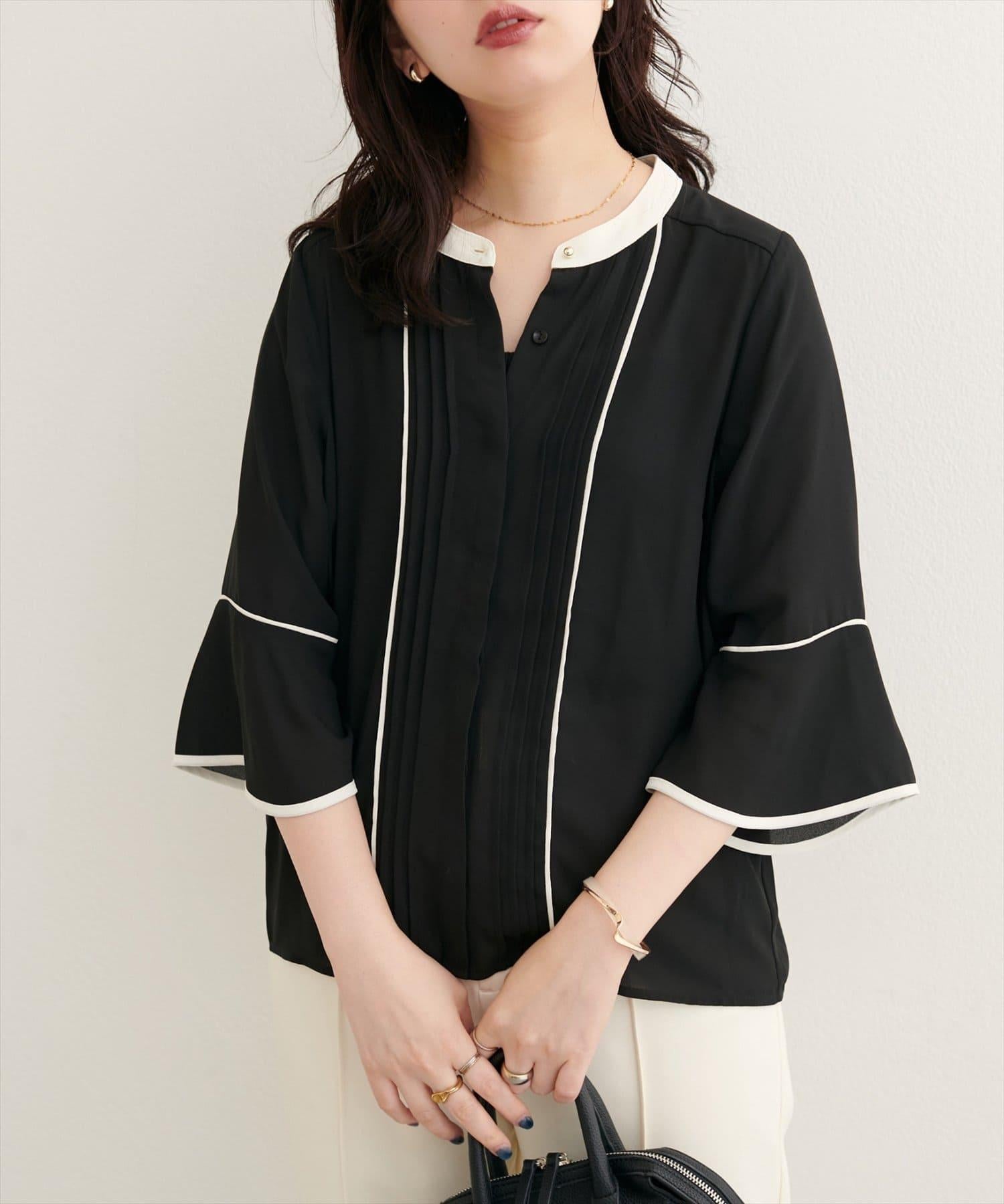 這款細褶喇叭袖上衣彰顯出成熟成人的甜美氣質。