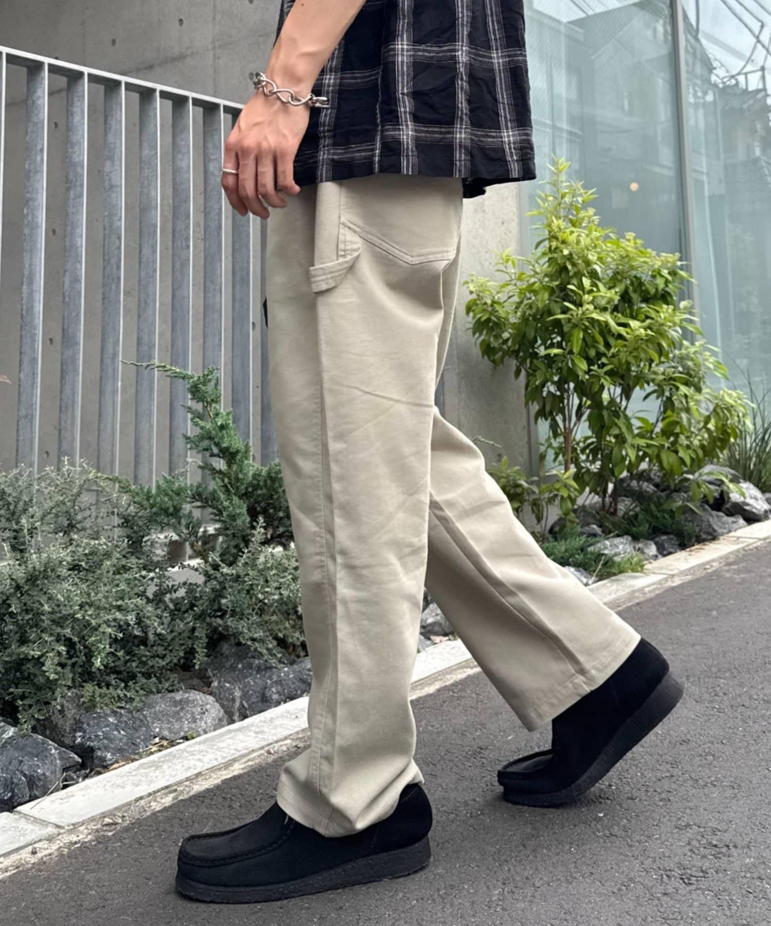 工裝褲細節中的口袋和縫線起到了很好的點綴作用!