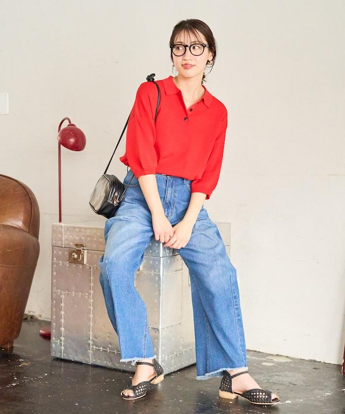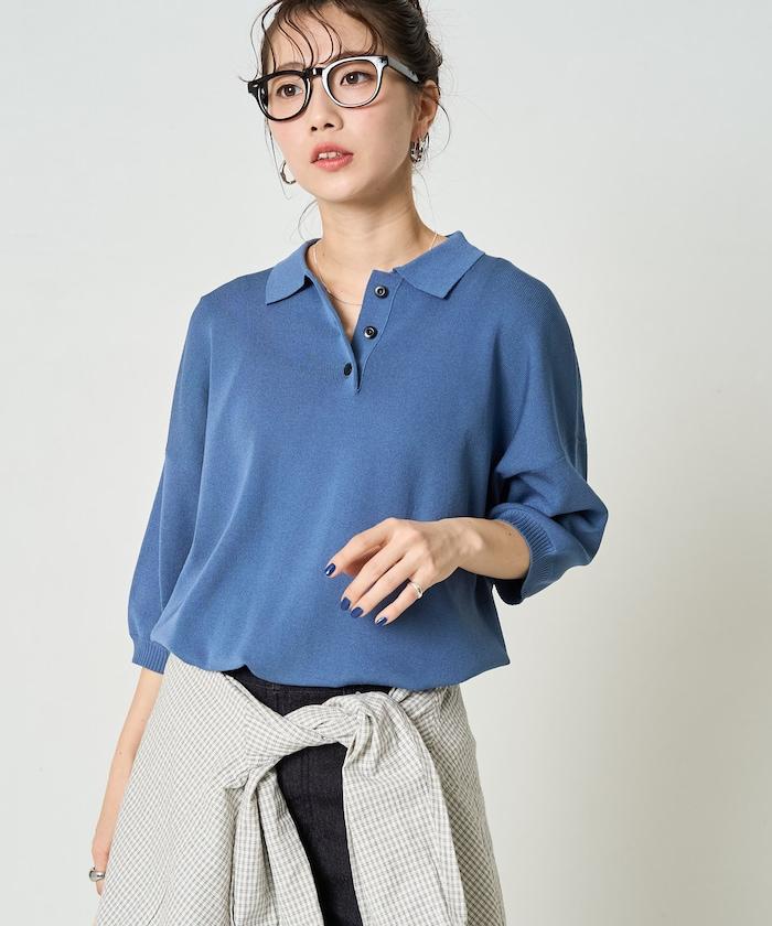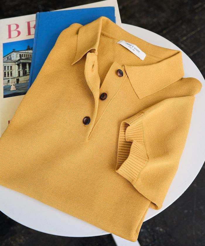 這款短袖 polo 針織衫根據下裝搭配的不同,給人完全不同的感覺。