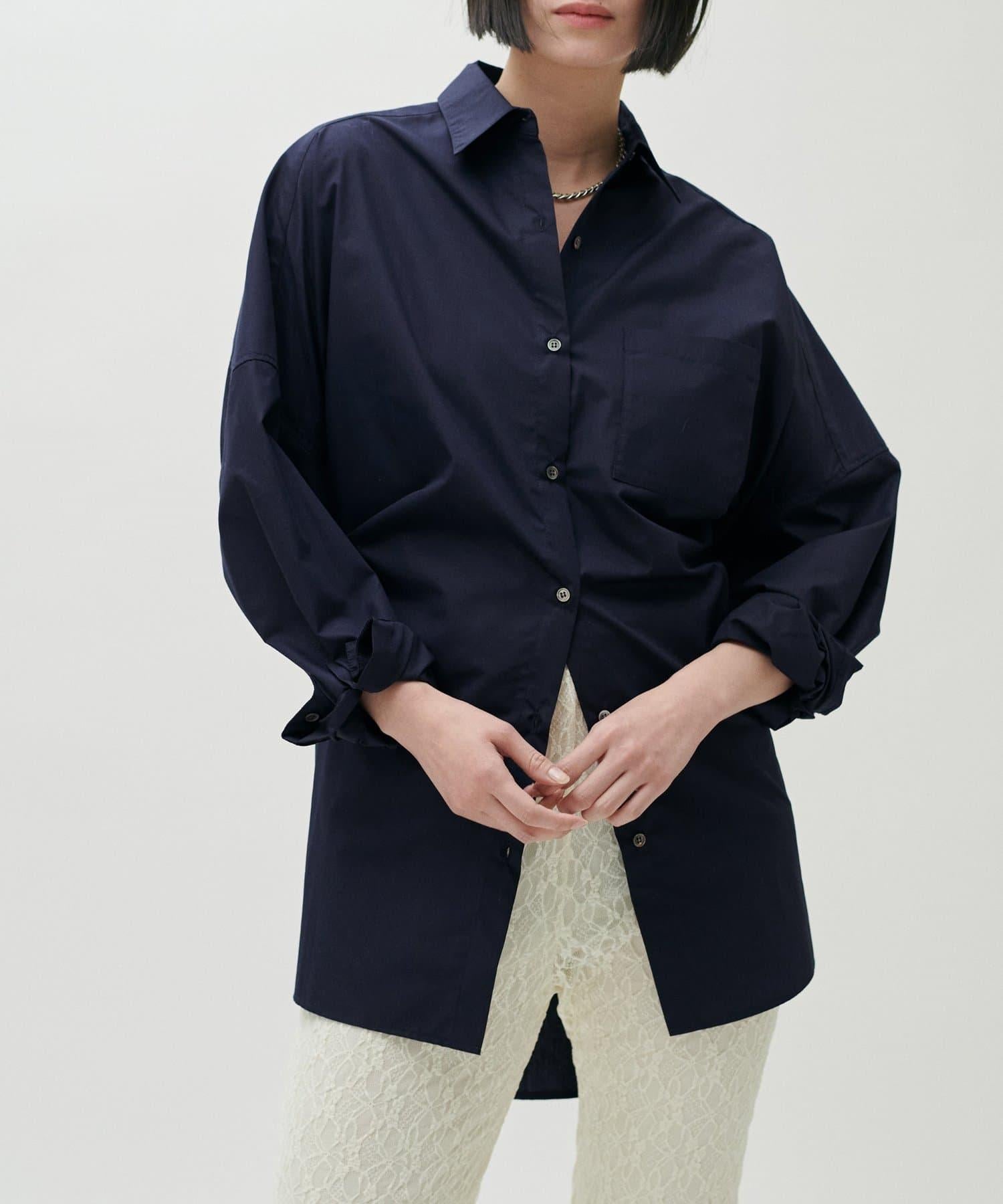 原樣穿著時,它是一件寬鬆感十足的大襯衫、