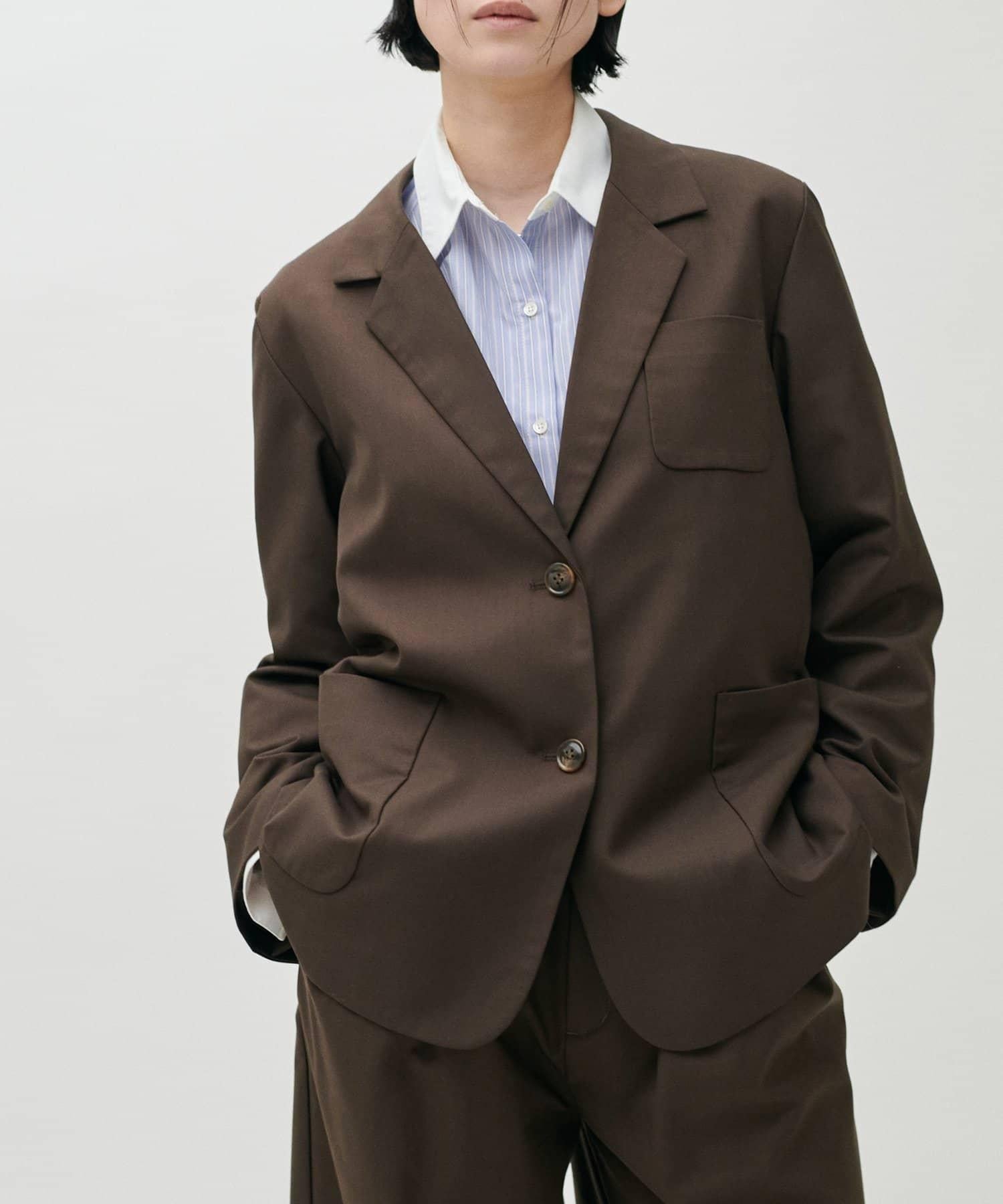 扣上兩側和後背的紐扣,營造出弧形的垂感,增添一絲女人味。