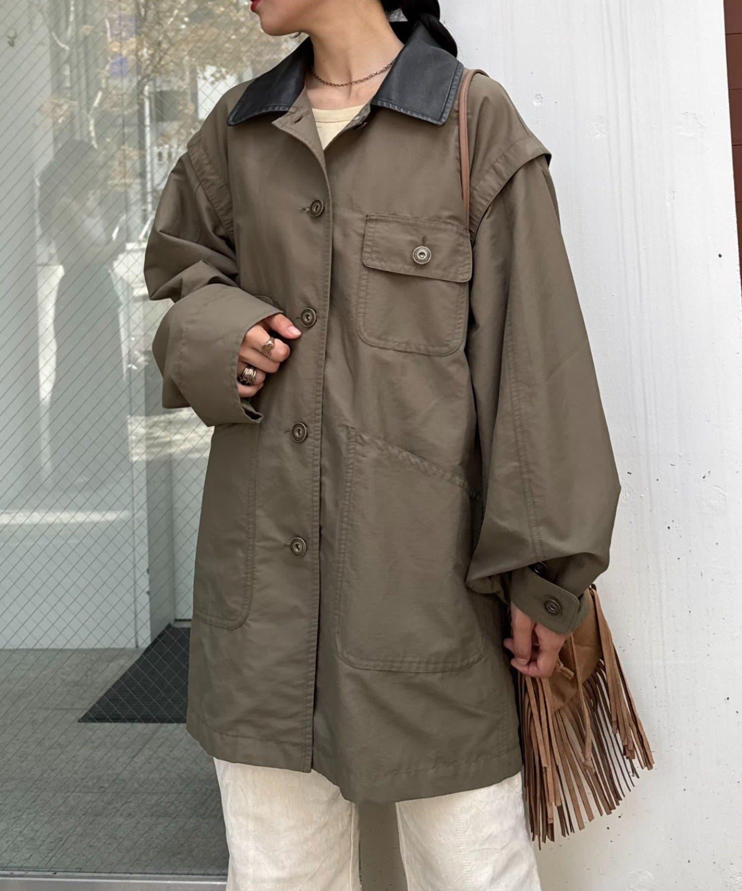 成人舒適造型。寬鬆的工作夾克,領口採用彩色編碼。