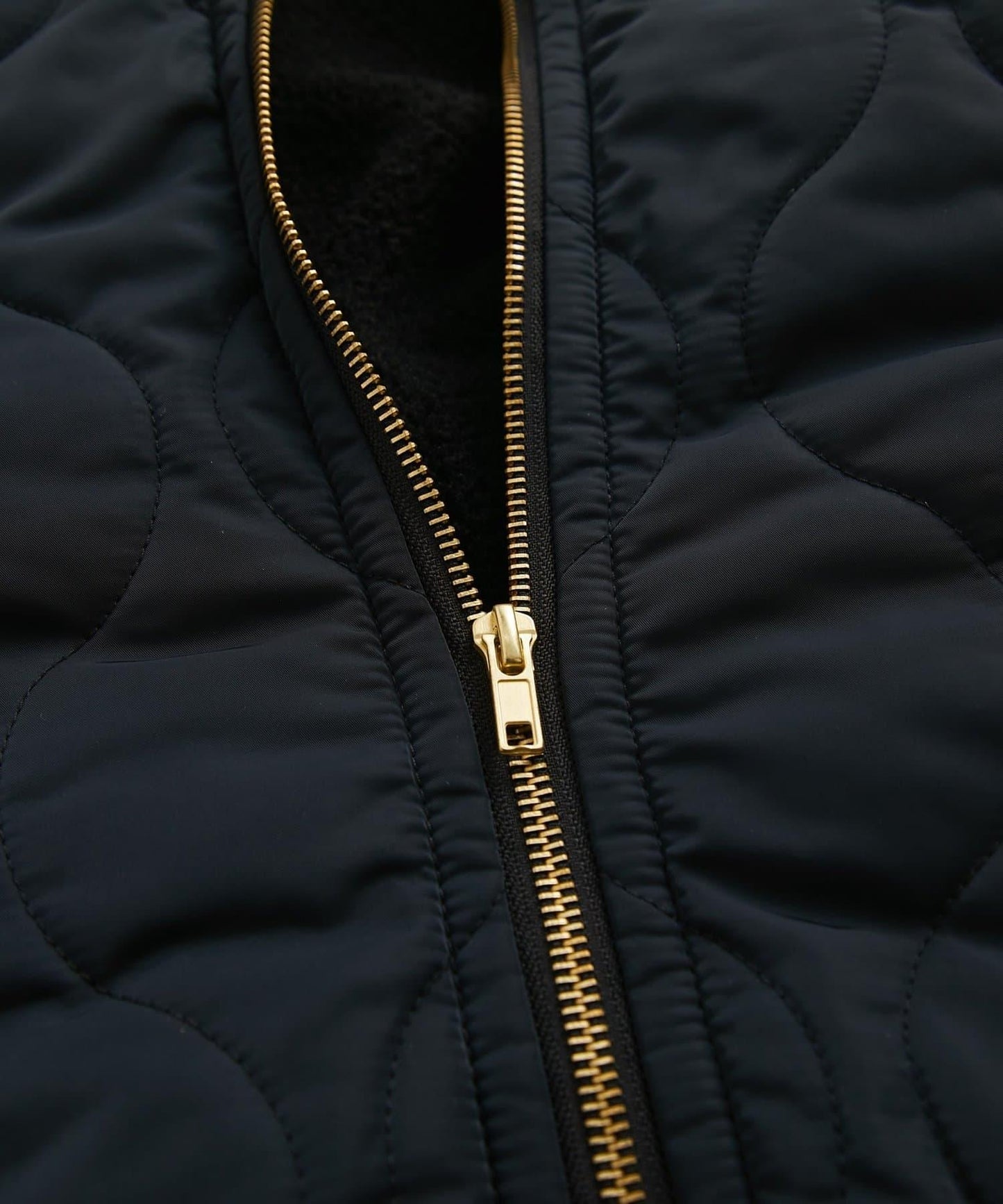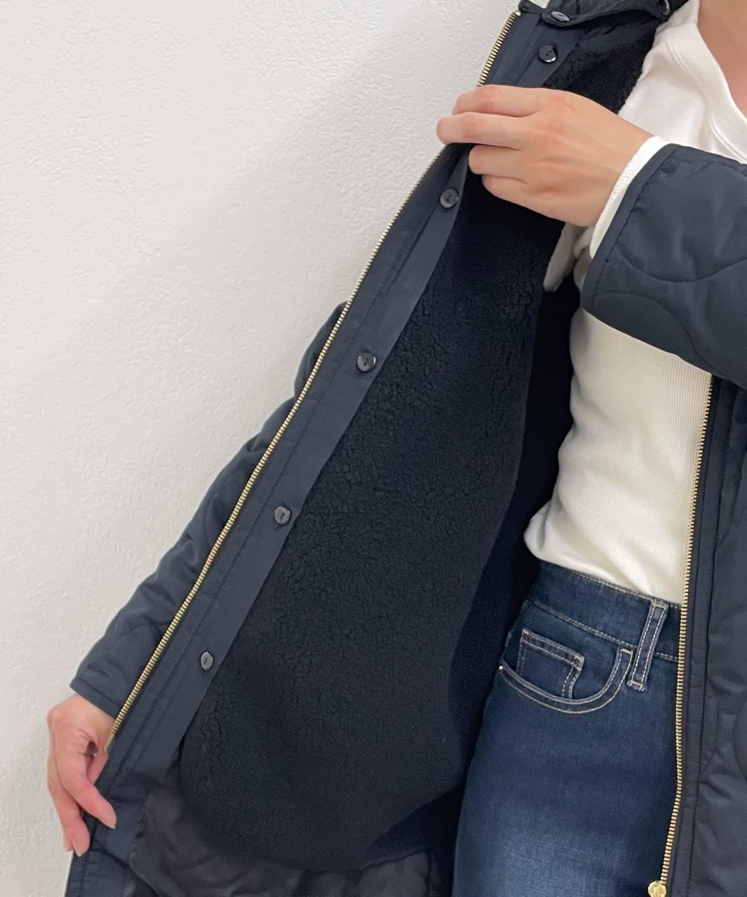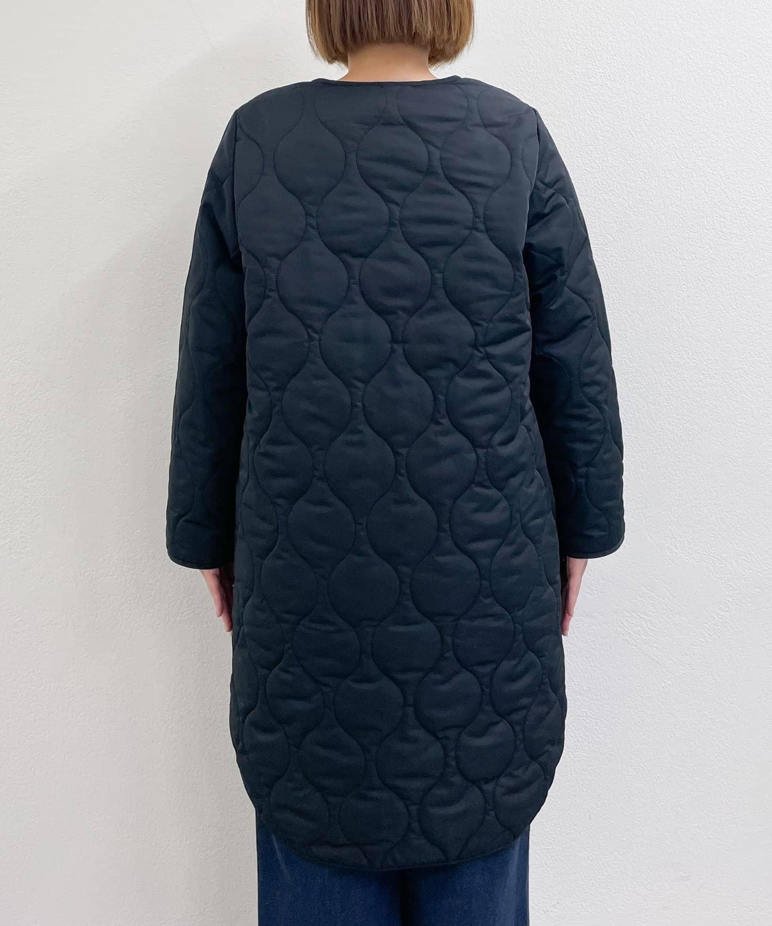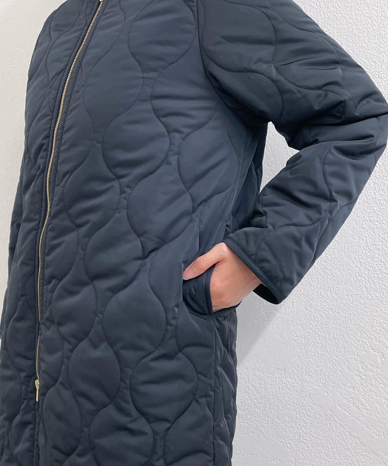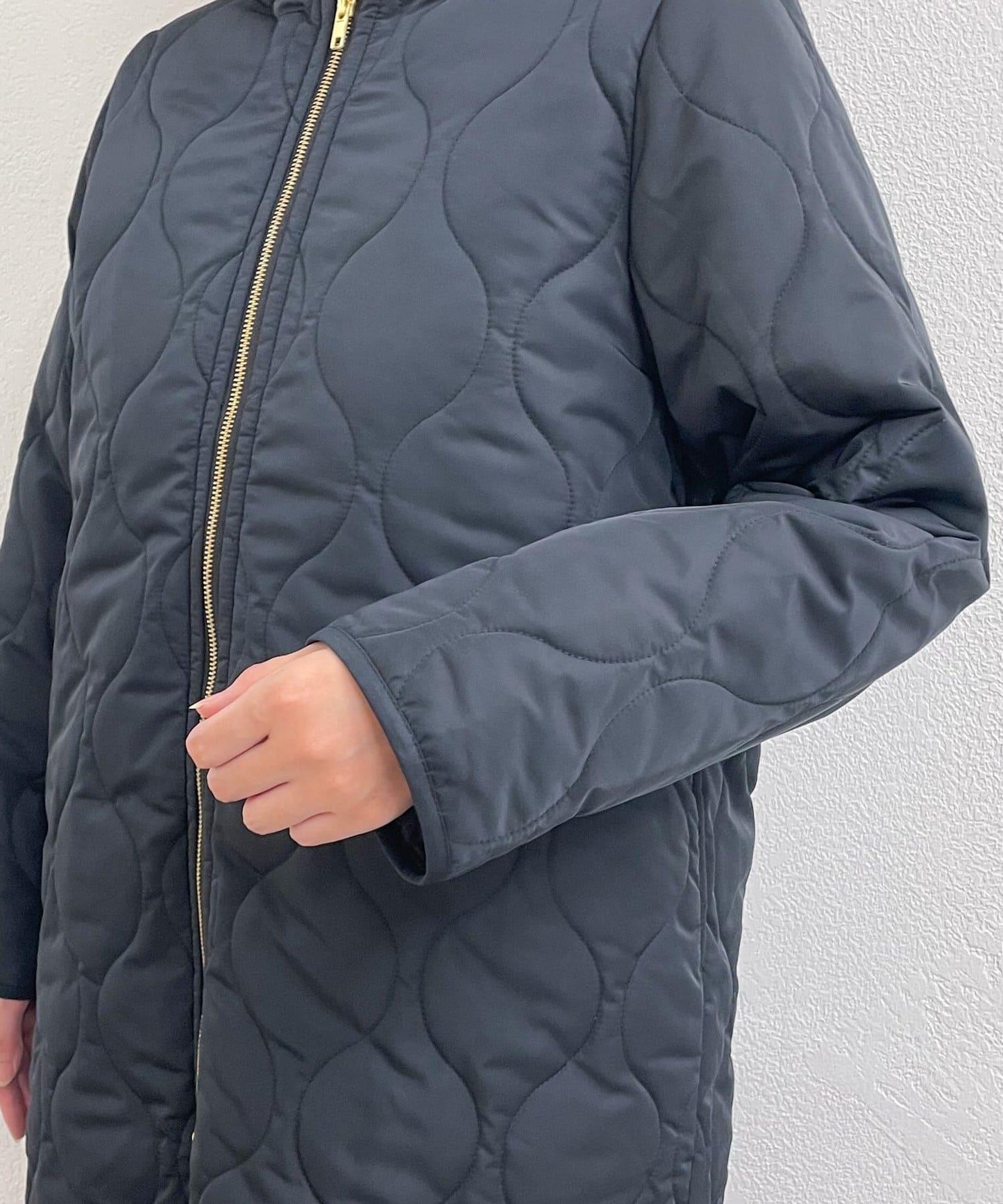 這款大衣採用厚薄適中的絎縫材料製成,適合日常穿著。