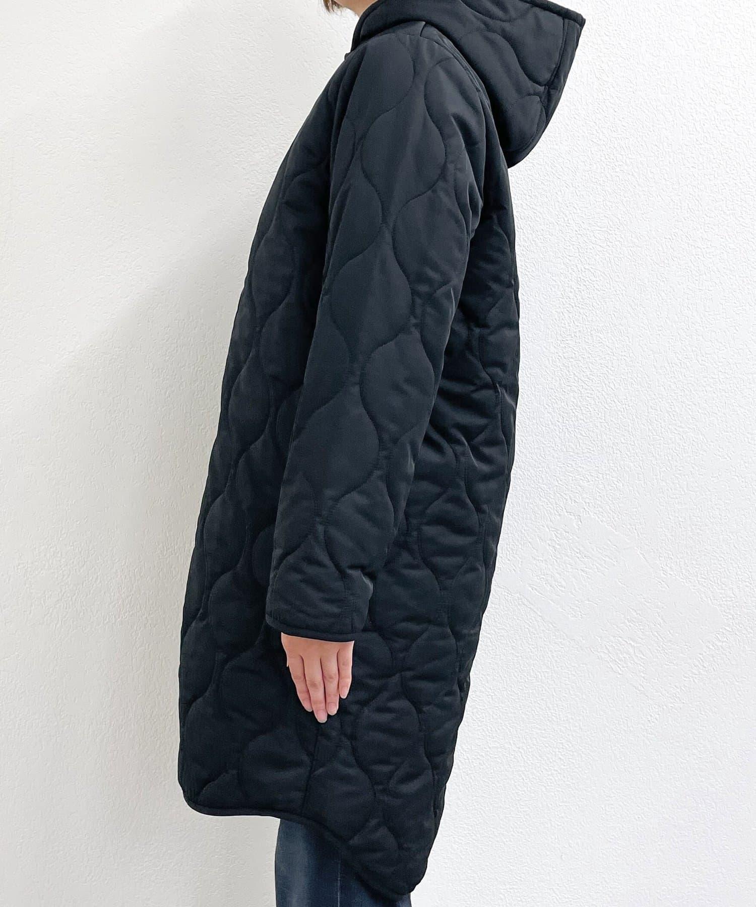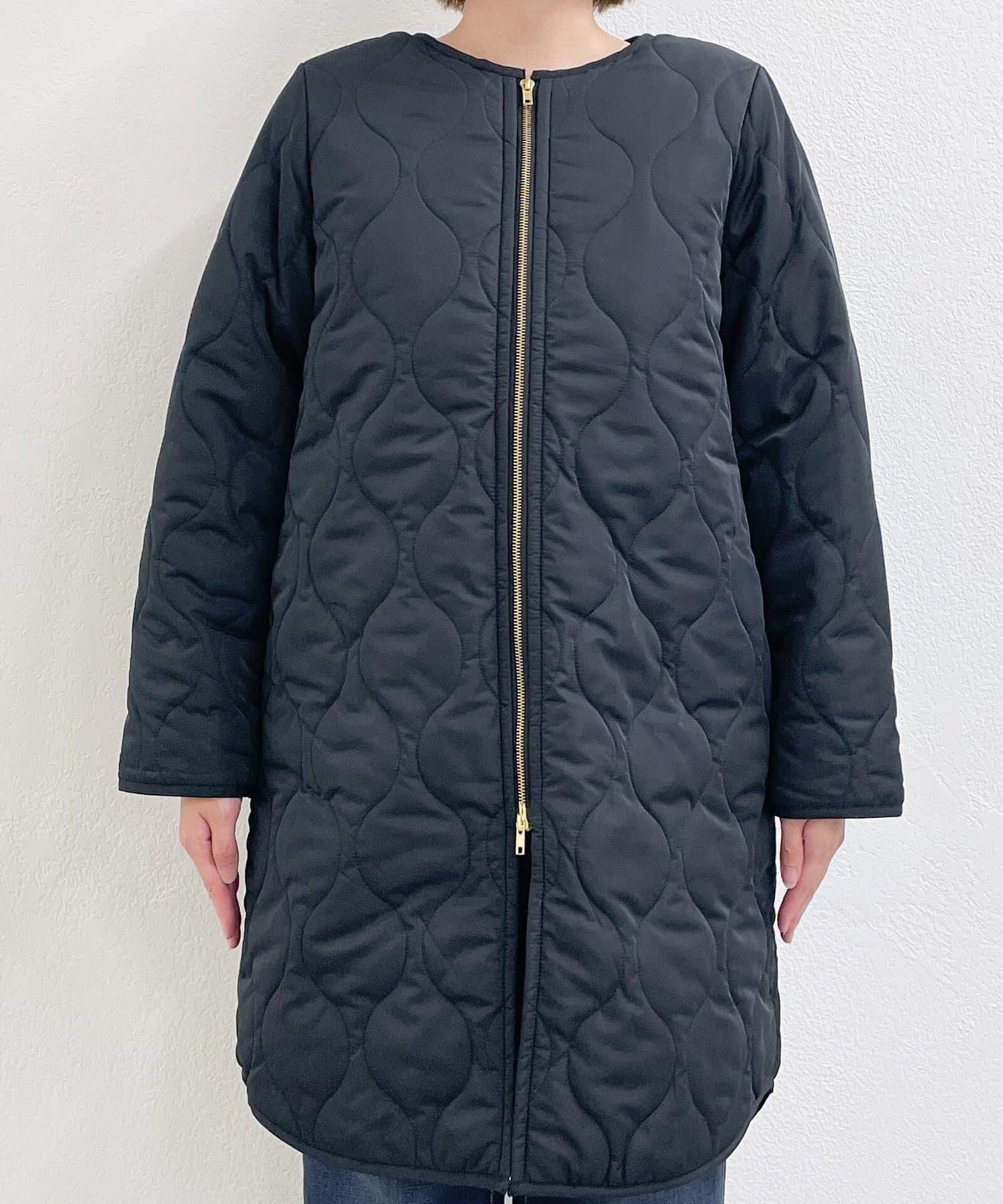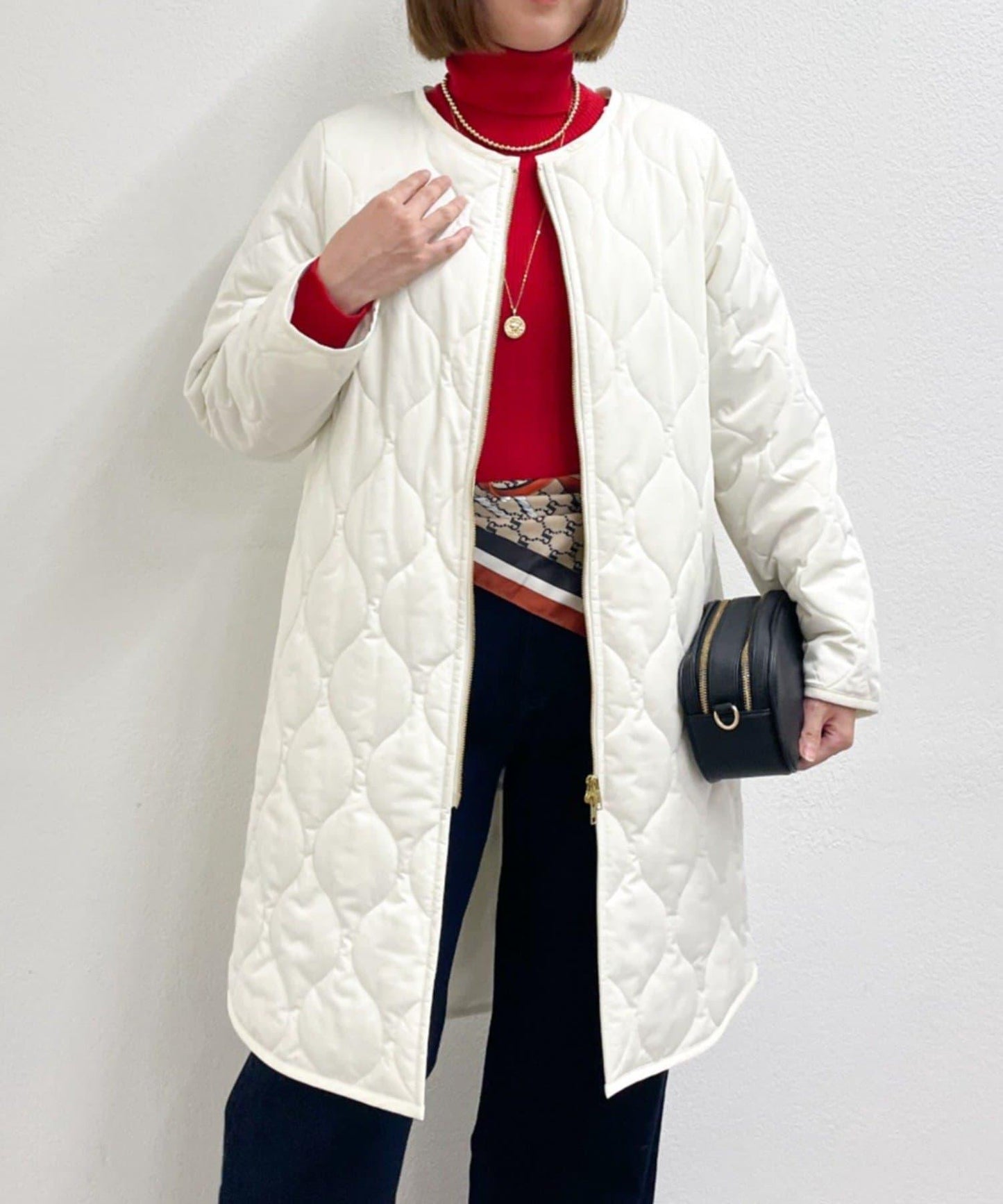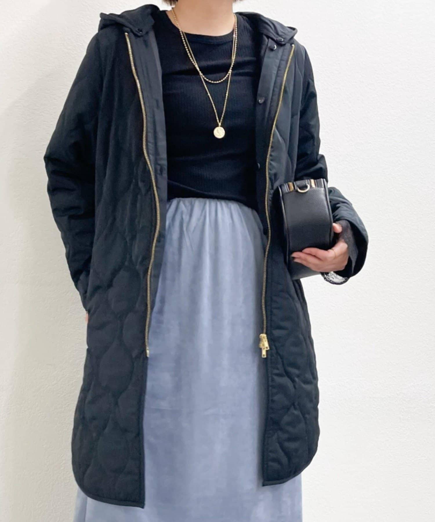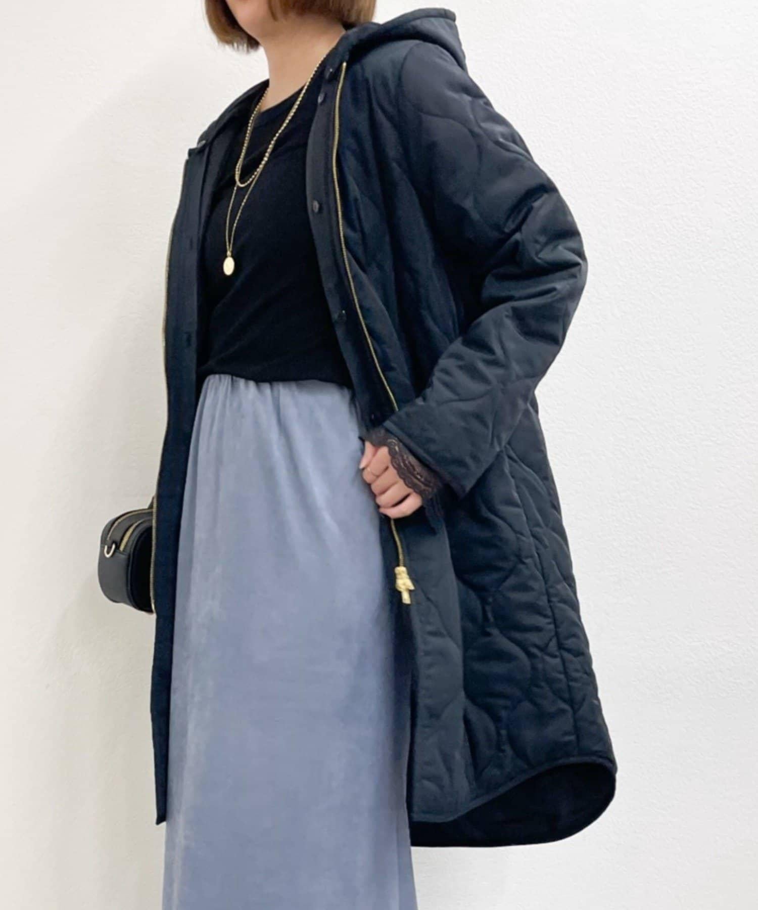 這款大衣採用厚薄適中的絎縫材料製成,適合日常穿著。