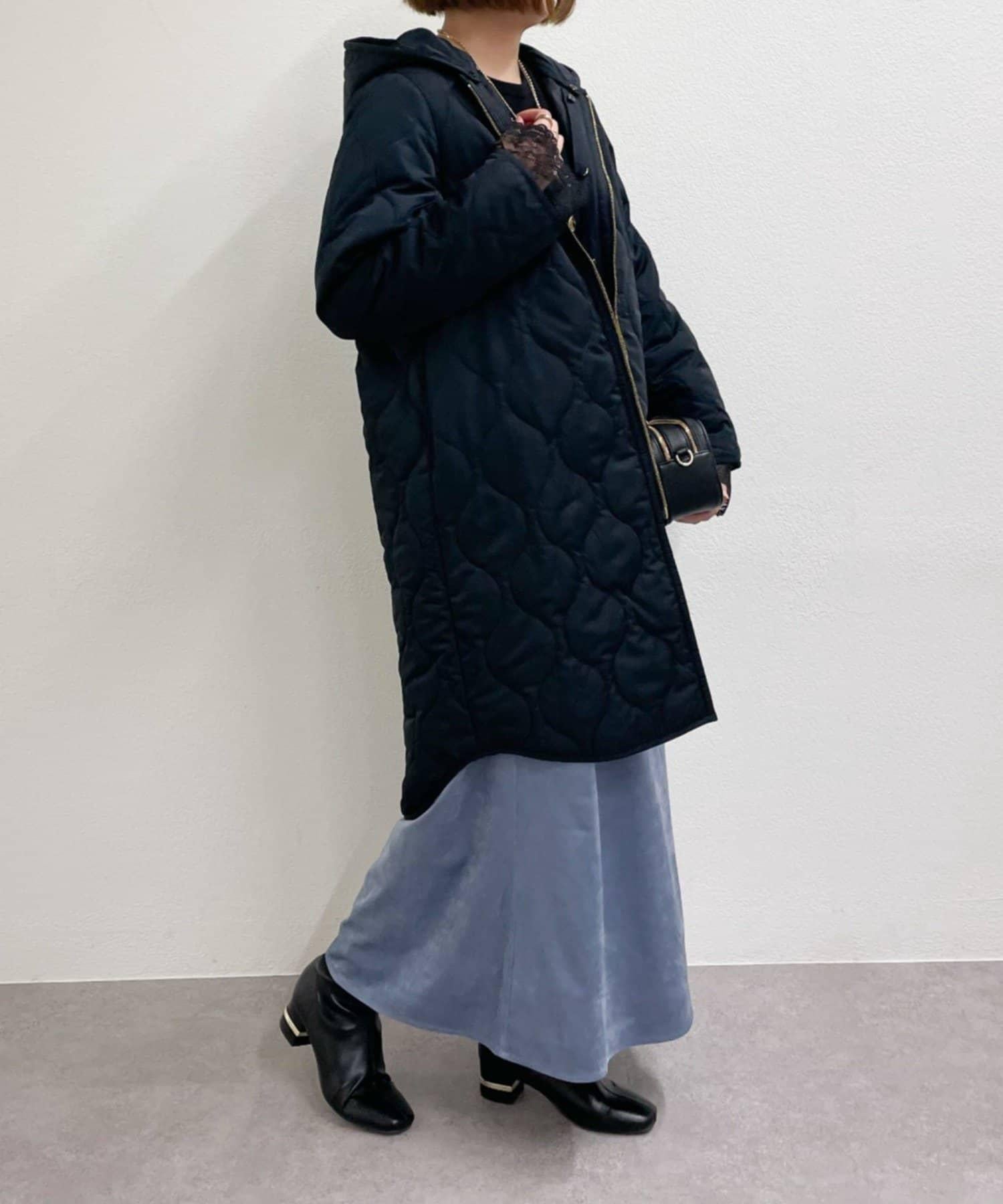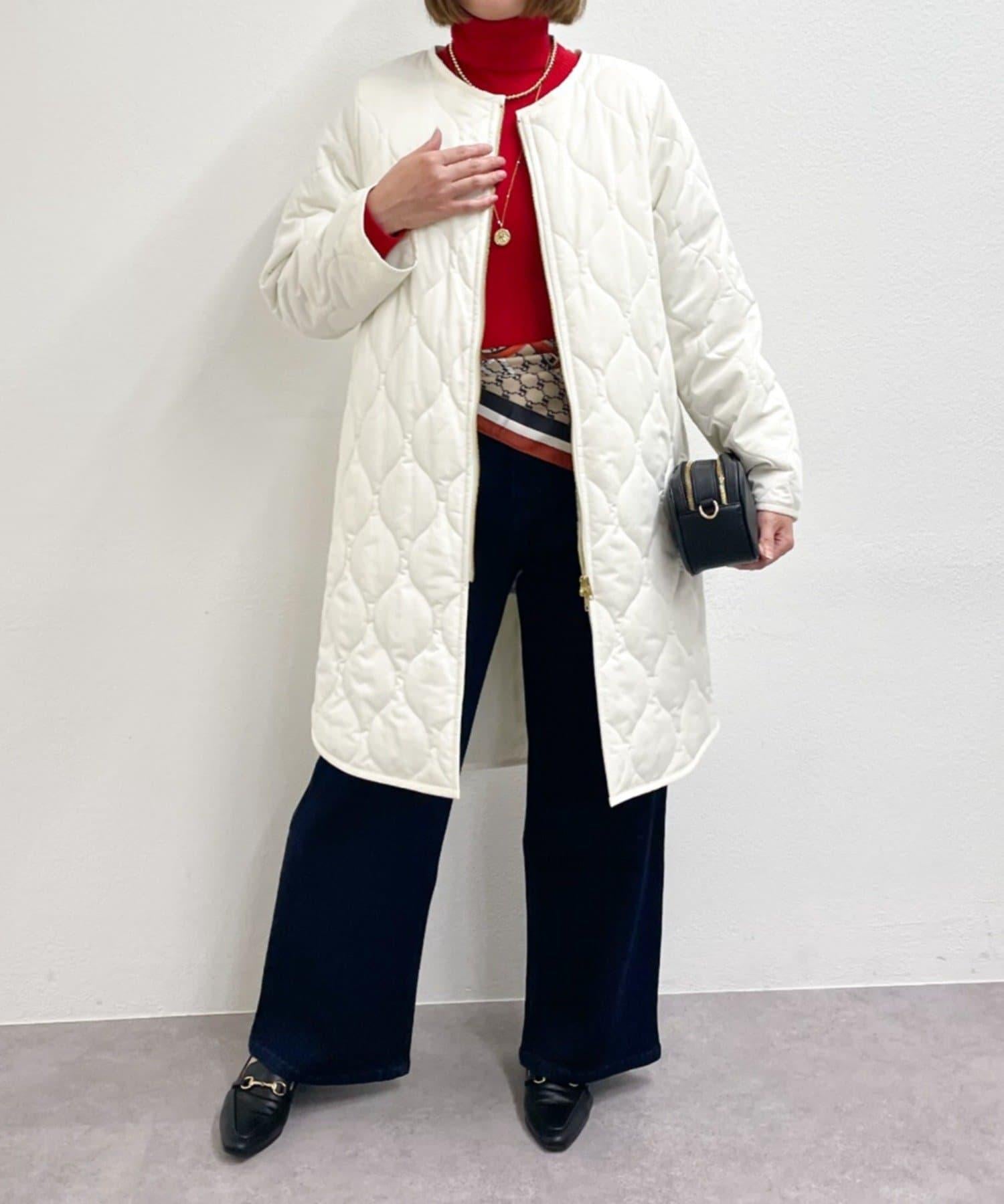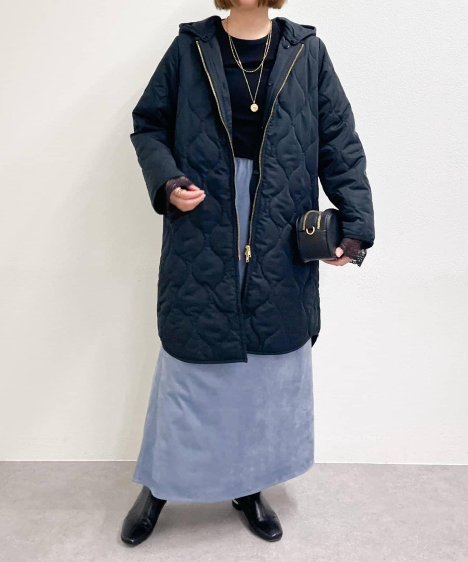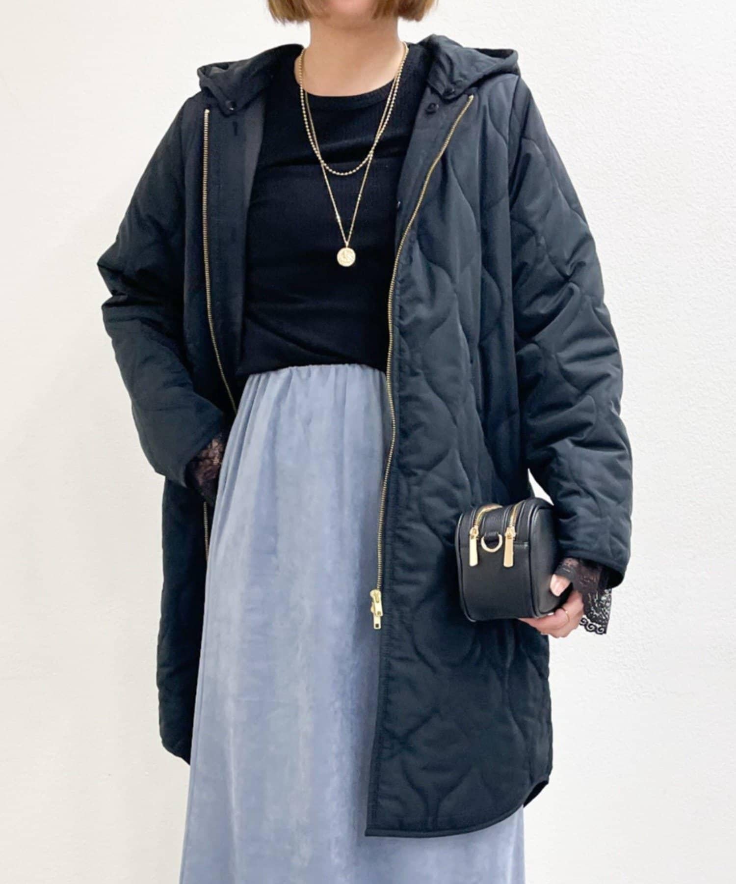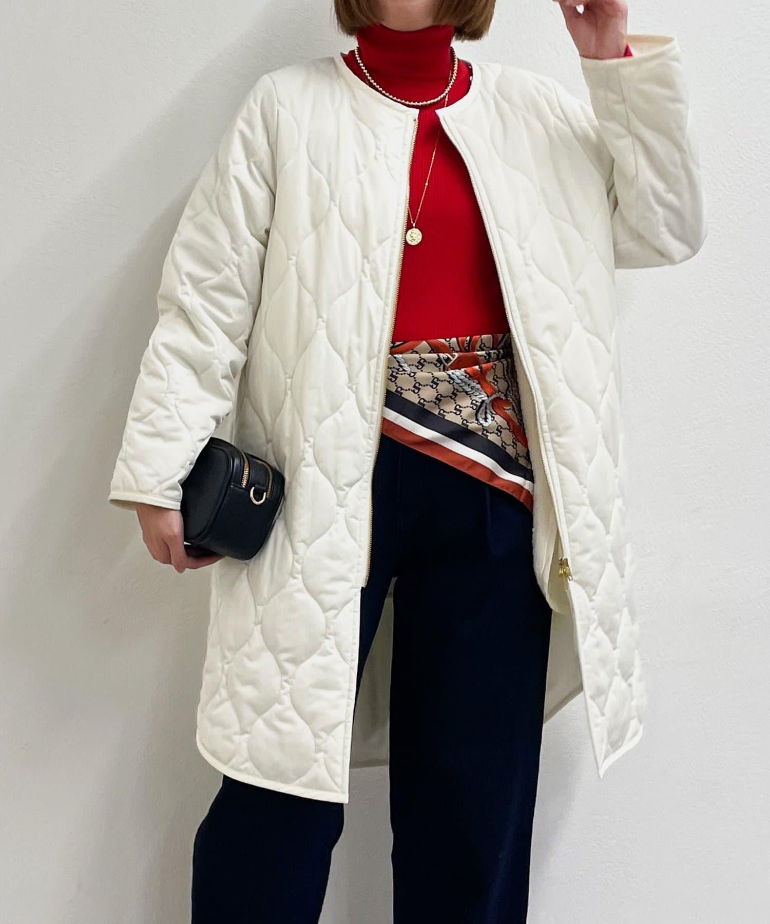 這款大衣採用厚薄適中的絎縫材料製成,適合日常穿著。