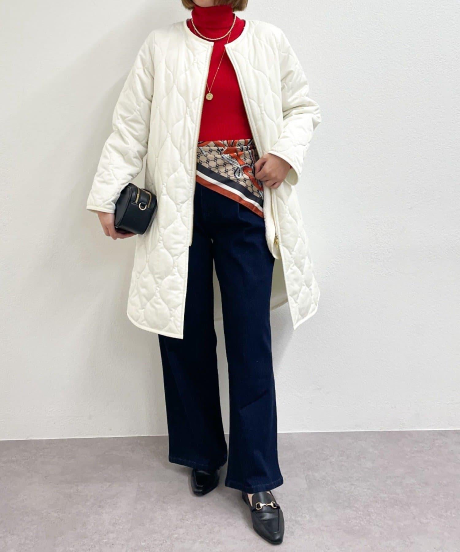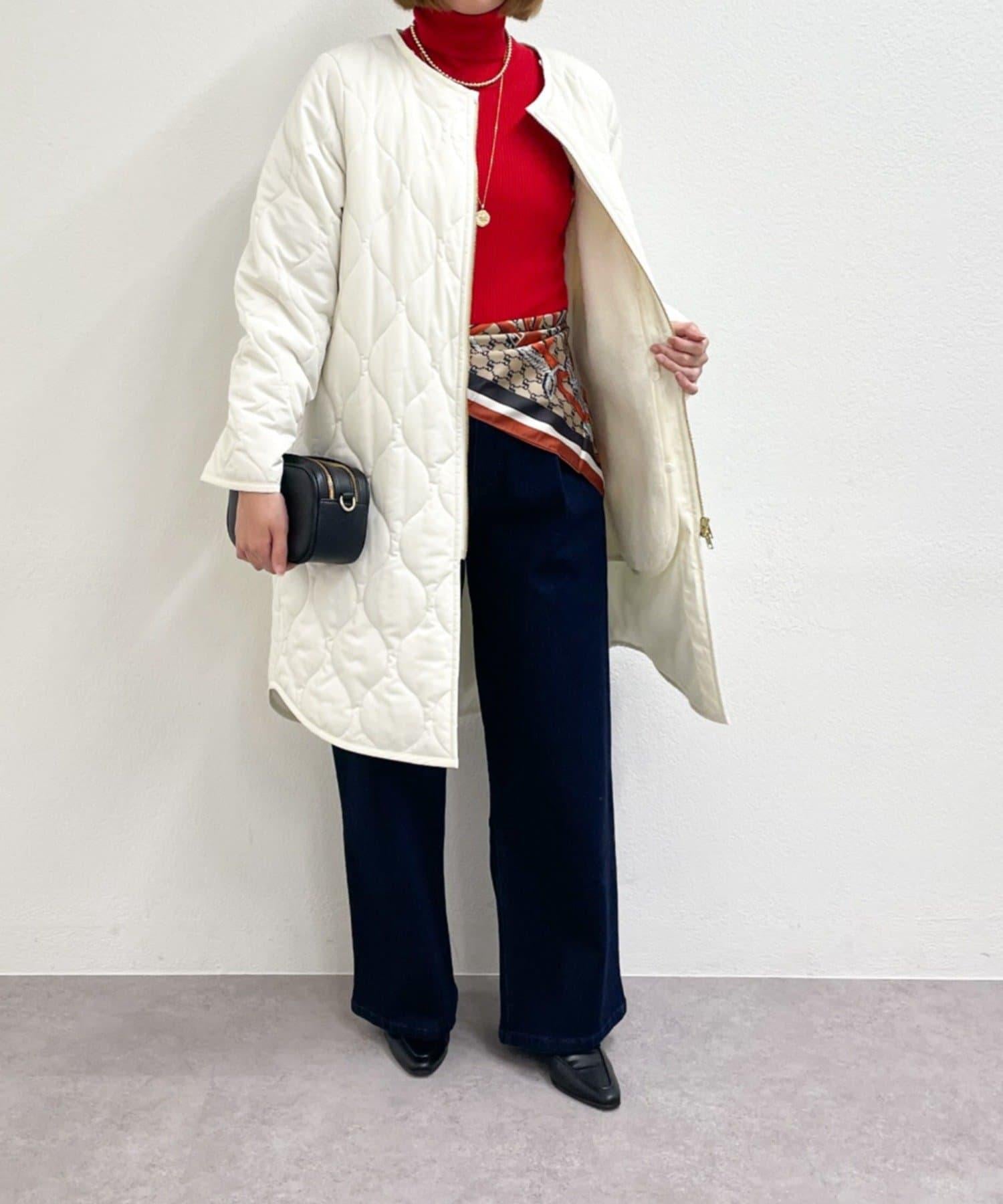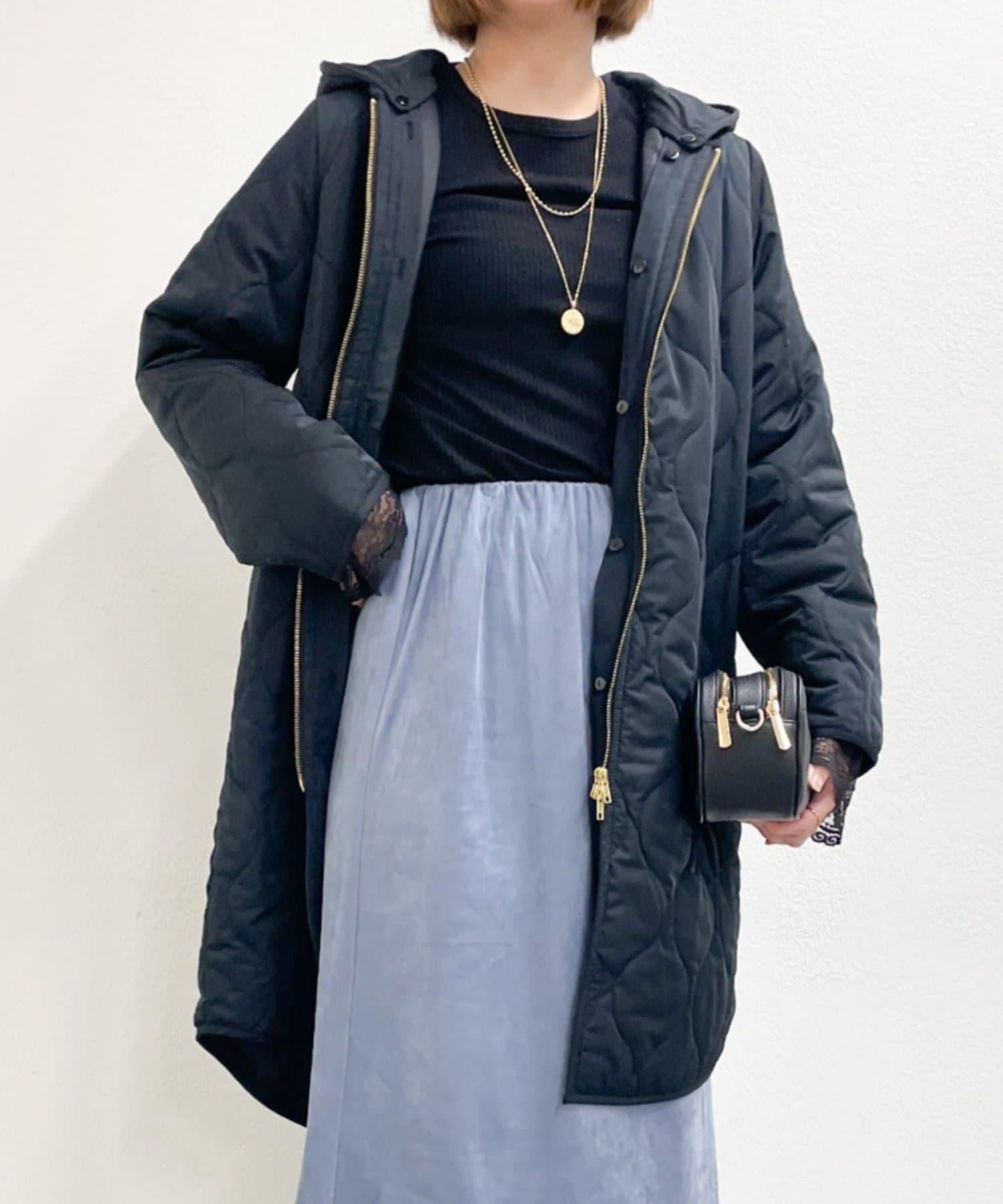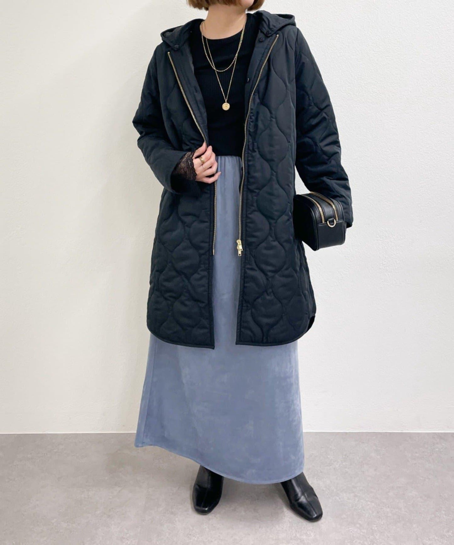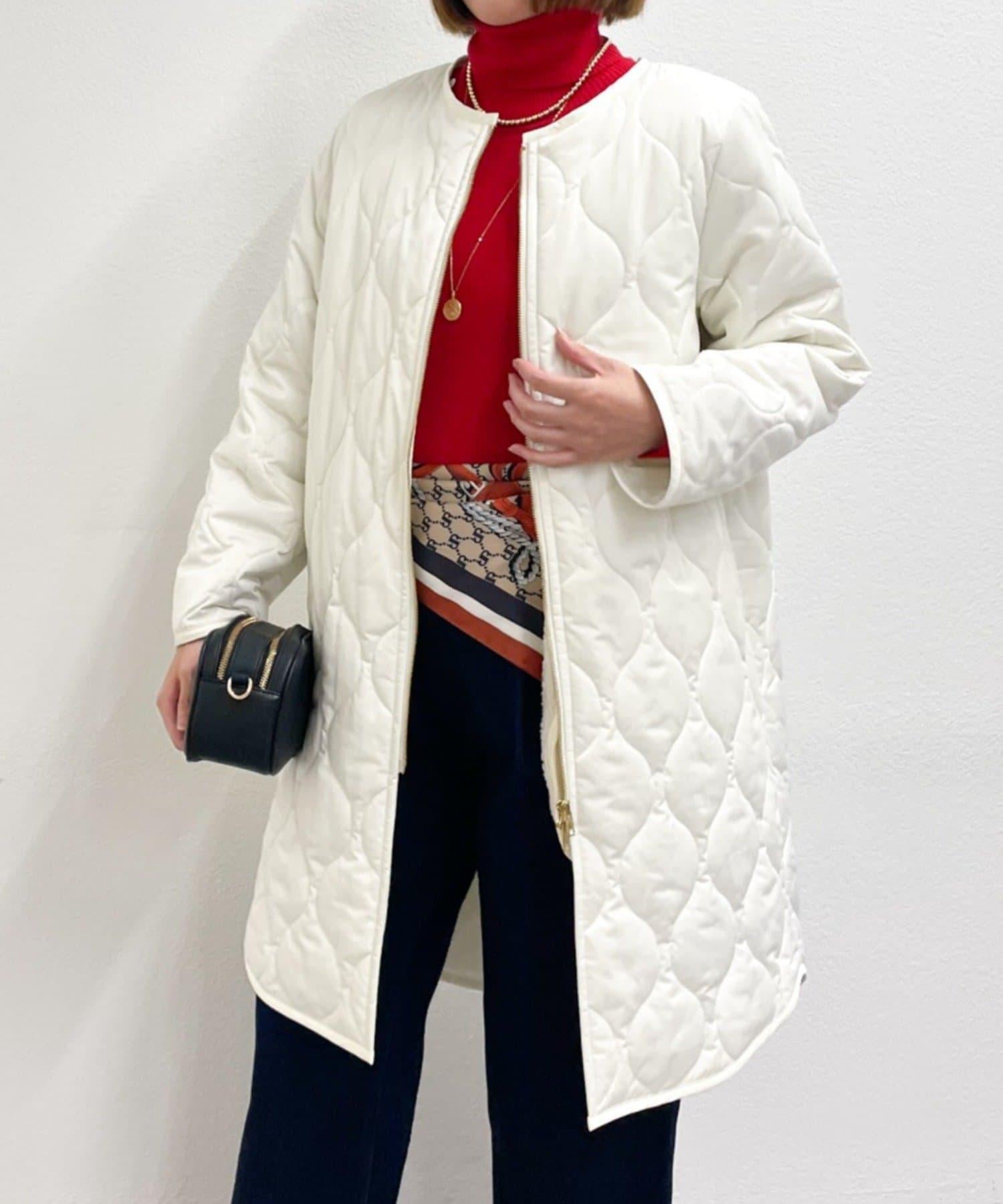 這款大衣採用厚薄適中的絎縫材料製成,適合日常穿著。