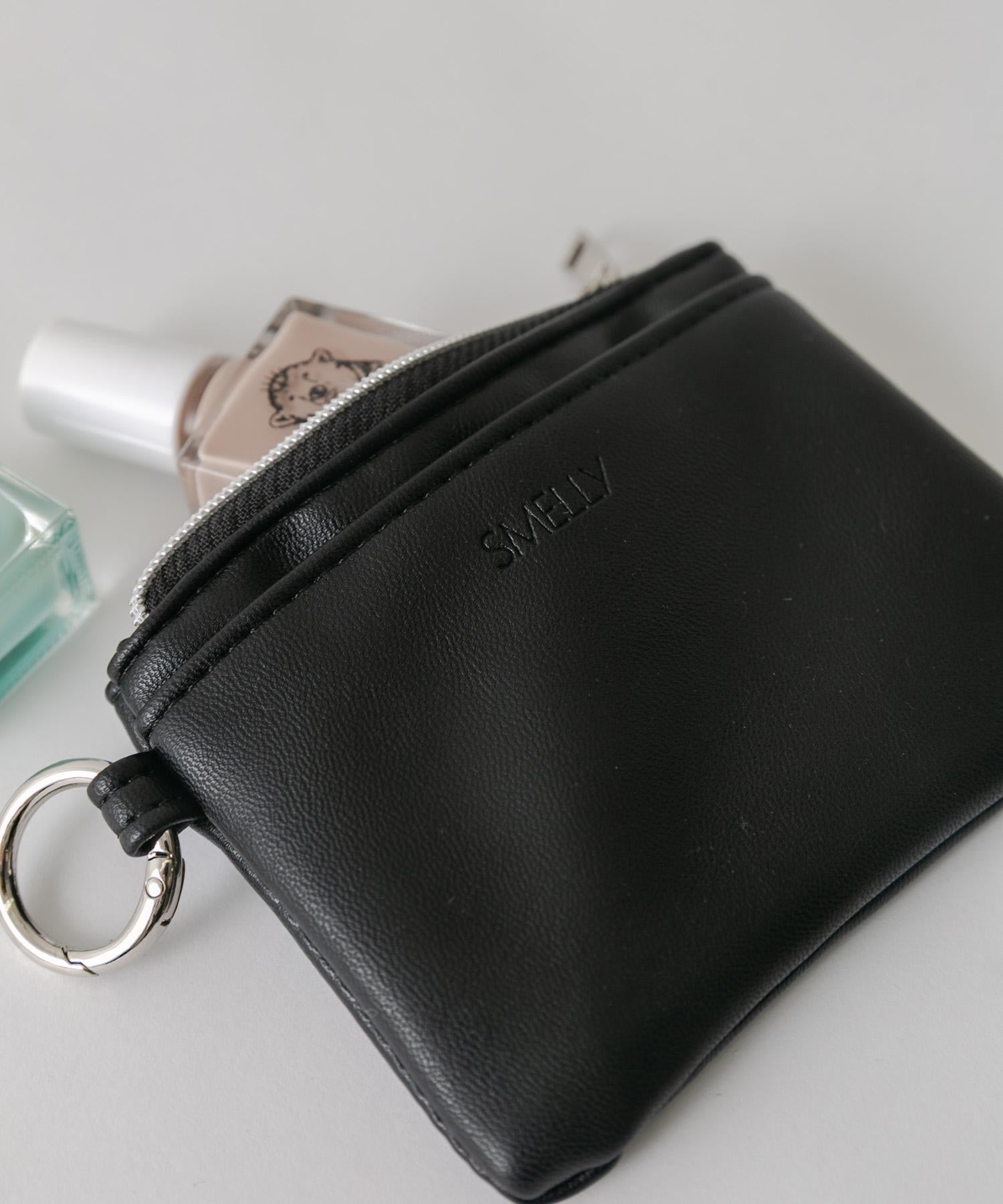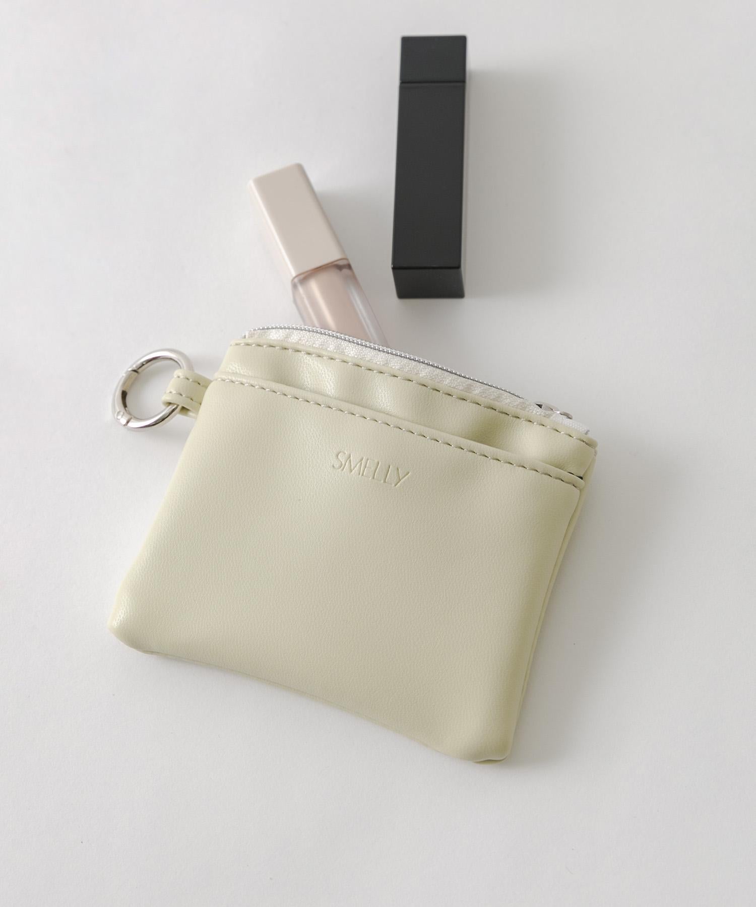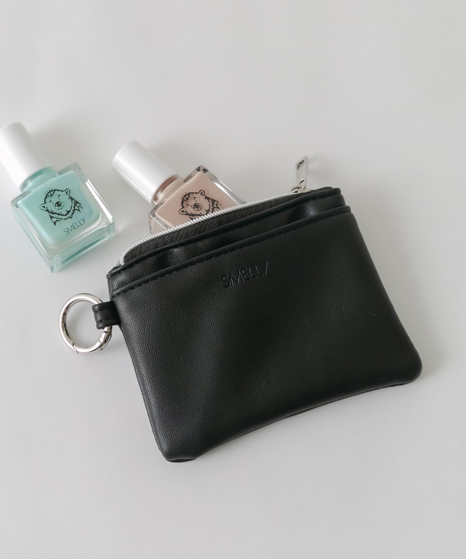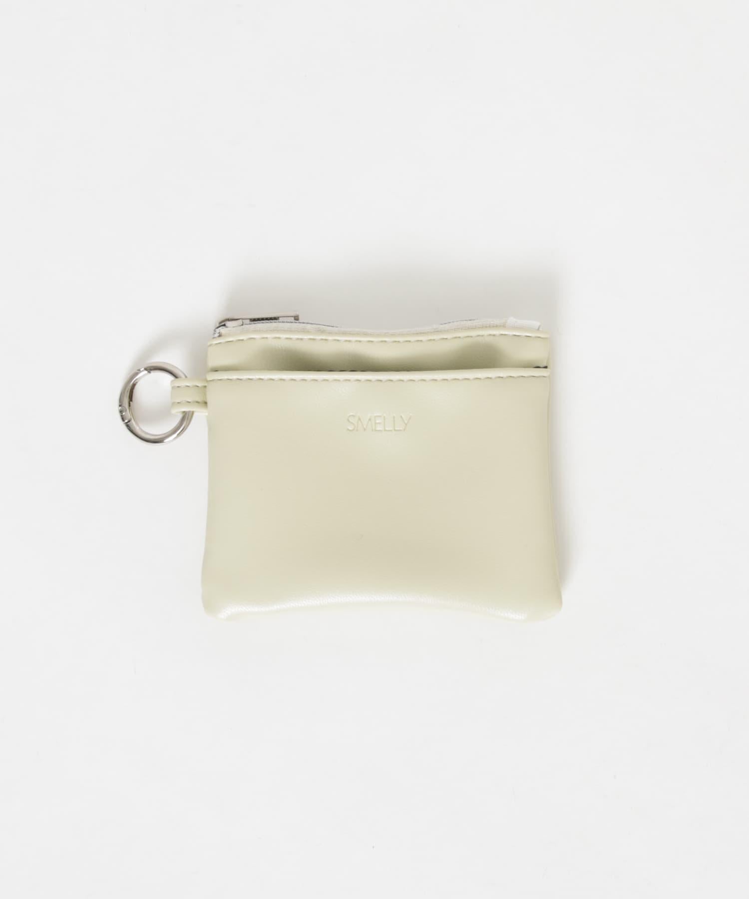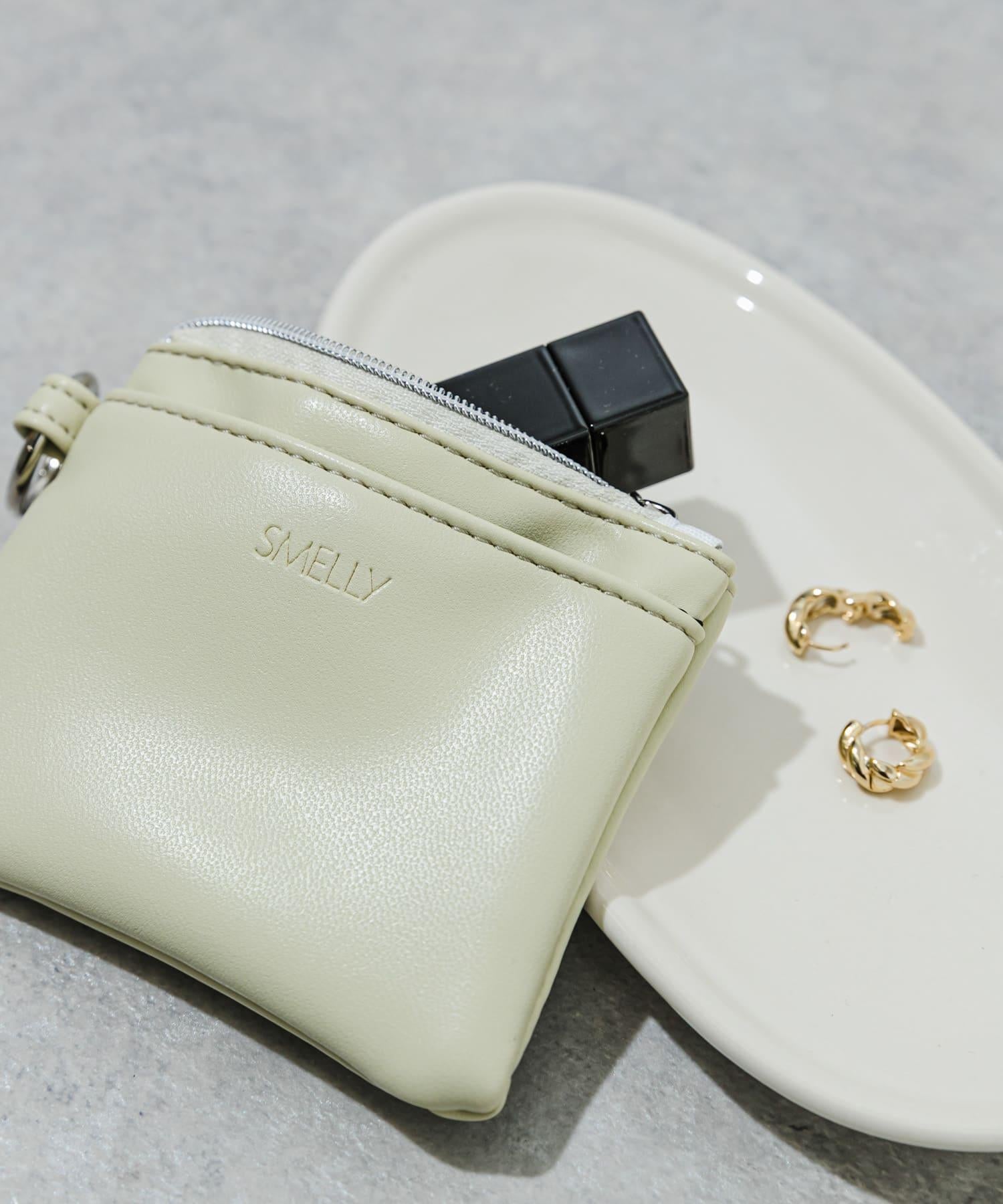 這款迷你小袋採用成熟的人造皮革質地,並帶有 SMELLY 的單點標誌。