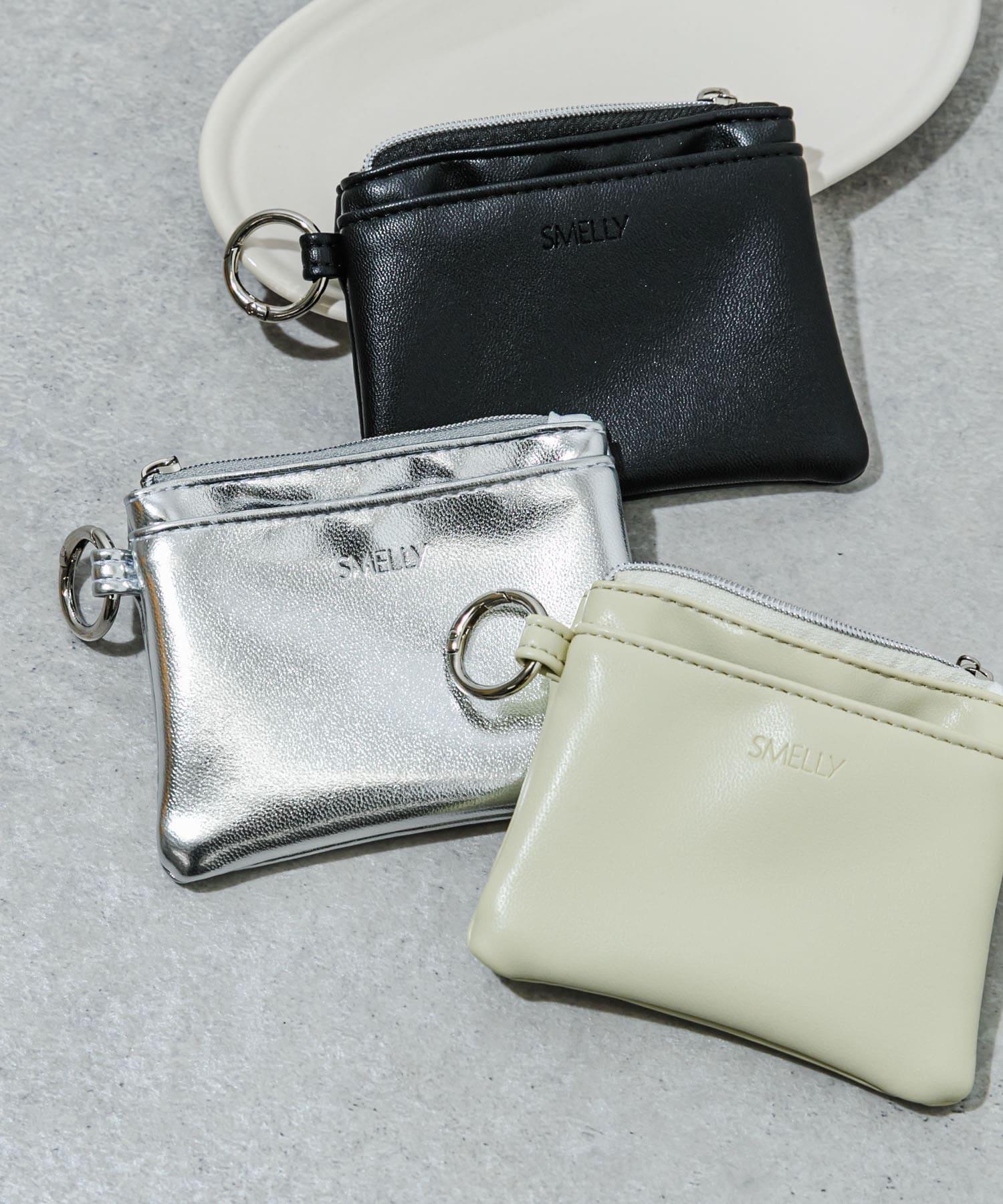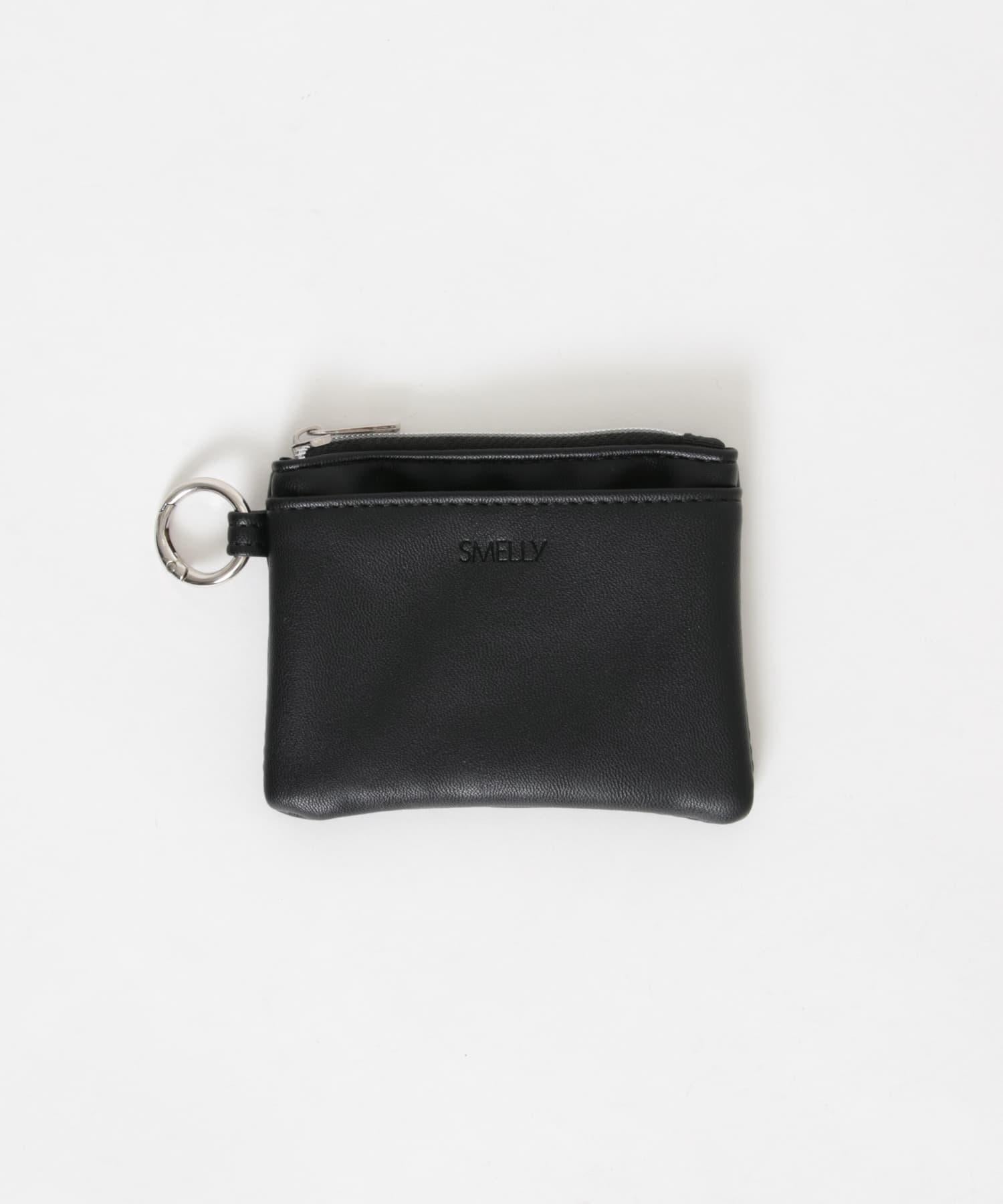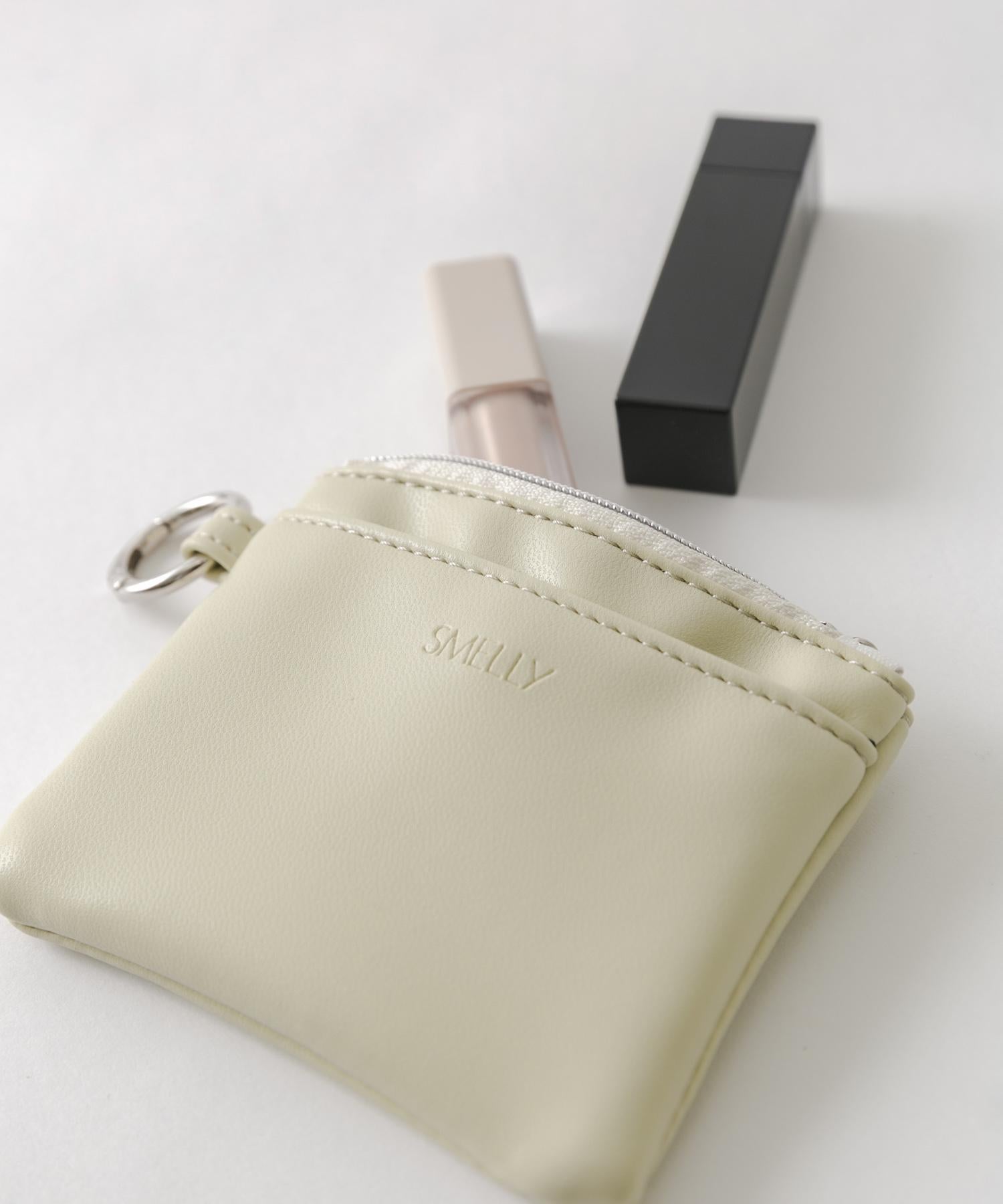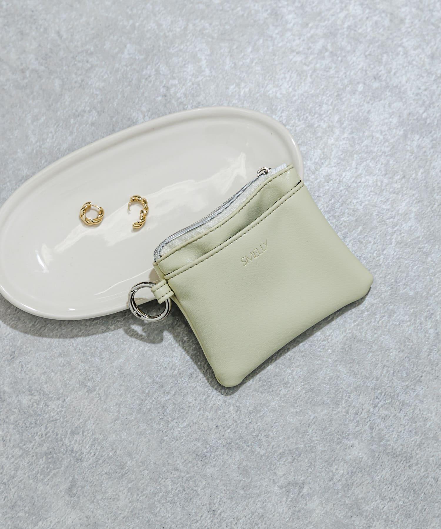 這款迷你小袋採用成熟的人造皮革質地,並帶有 SMELLY 的單點標誌。