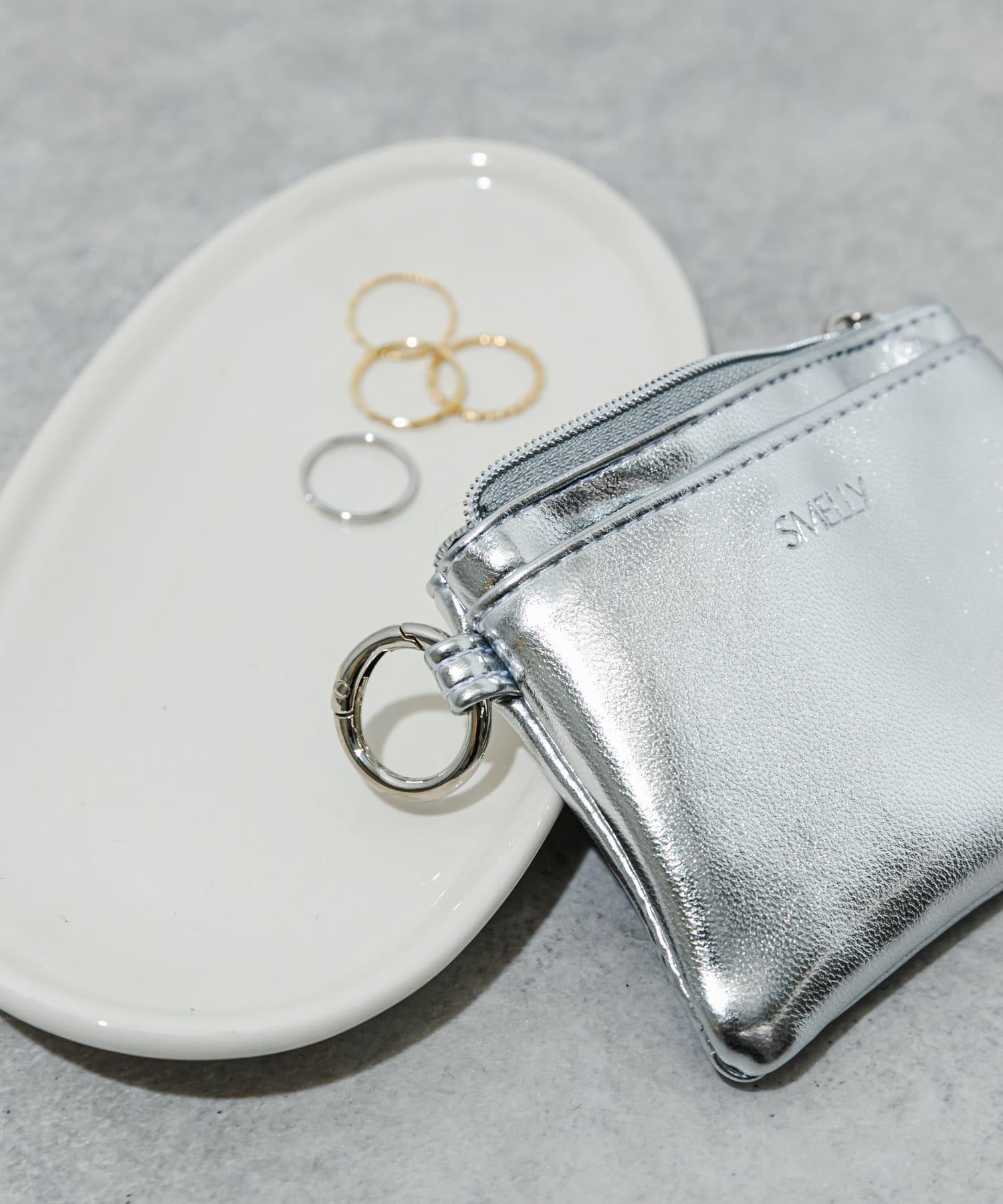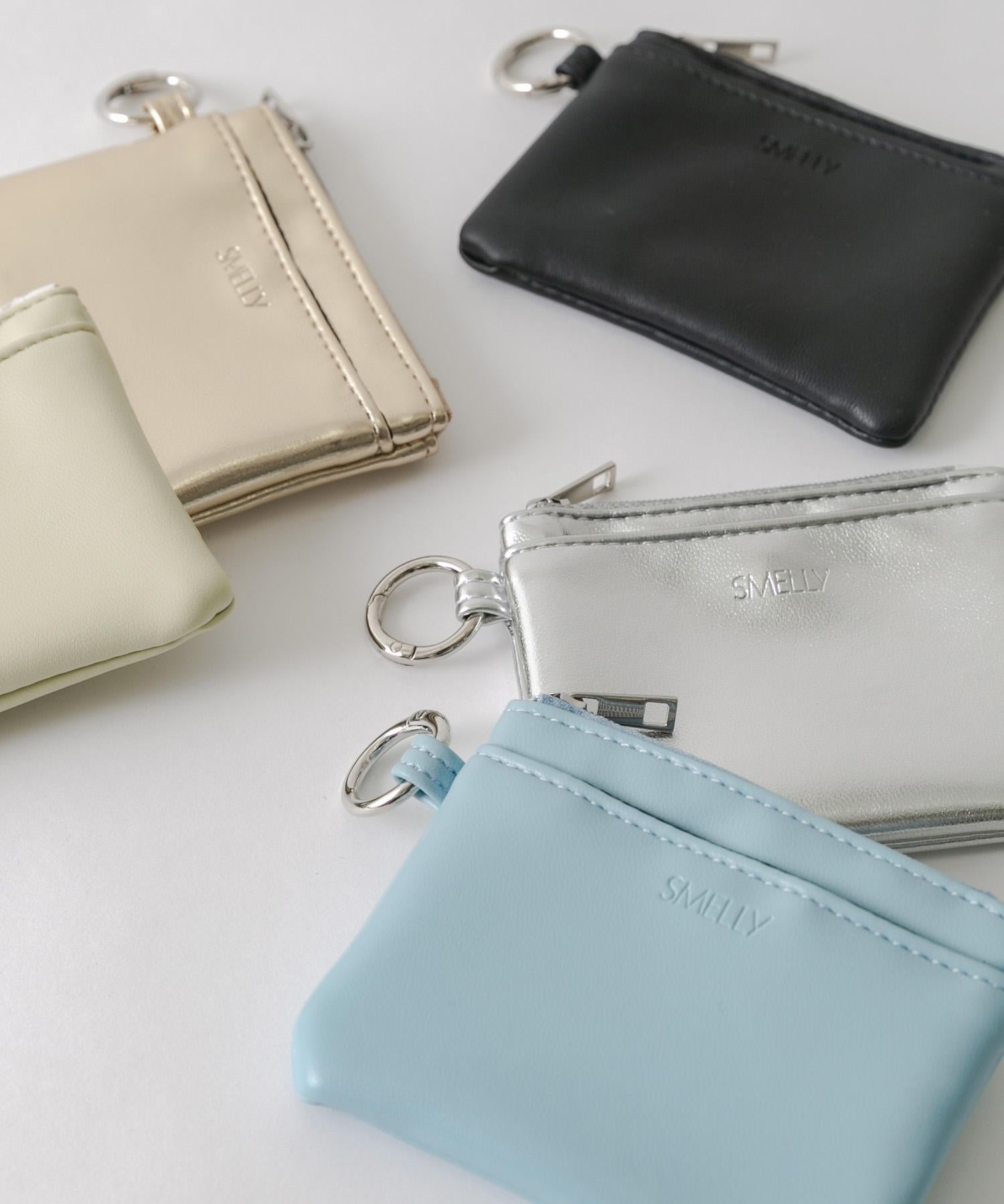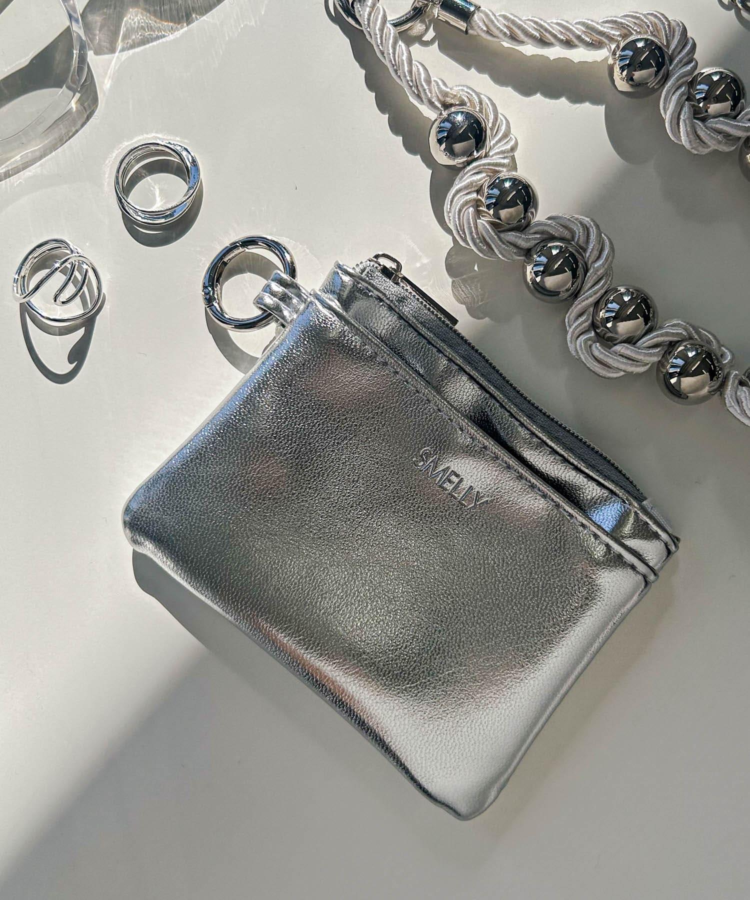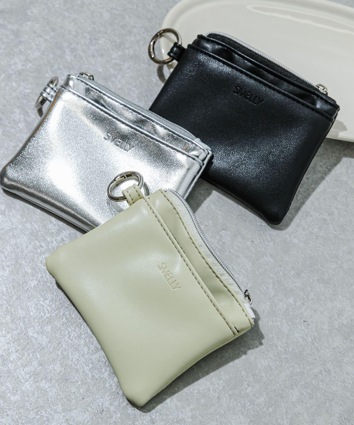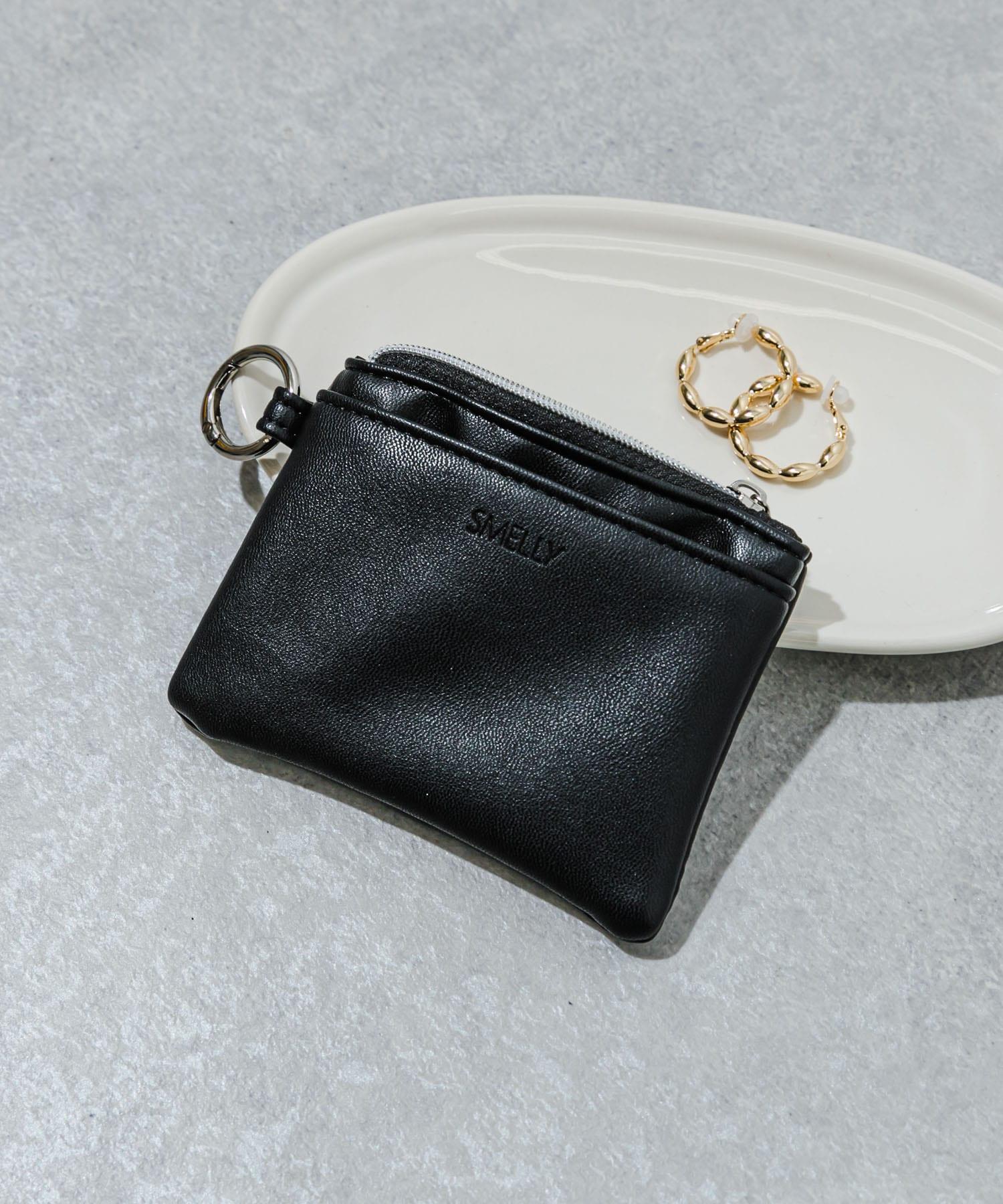 這款迷你小袋採用成熟的人造皮革質地,並帶有 SMELLY 的單點標誌。