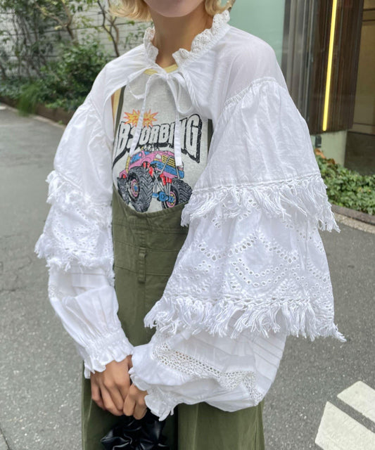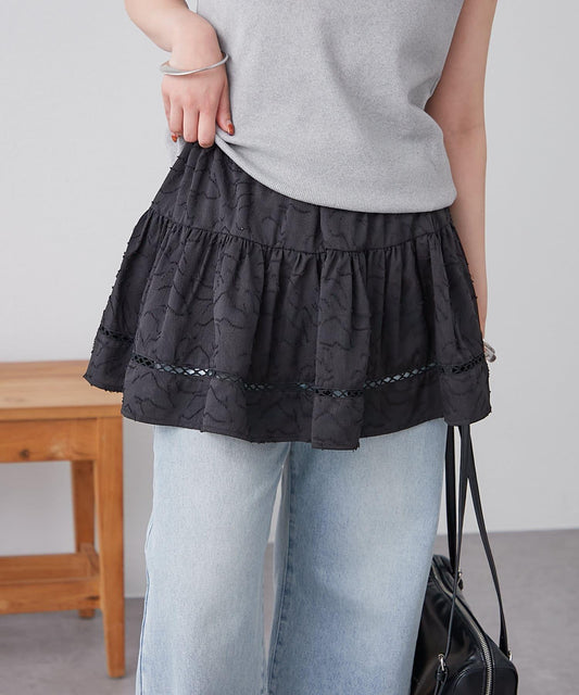層疊的過渡部分四周都有荷葉邊,表現出裙子整體的可愛。