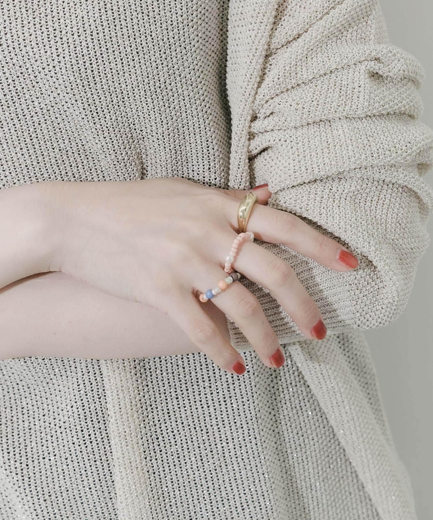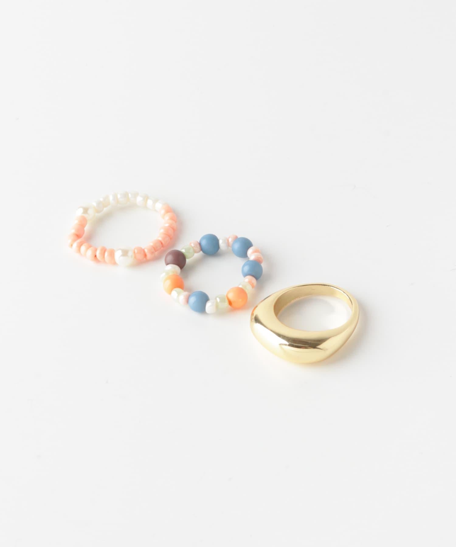 多彩珠飾三件套戒指
