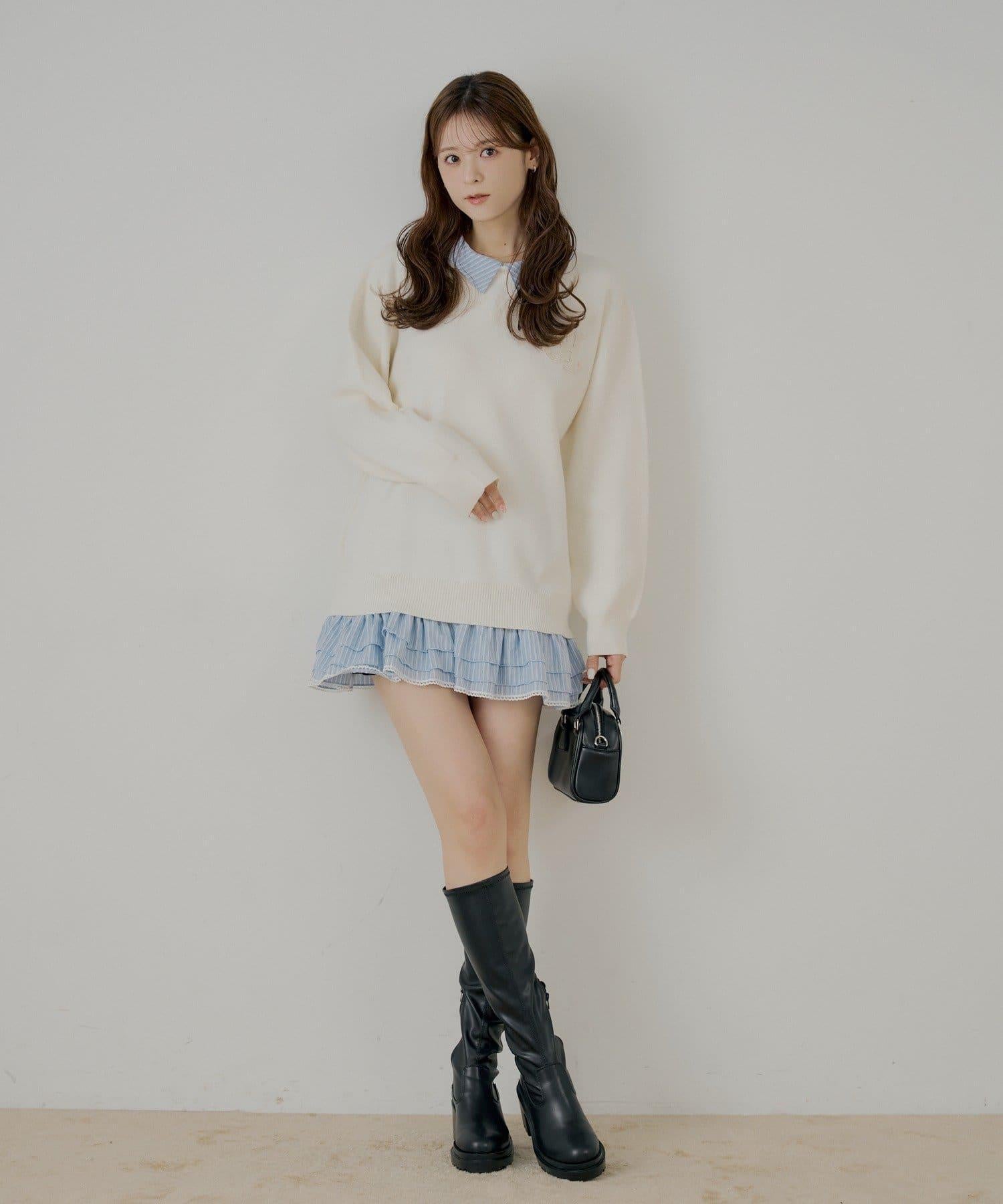 這款針織連衣裙採用可愛的多層設計,給人舒適的感覺。