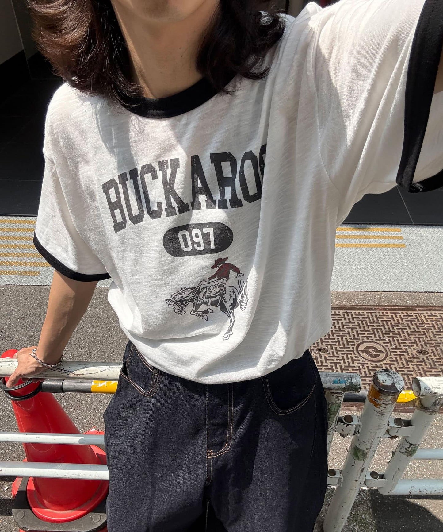 美國印花 Ringer T 恤,採用具有舊感的斜紋面料。