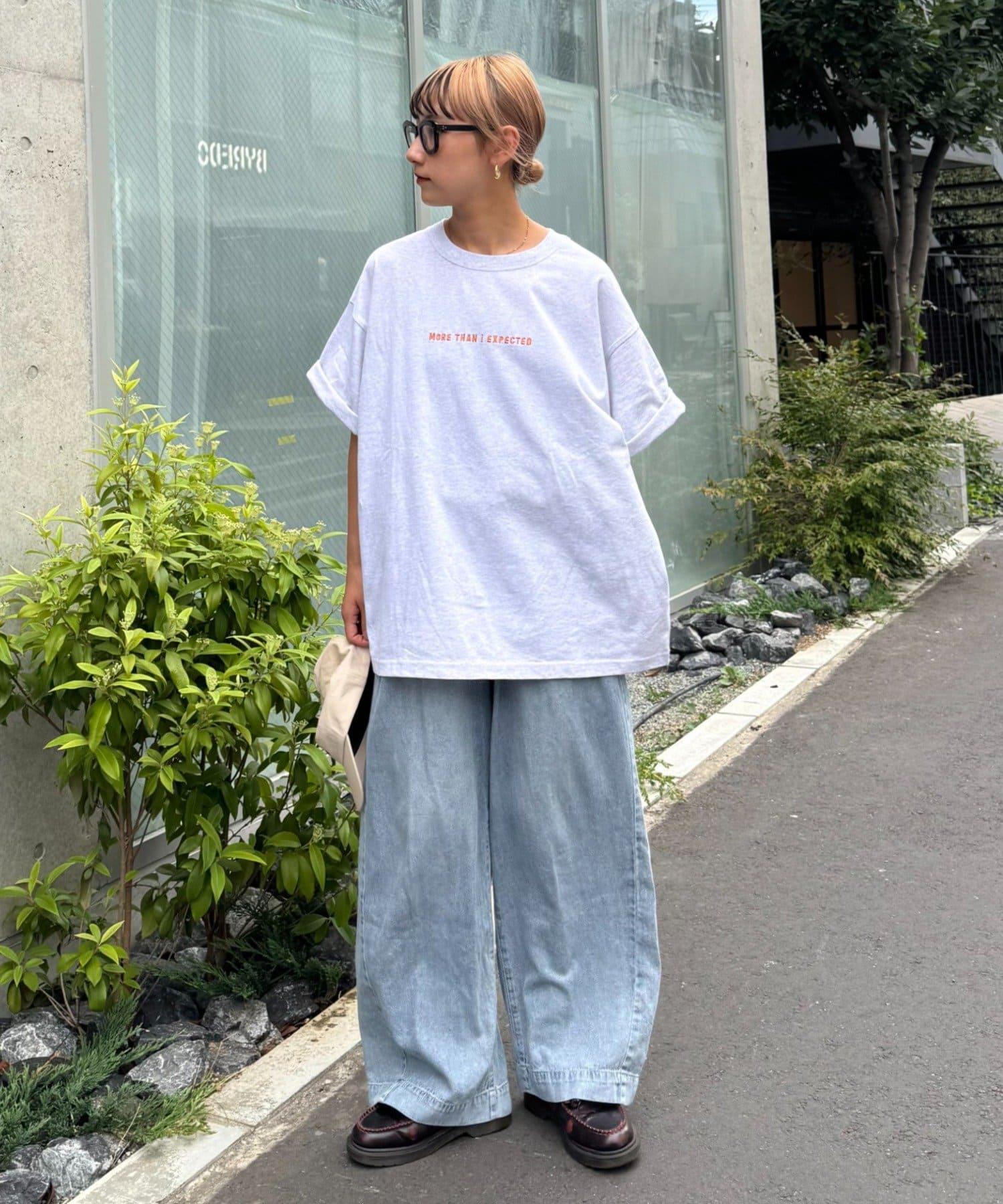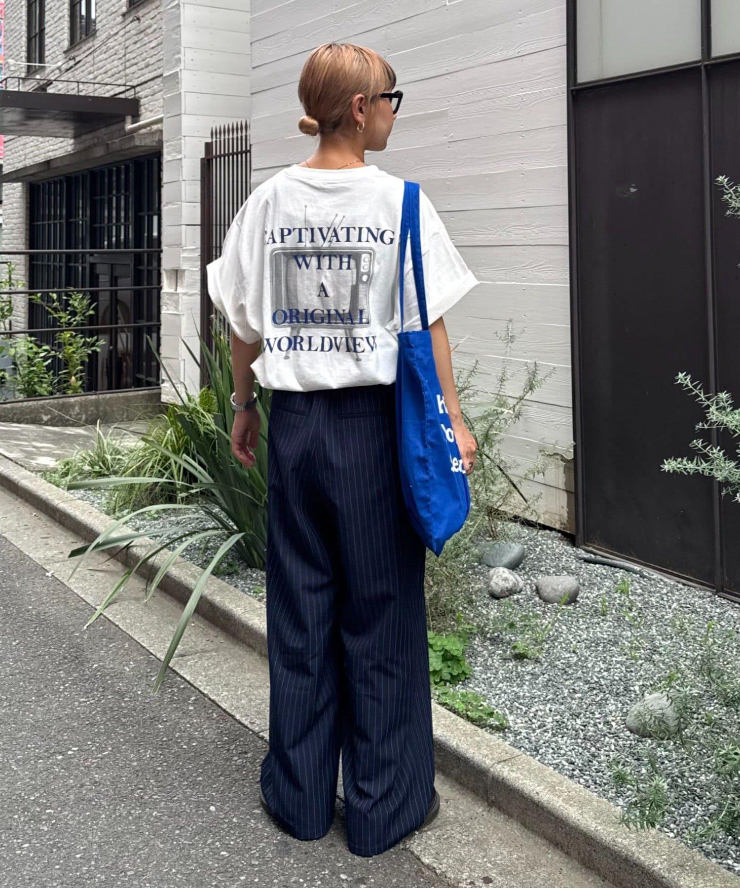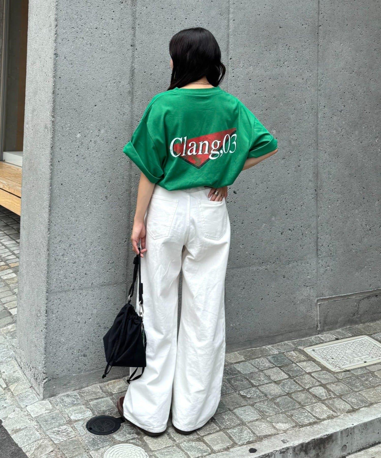 簡潔的牛仔褲和貨郎褲搭配出眾的背部印花是👍造型!