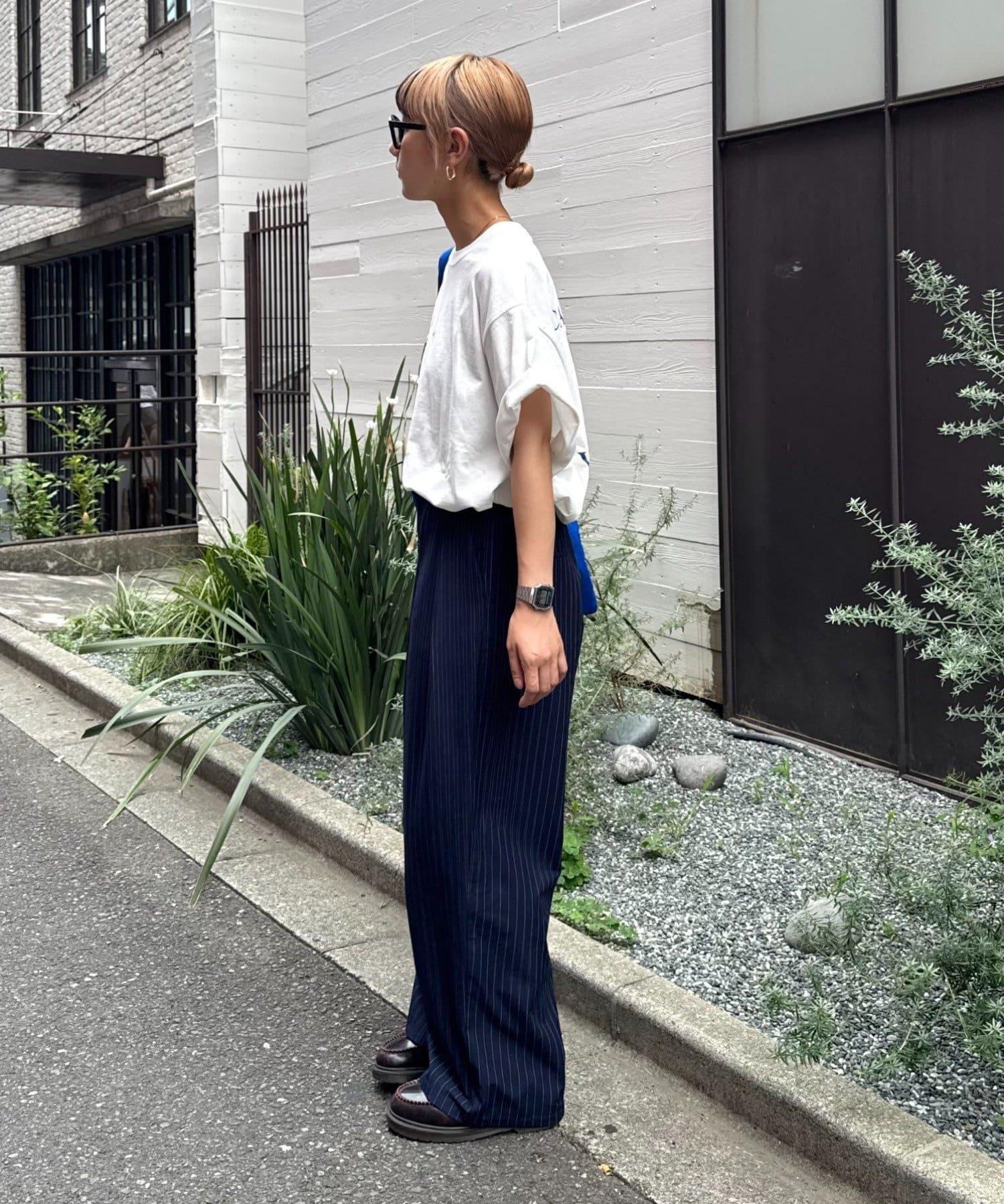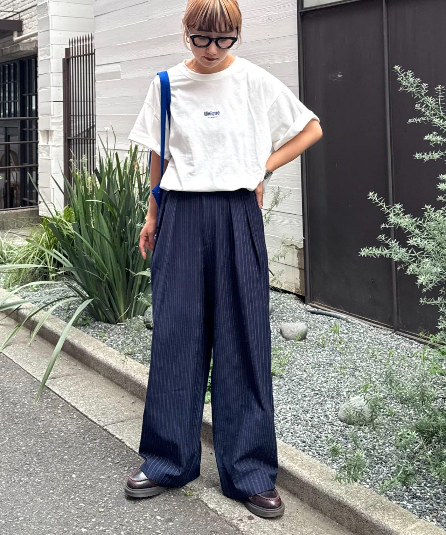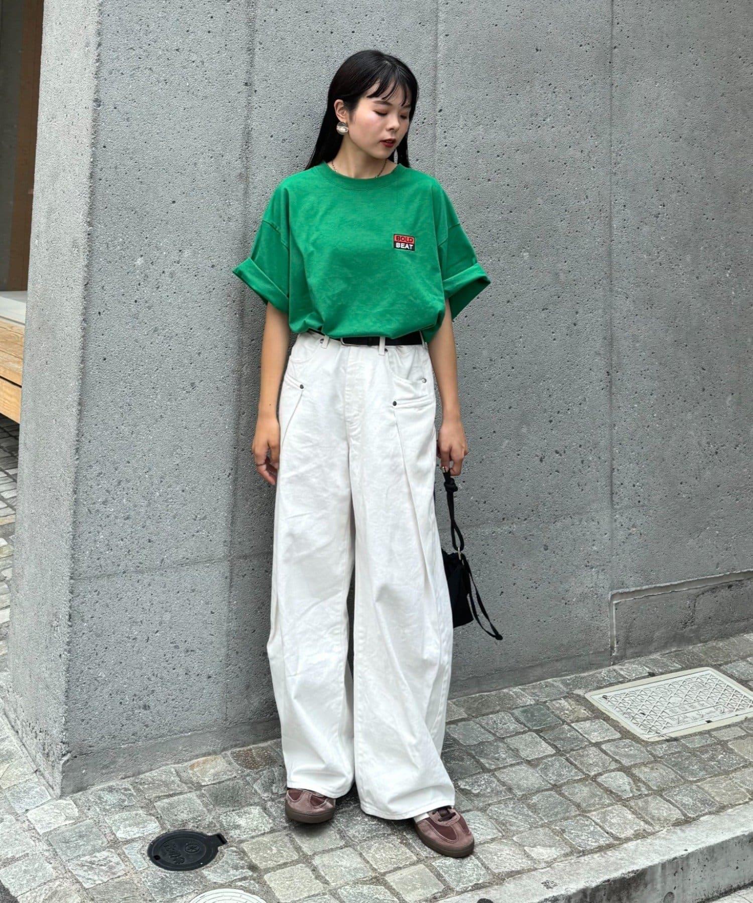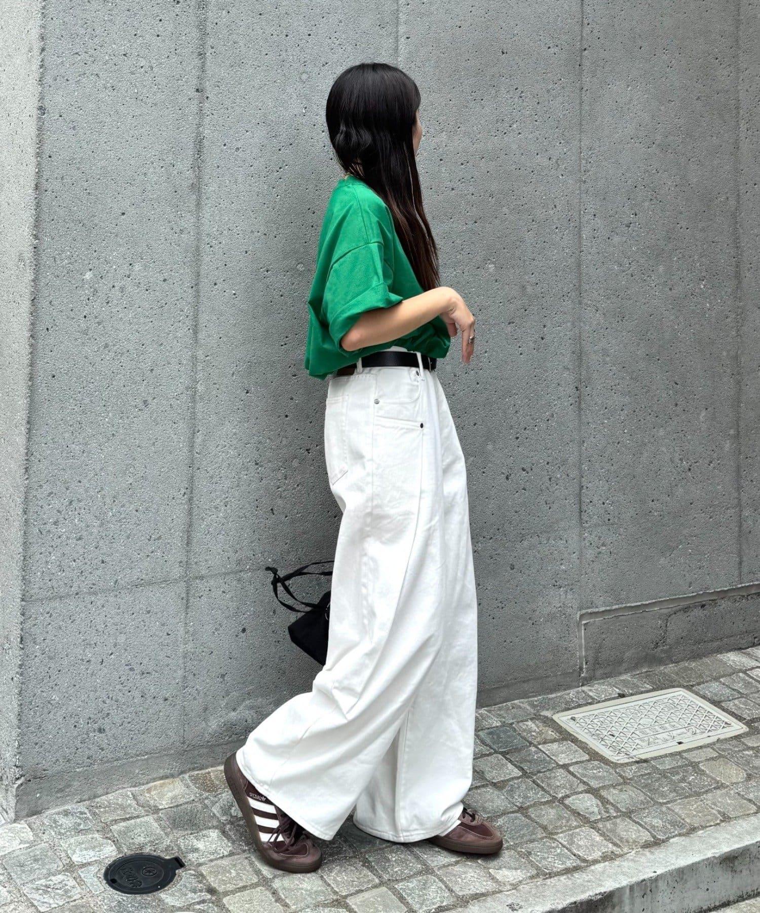 簡潔的牛仔褲和貨郎褲搭配出眾的背部印花是👍造型!