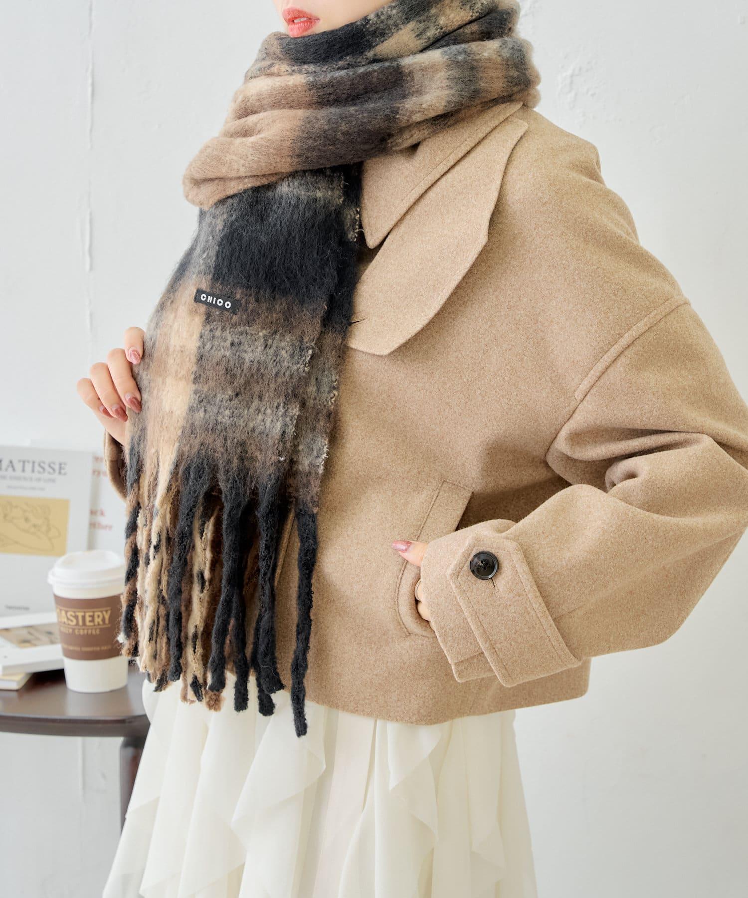 這款披肩非常蓬鬆,只需將它裹在臉上,就能達到小臉效果。