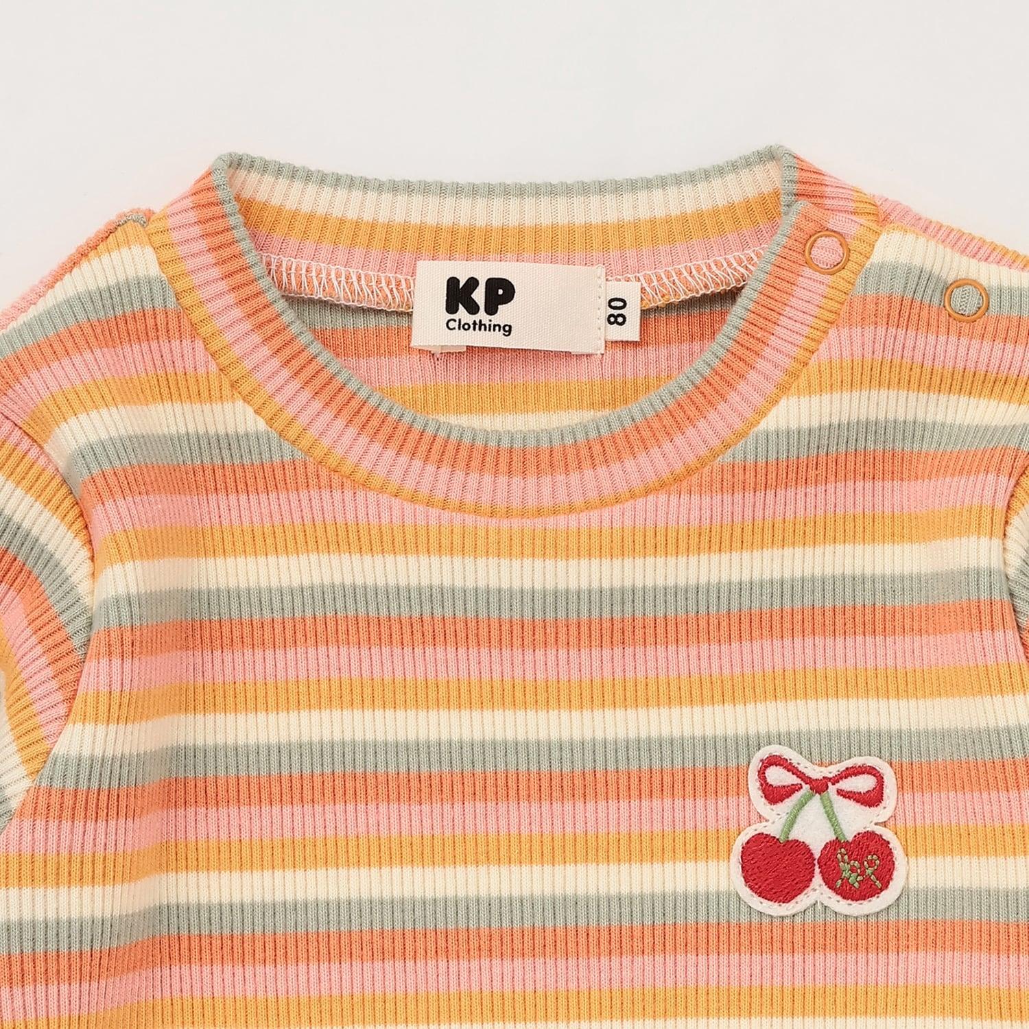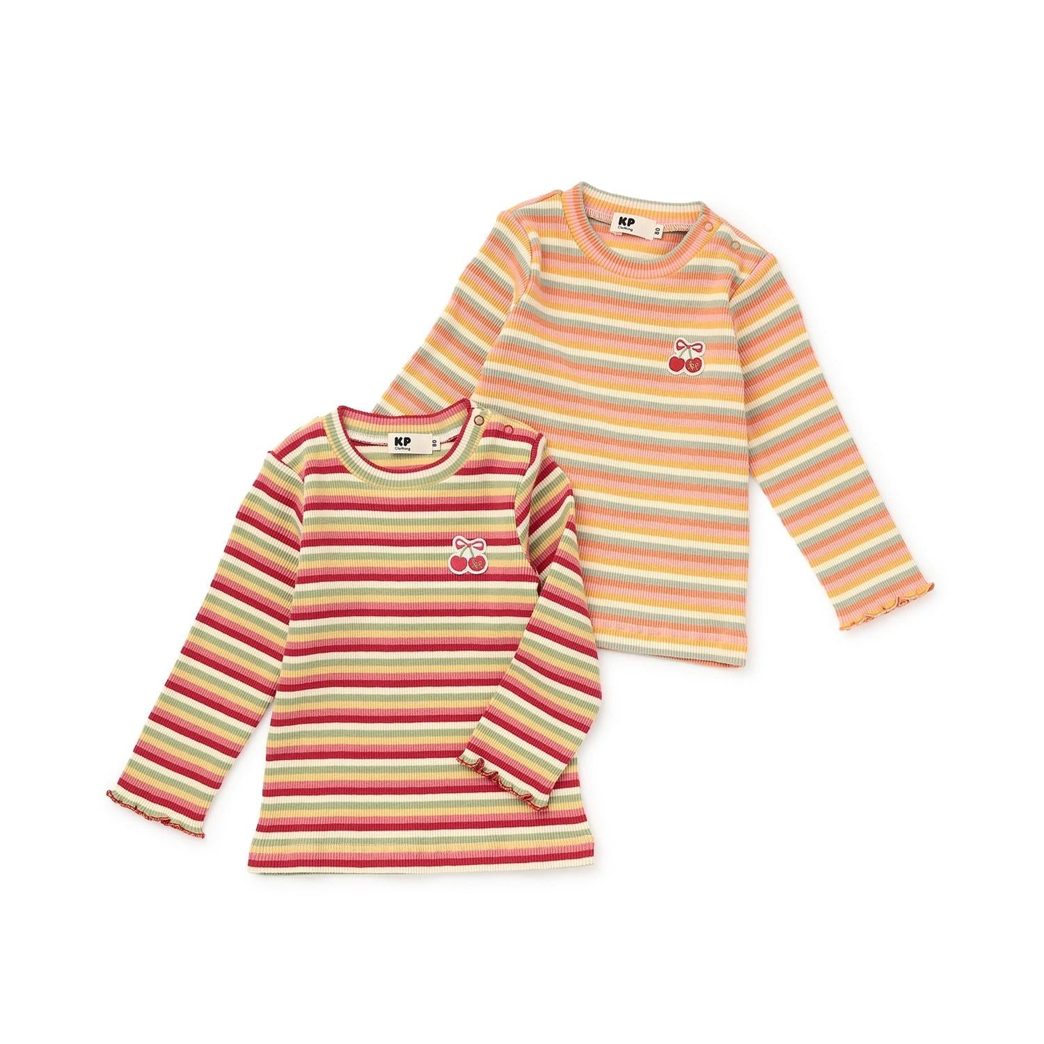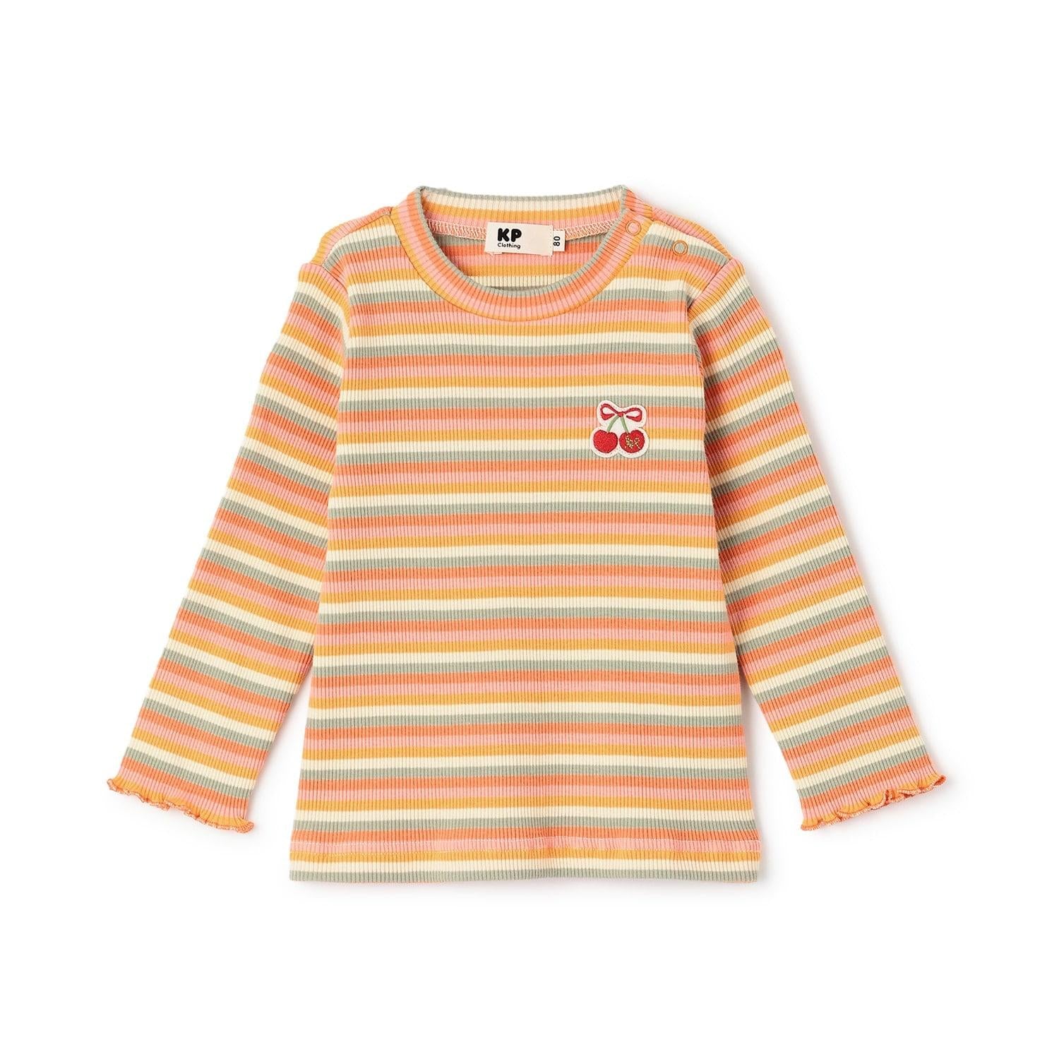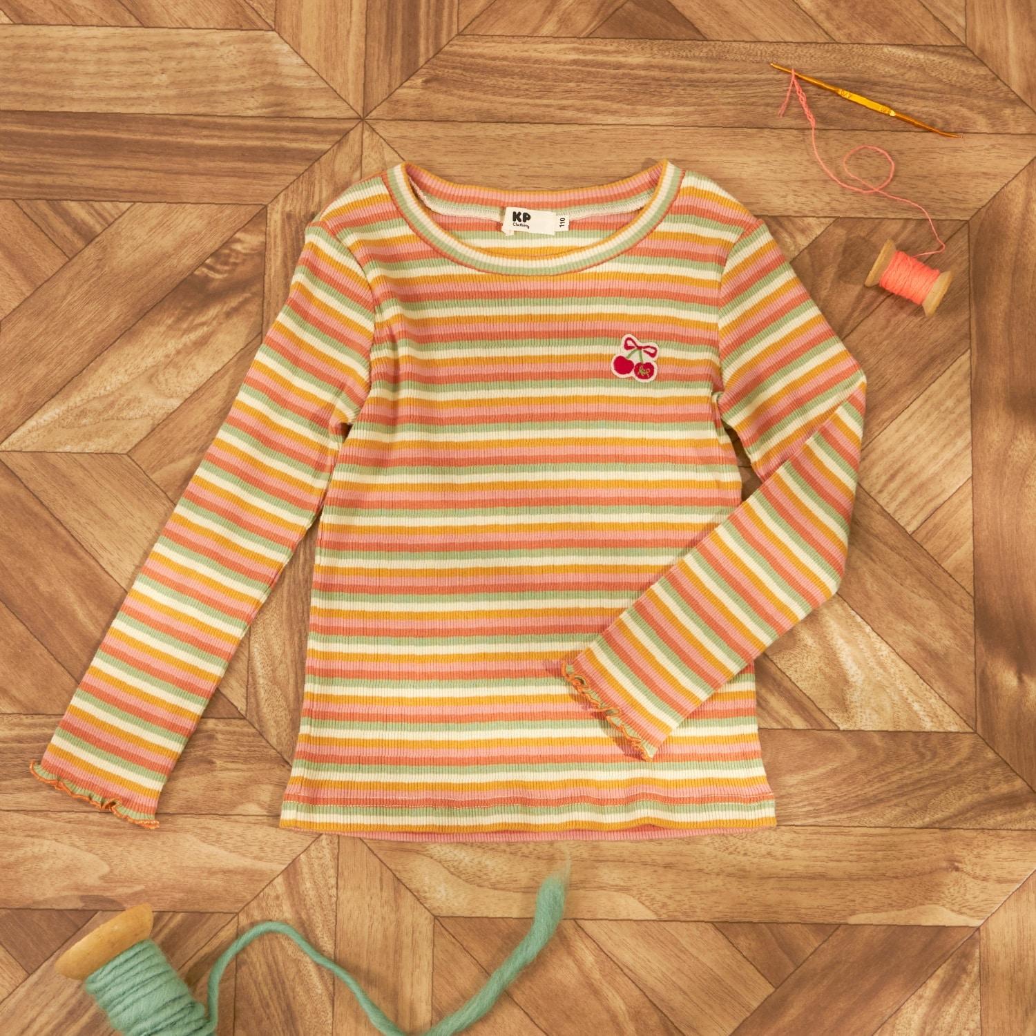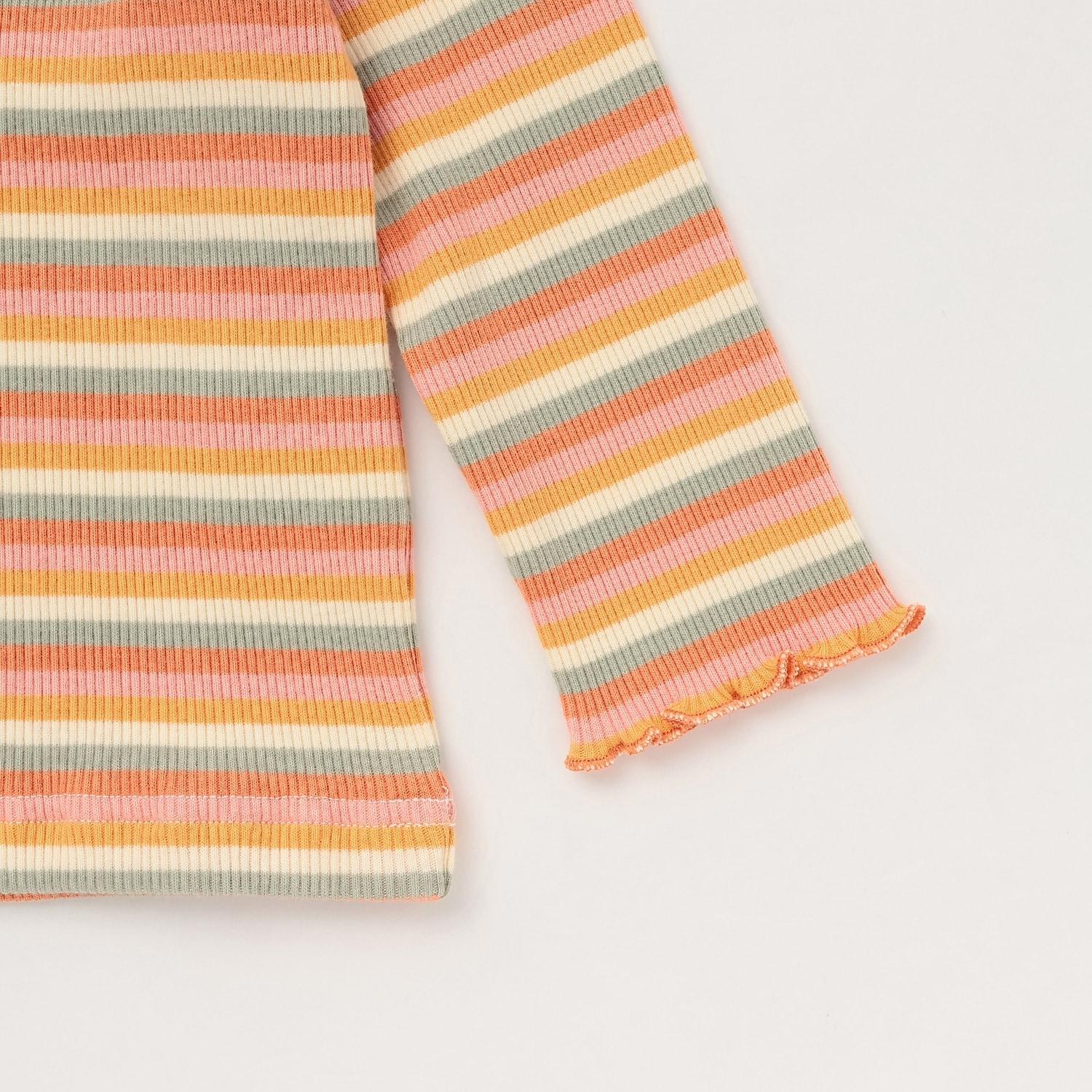 多色條紋羅紋長袖T恤