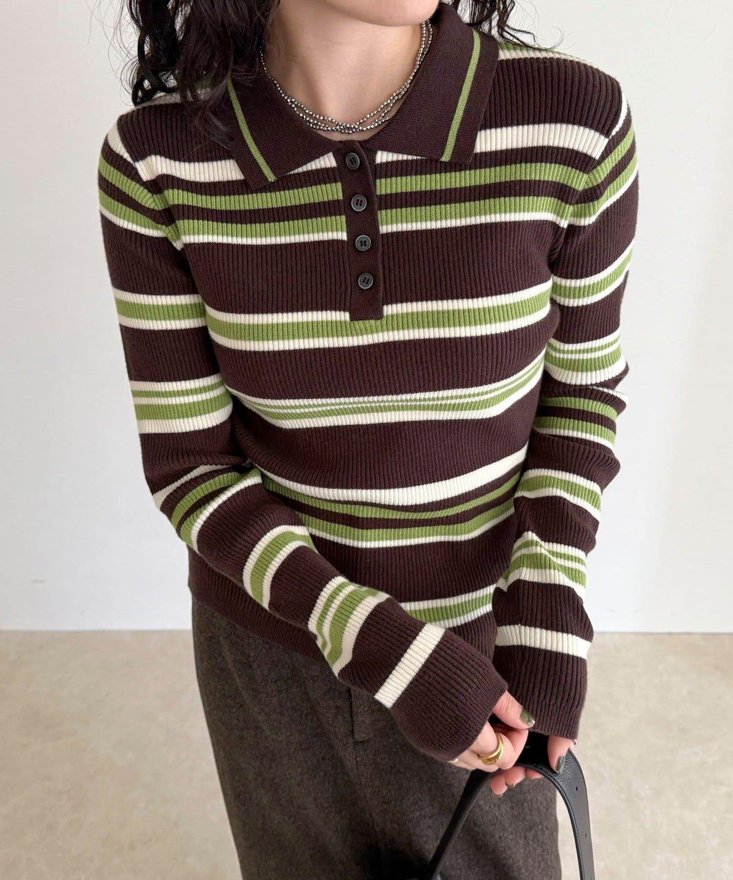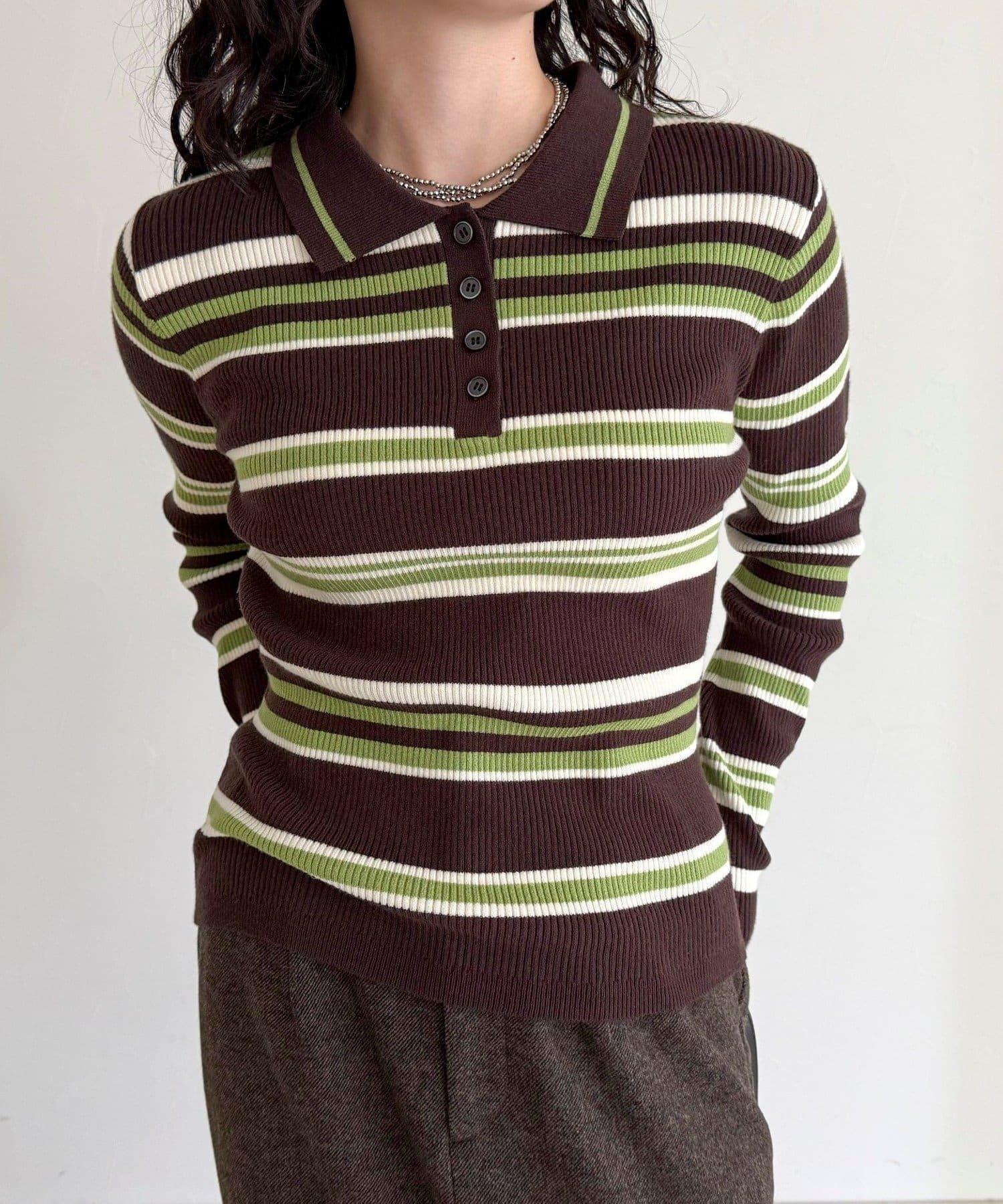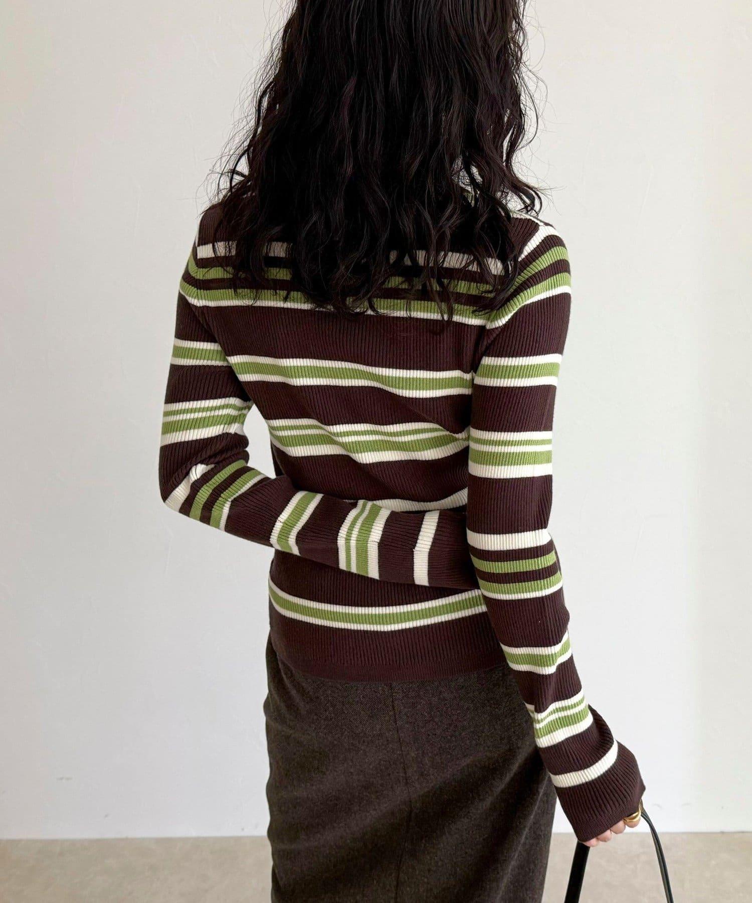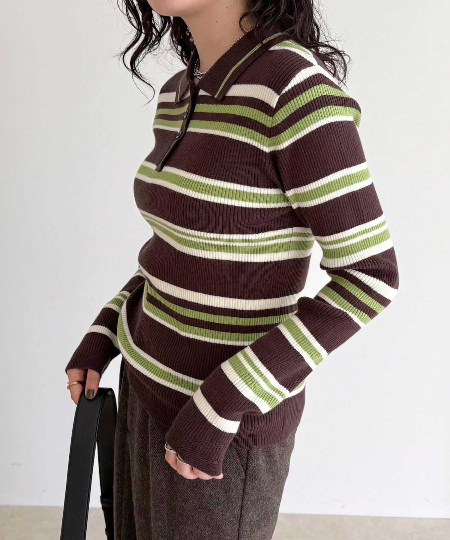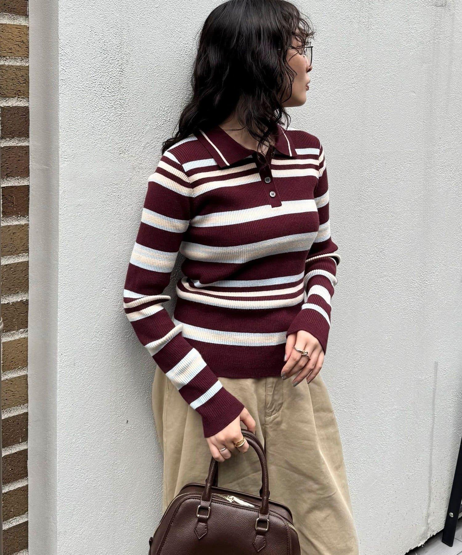 羅紋針織衫,醒目的多條紋圖案,色彩搭配強烈。