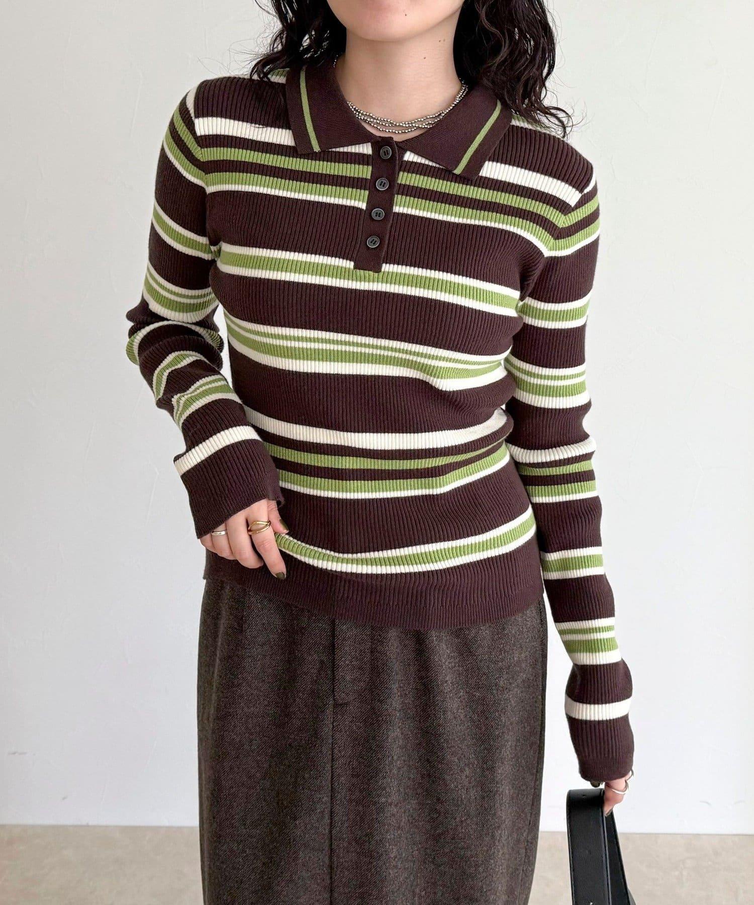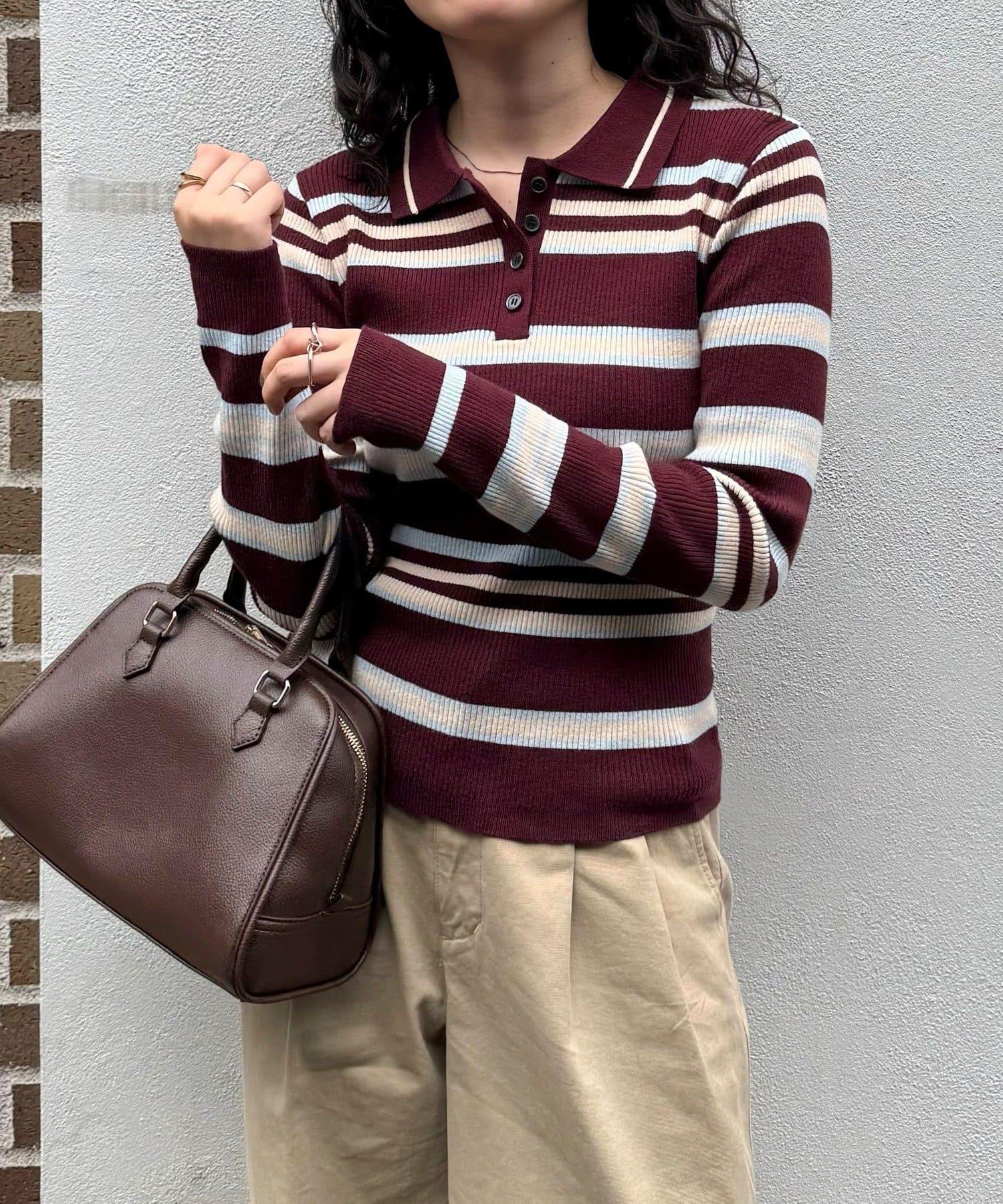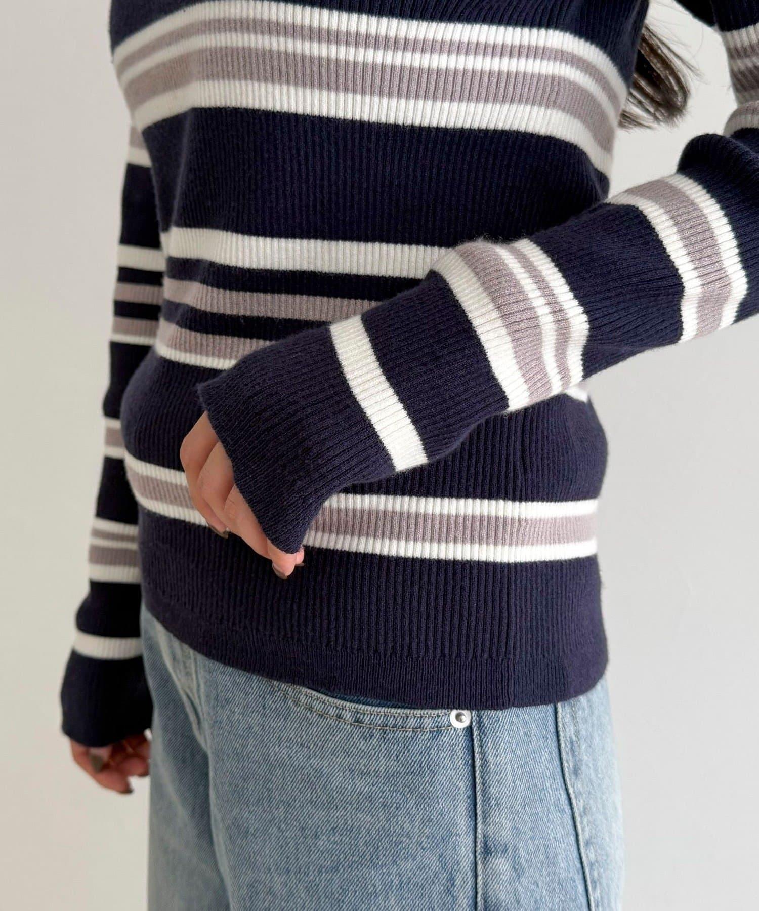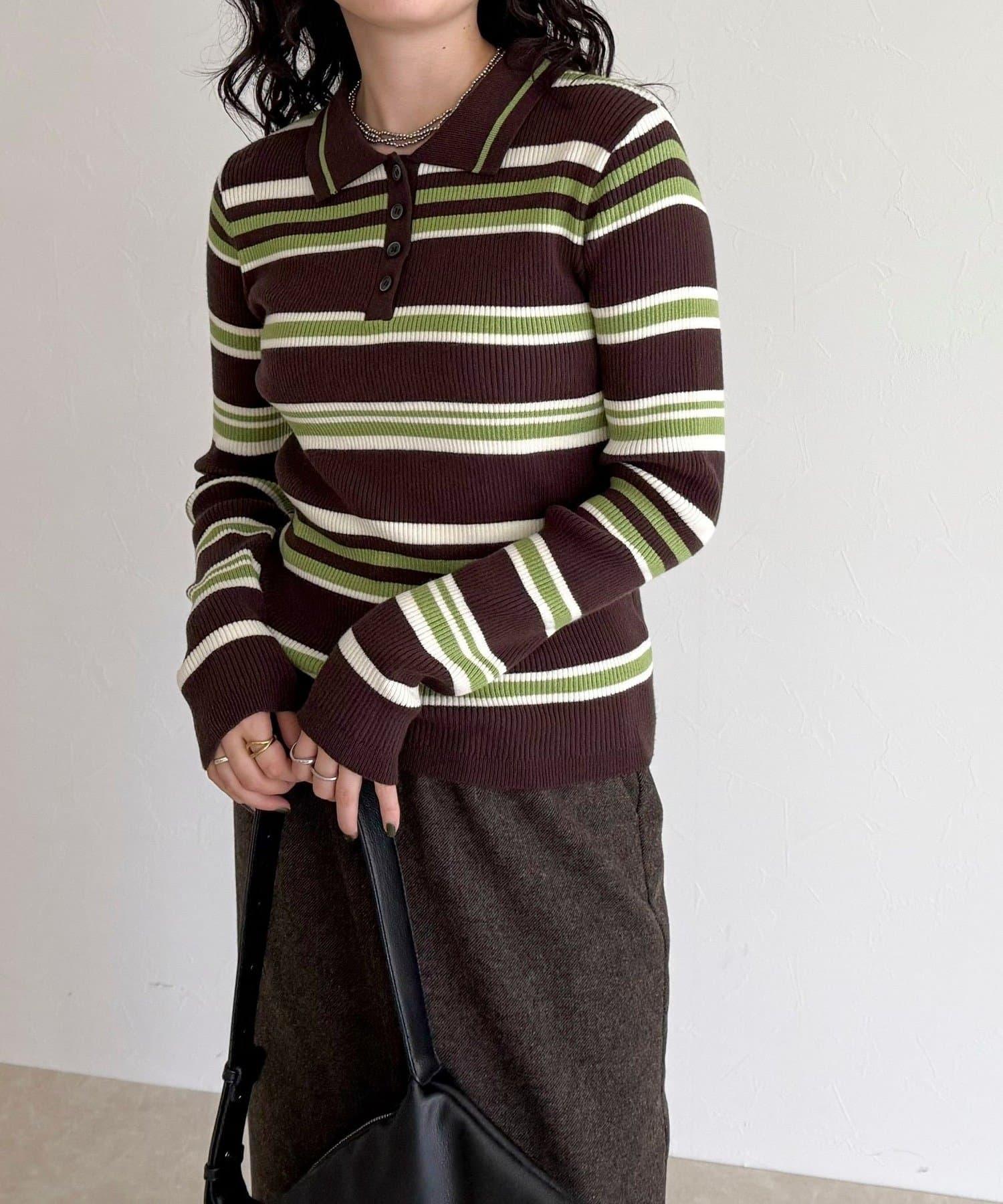 羅紋針織衫,醒目的多條紋圖案,色彩搭配強烈。
