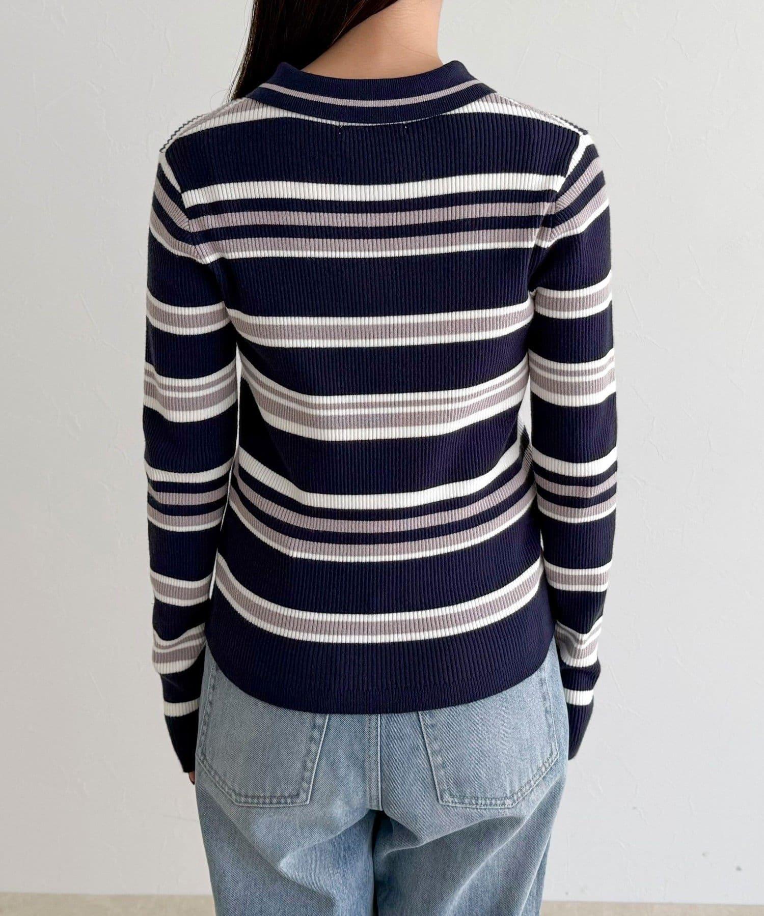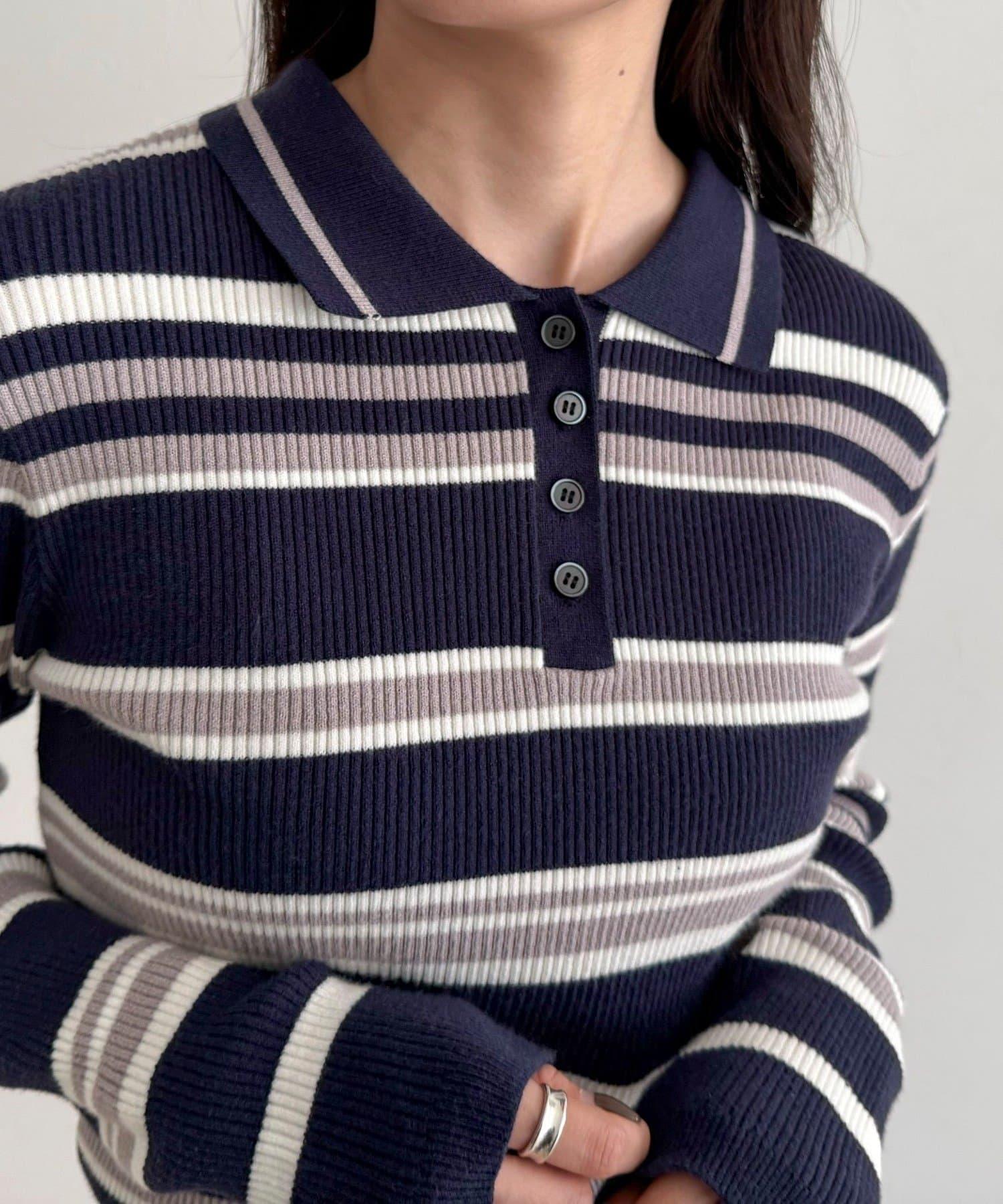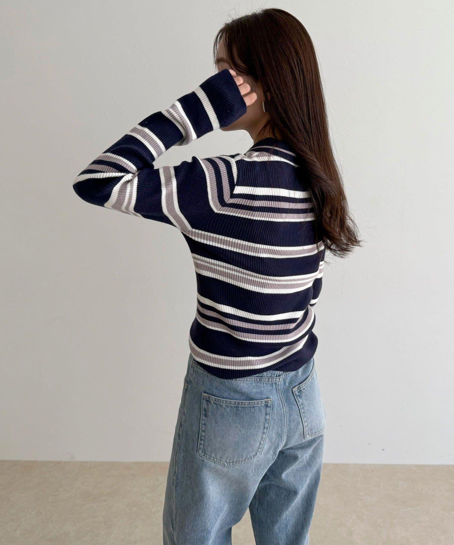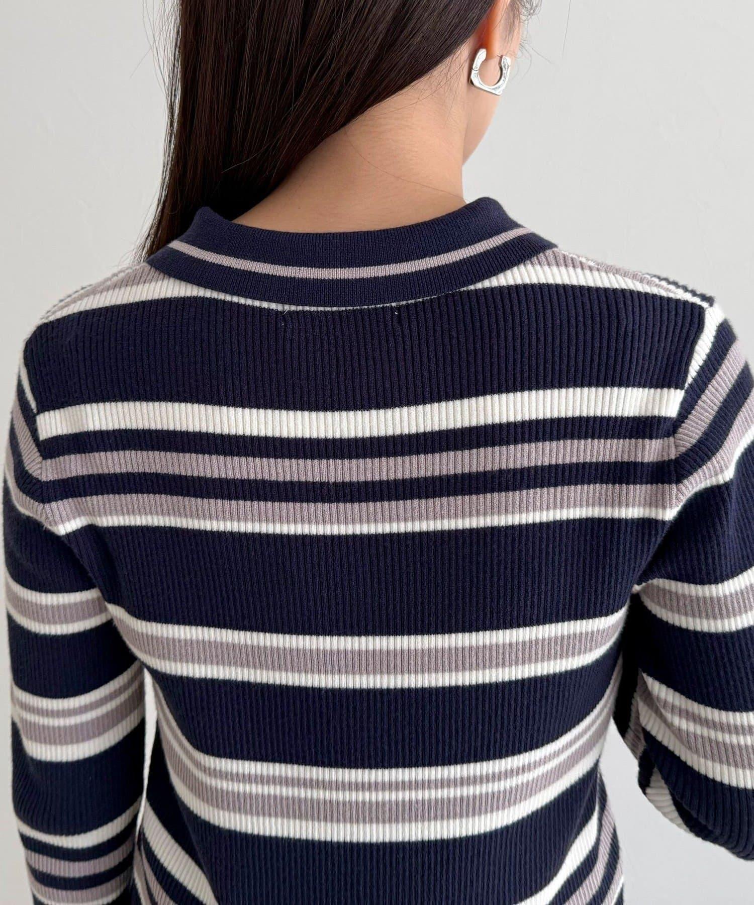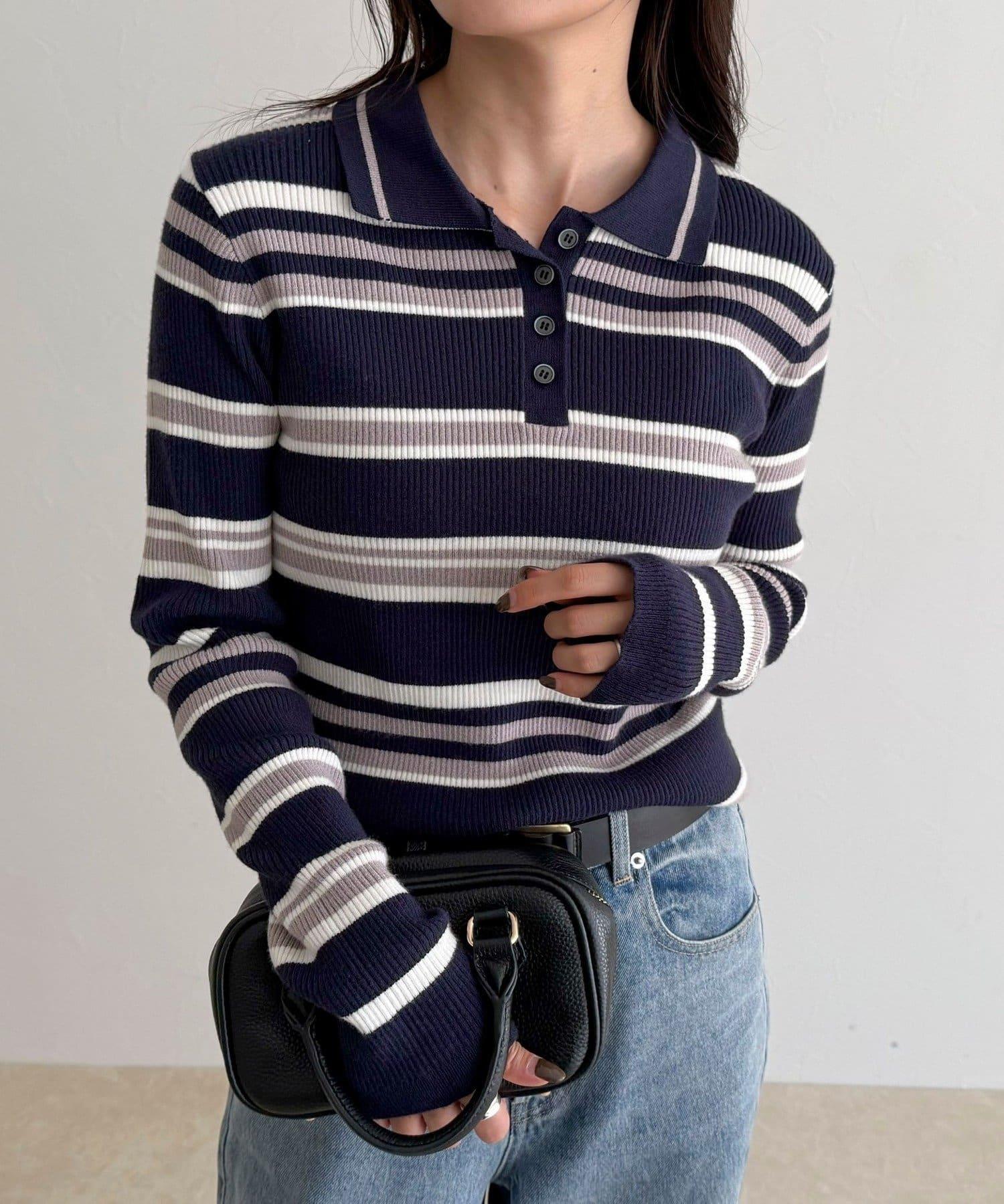 羅紋針織衫,醒目的多條紋圖案,色彩搭配強烈。