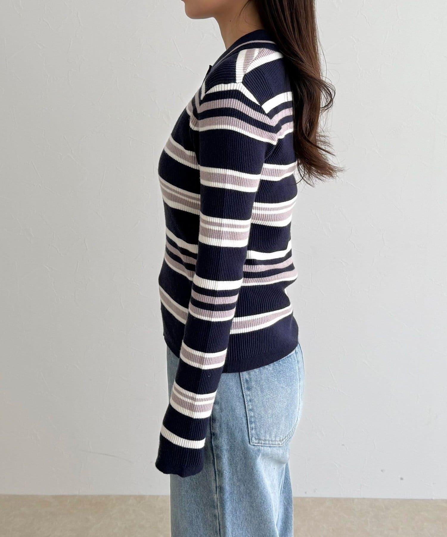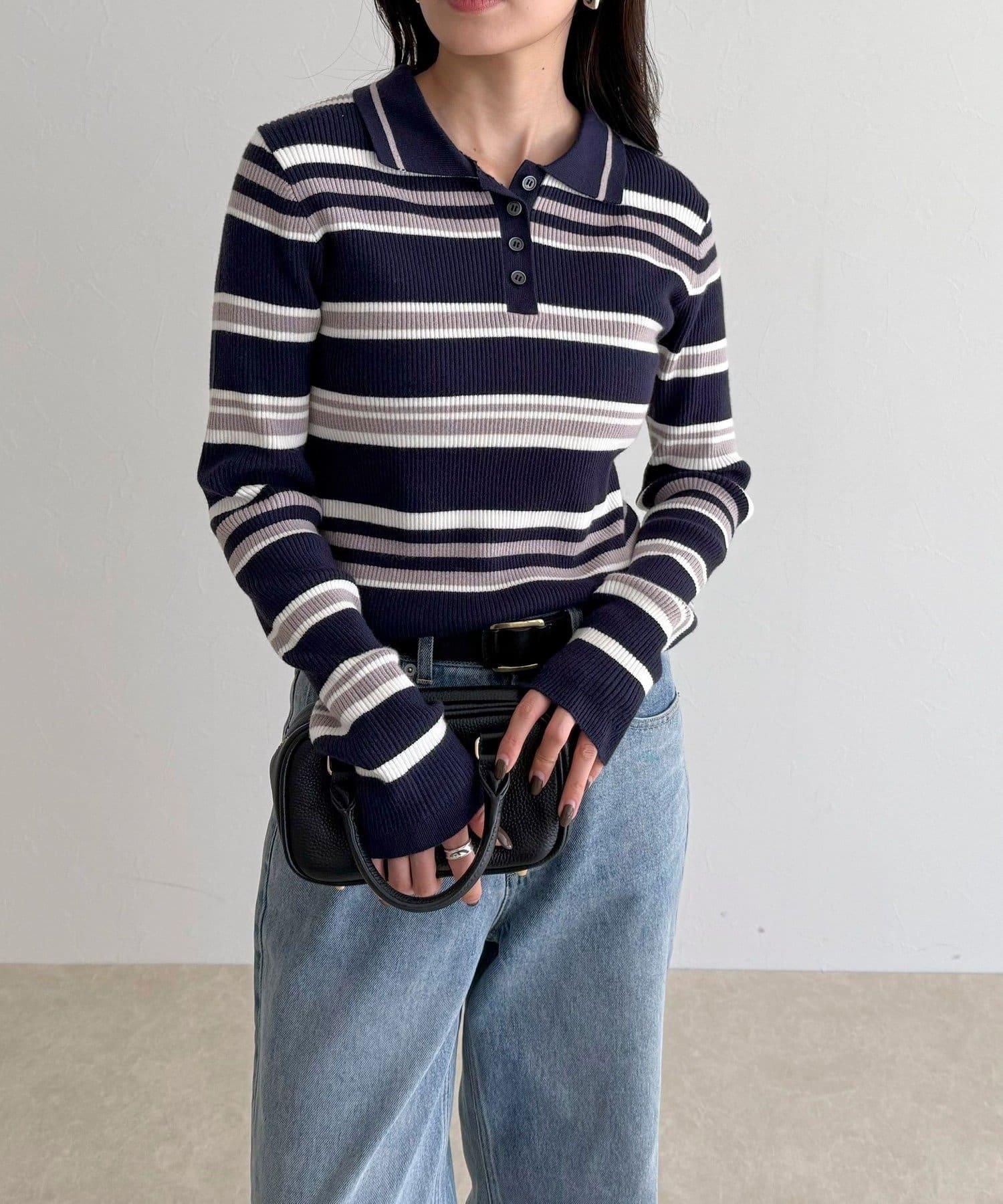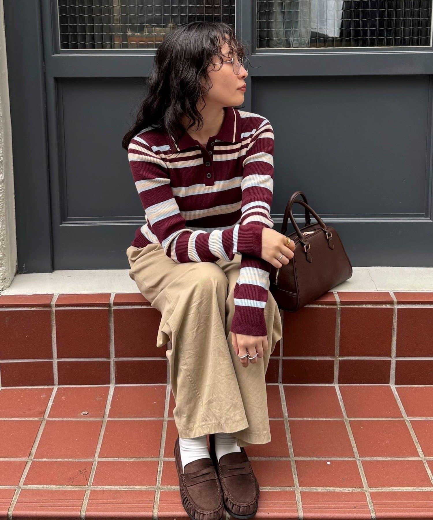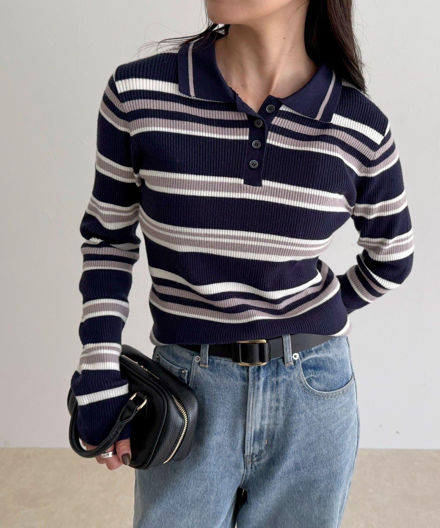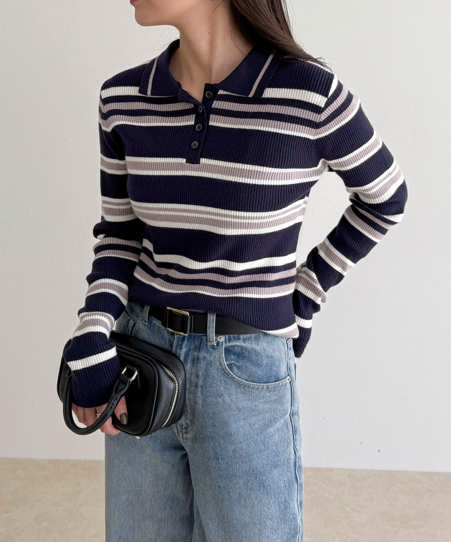 羅紋針織衫,醒目的多條紋圖案,色彩搭配強烈。
