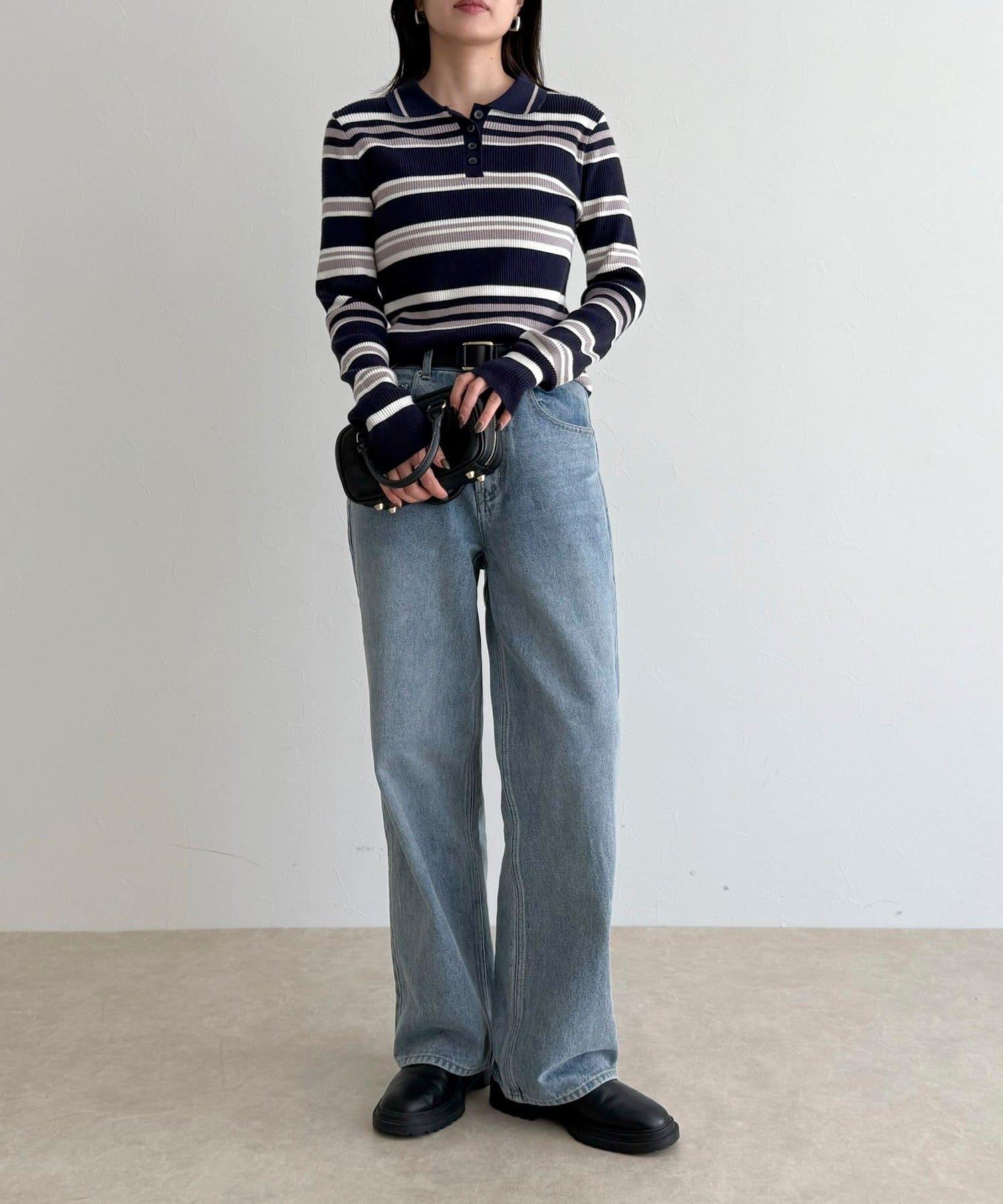 適度合身的羅紋針織衫打造出流暢的輪廓。