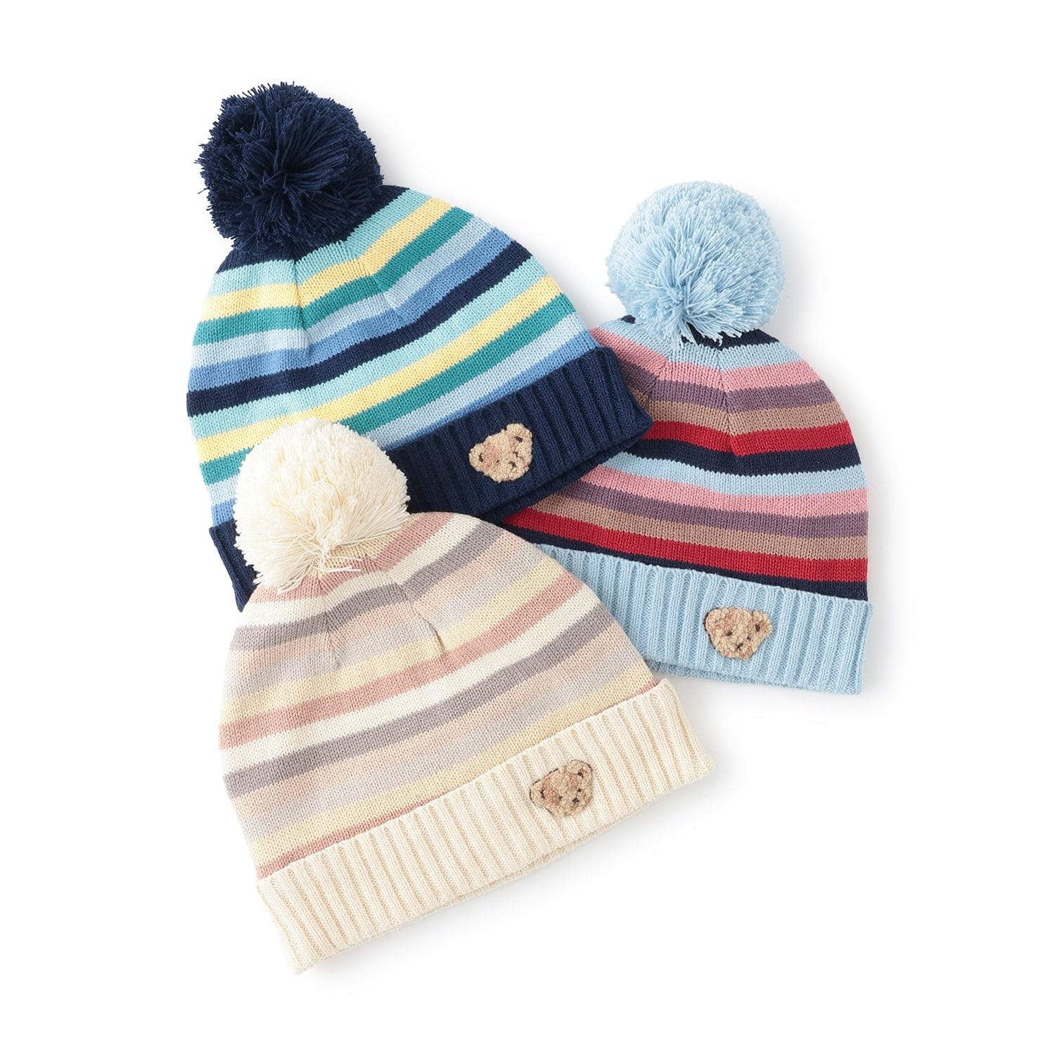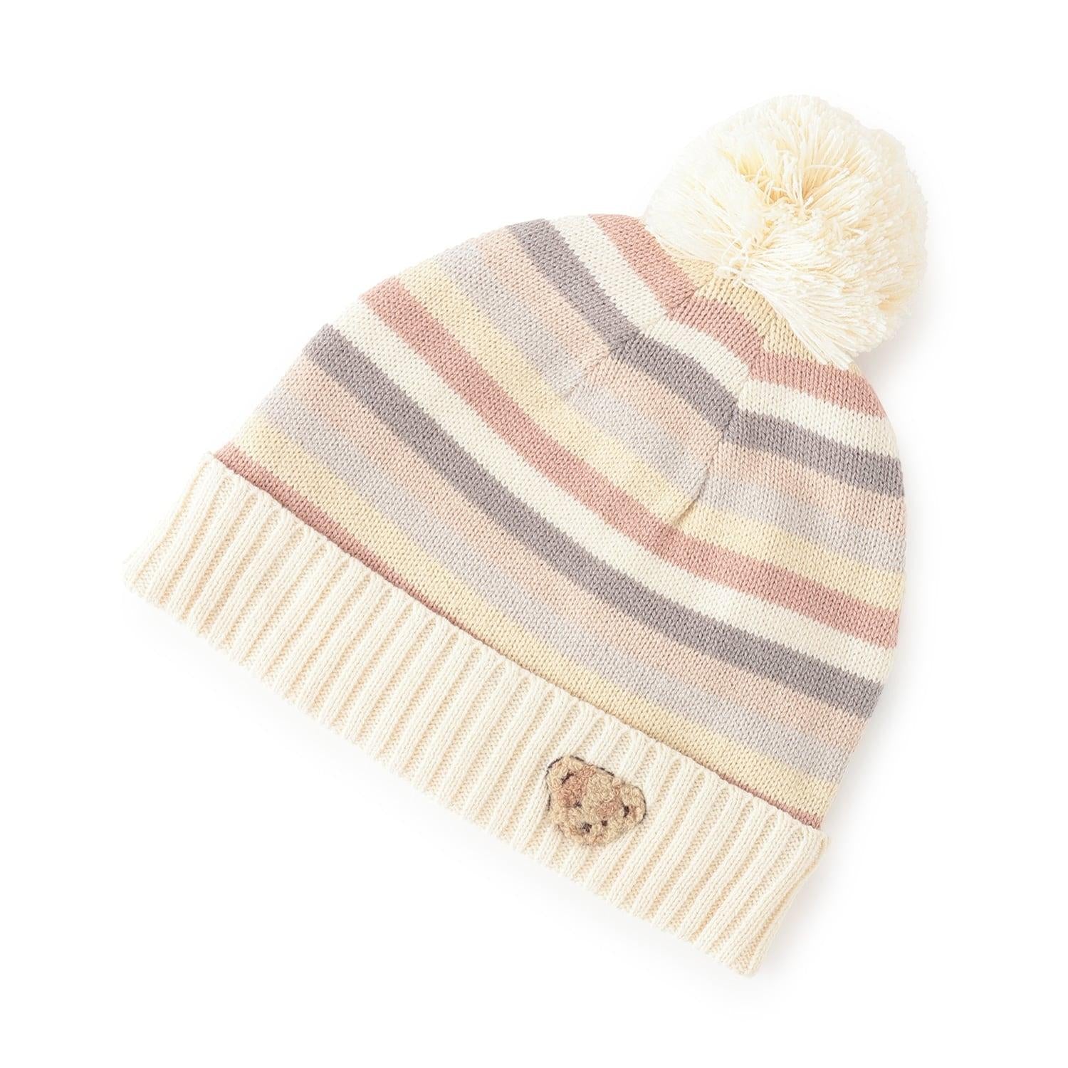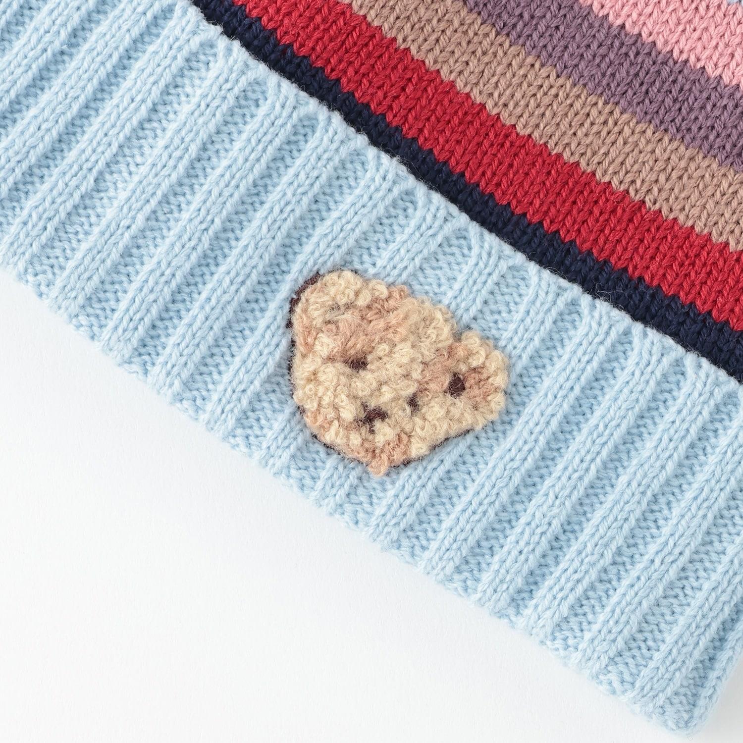 頂部的大絨球和可愛的小熊刺繡是這款帽子的亮點。