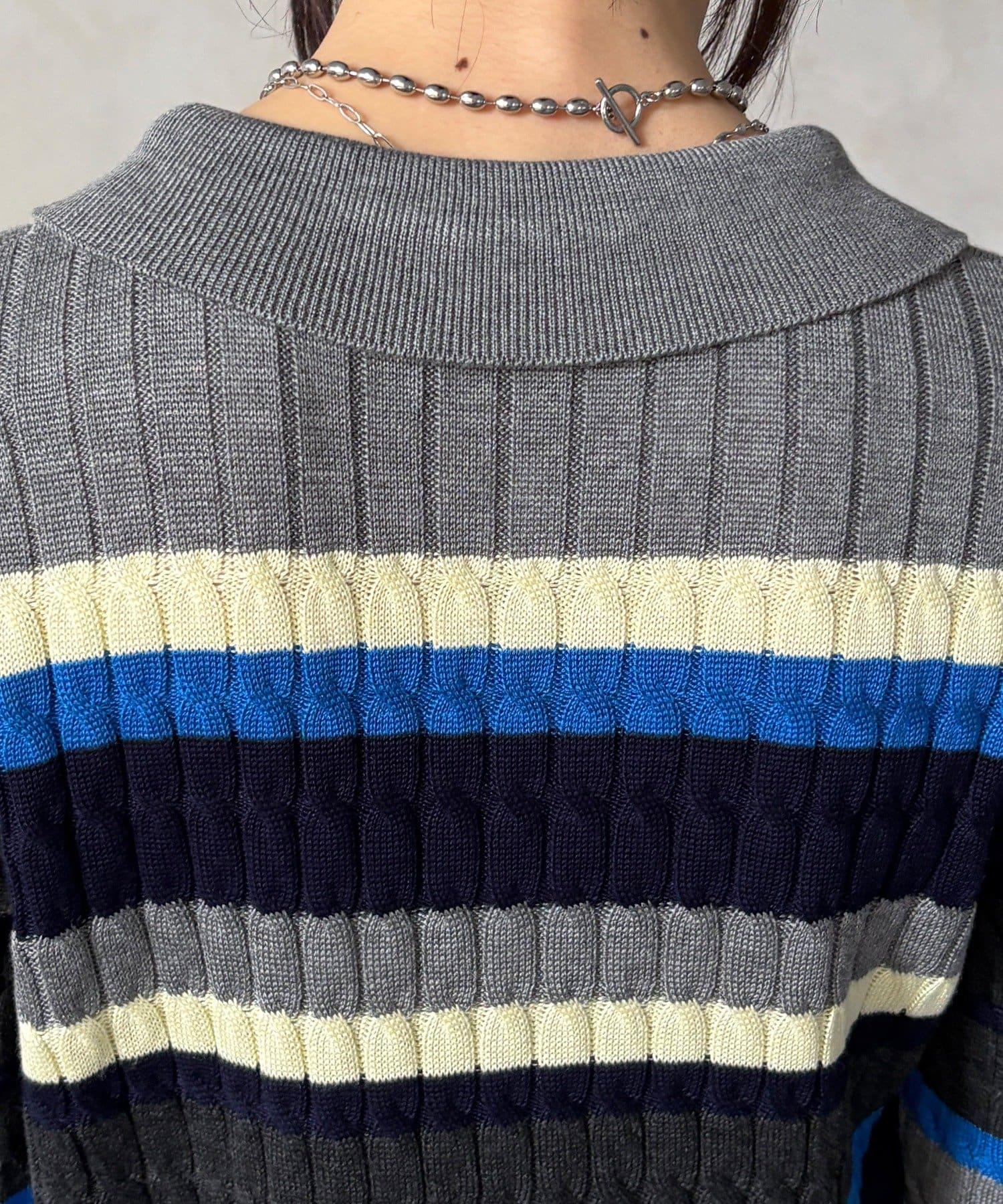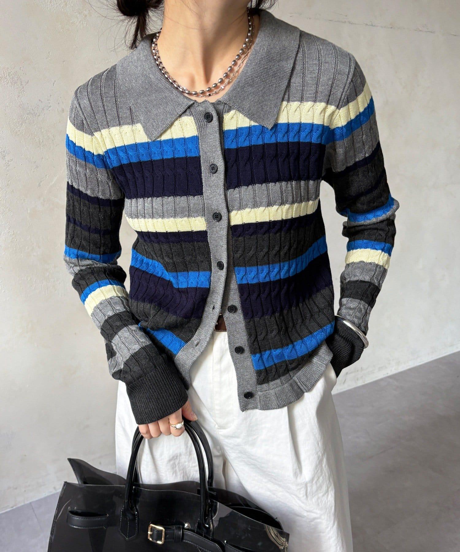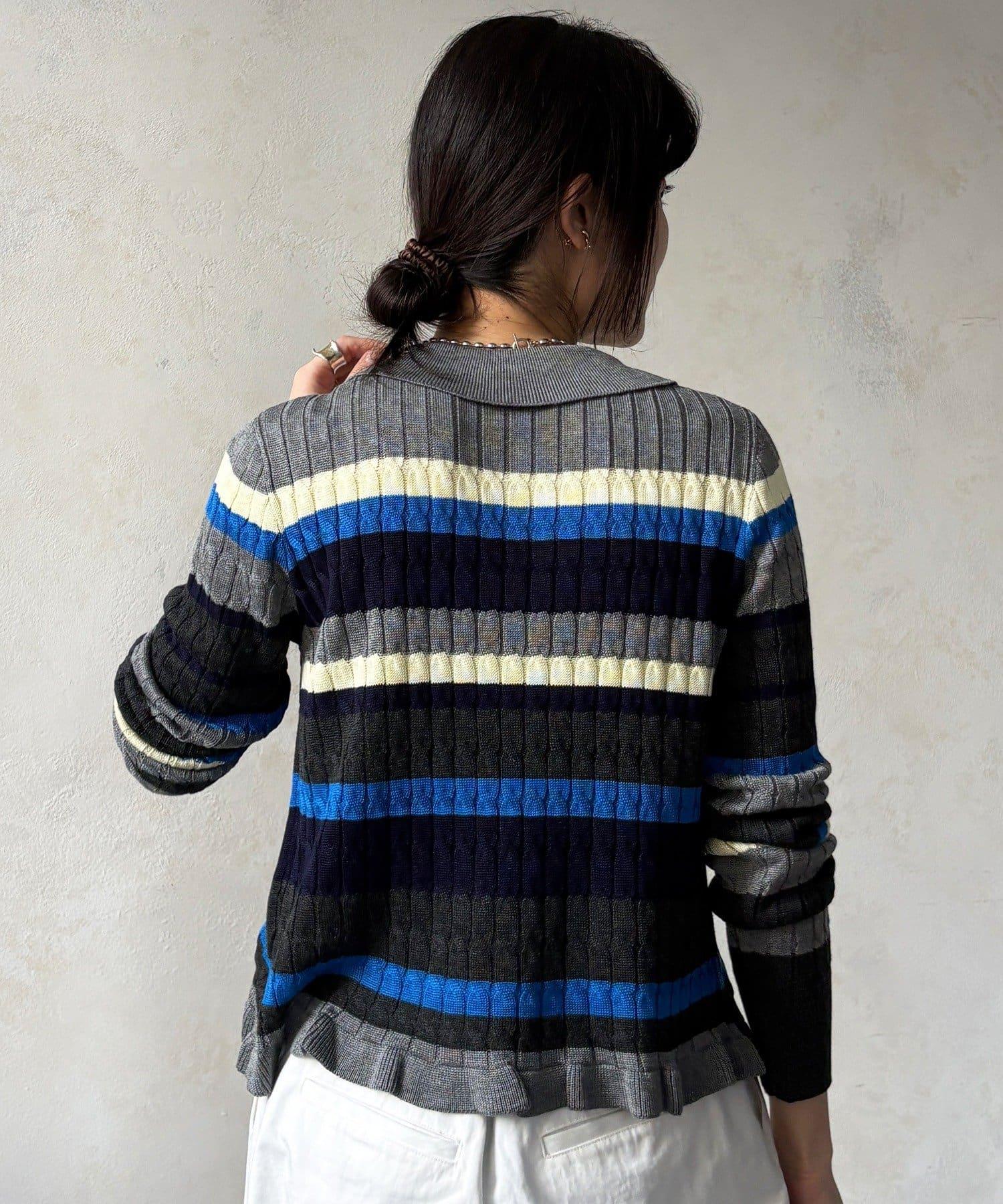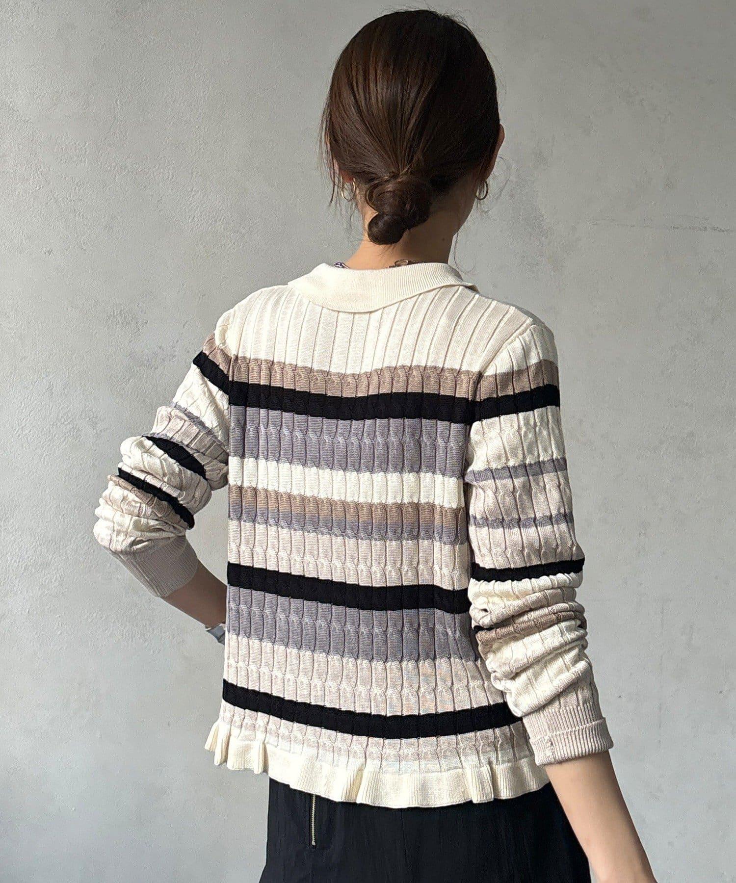 多色條紋針織Polo上衣