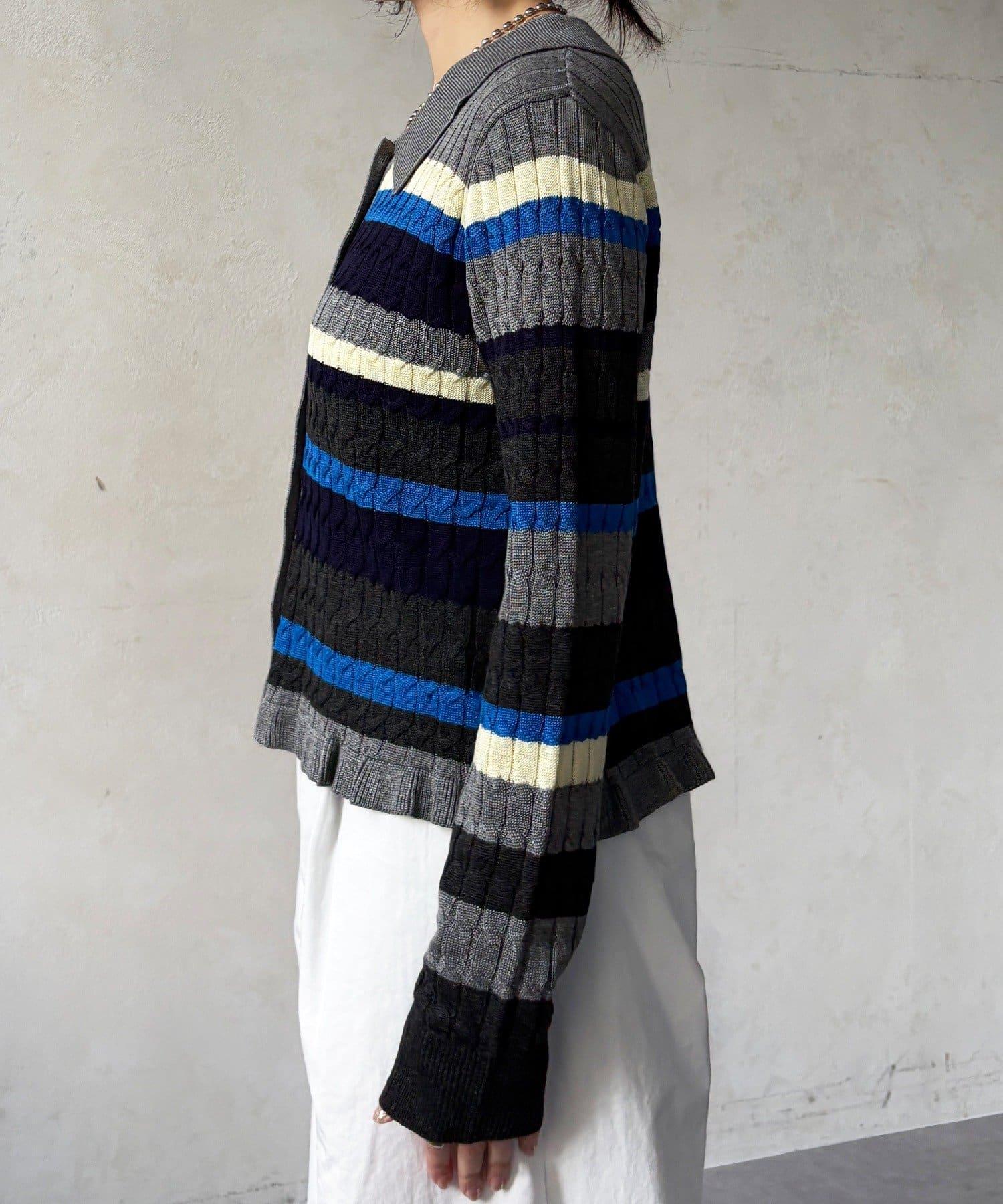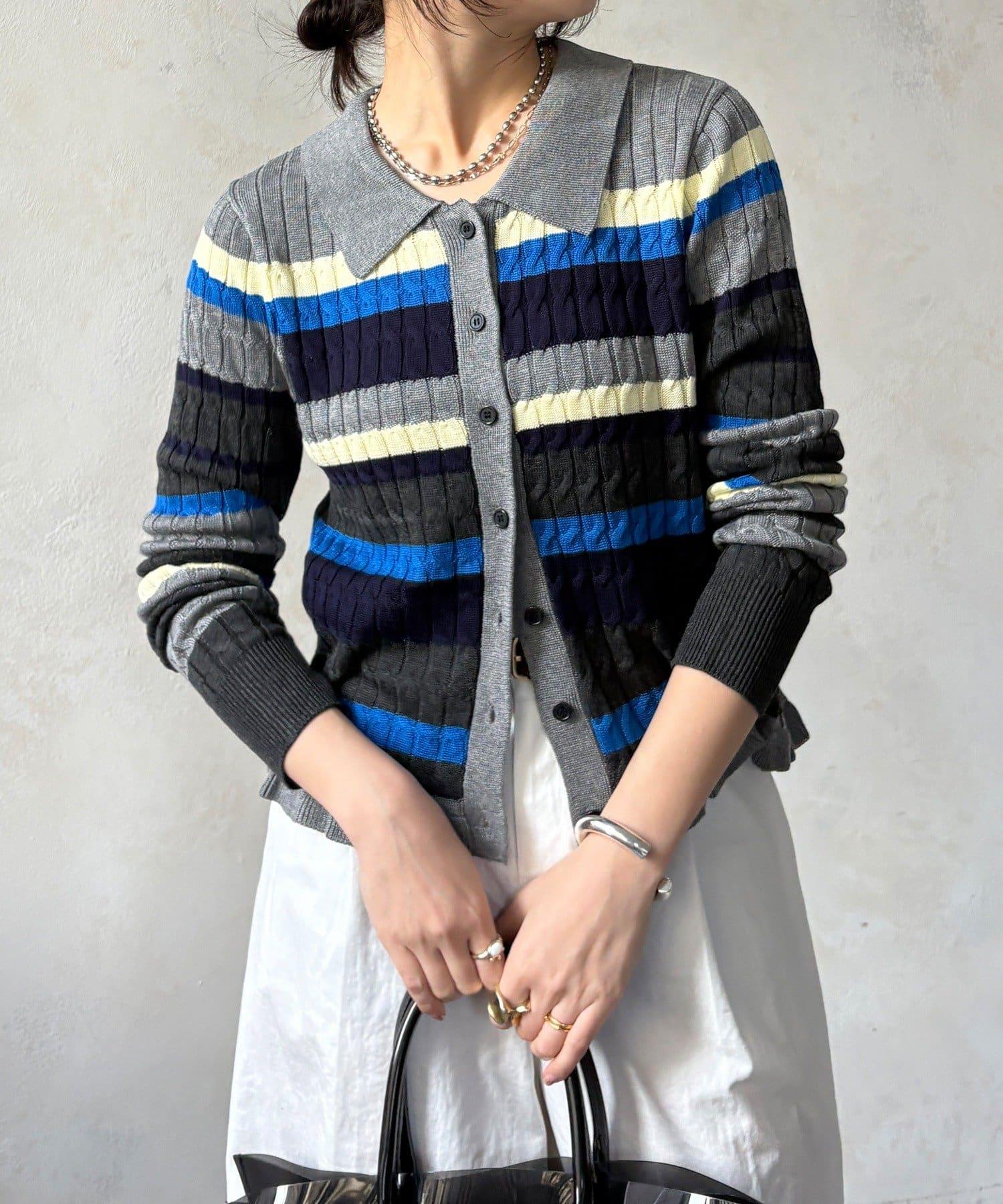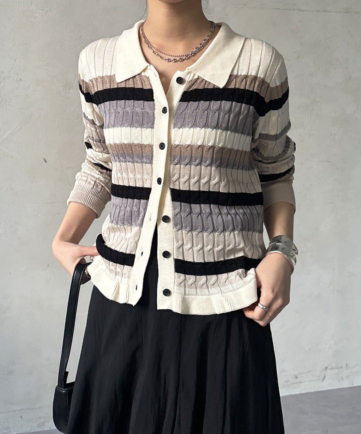 多色條紋針織Polo上衣