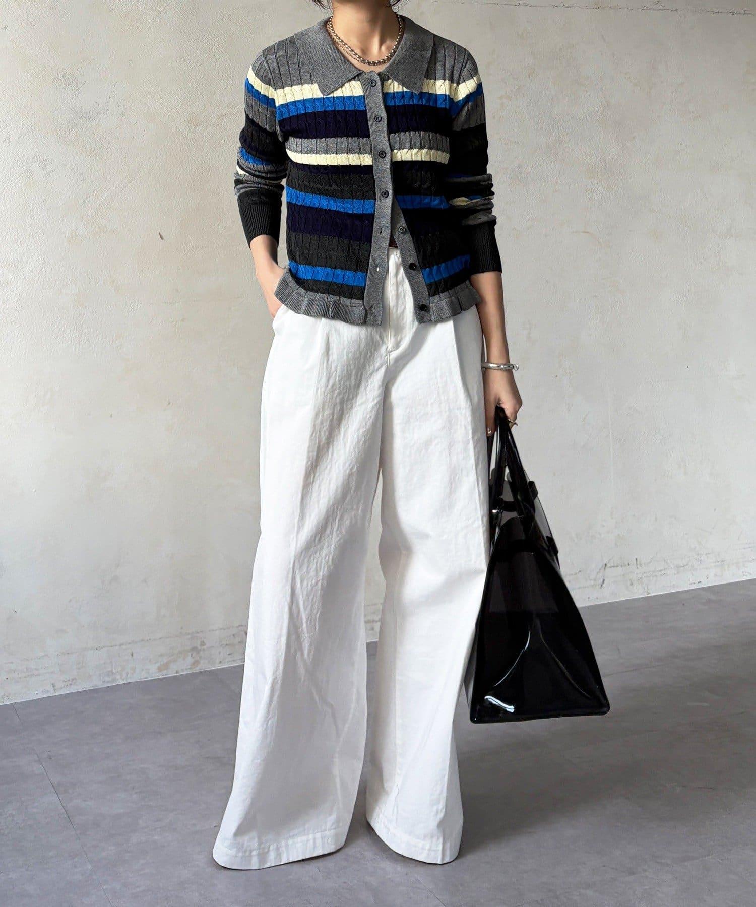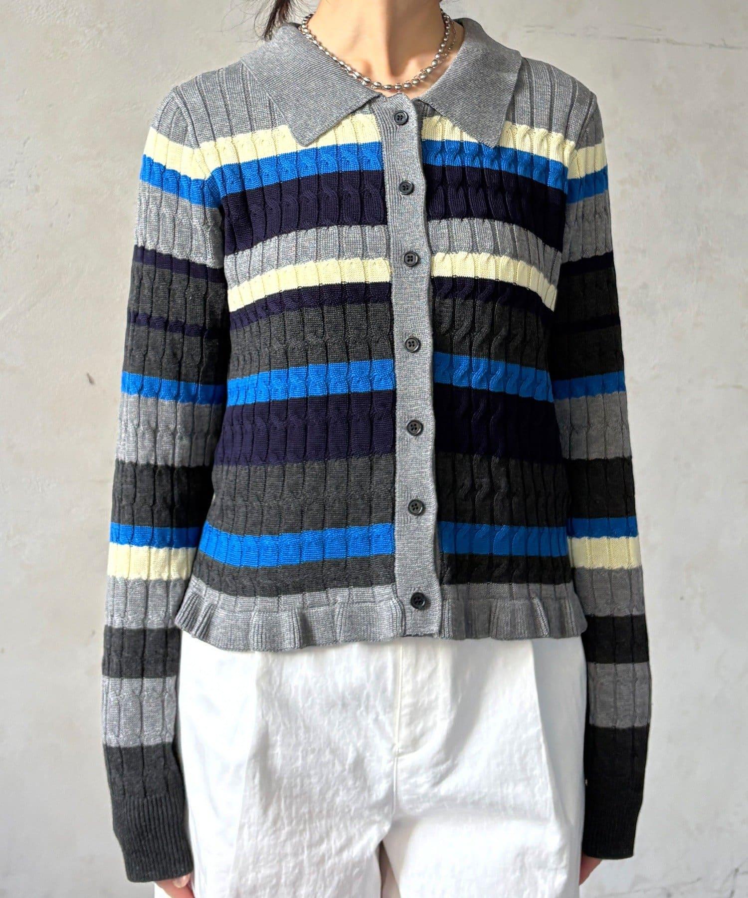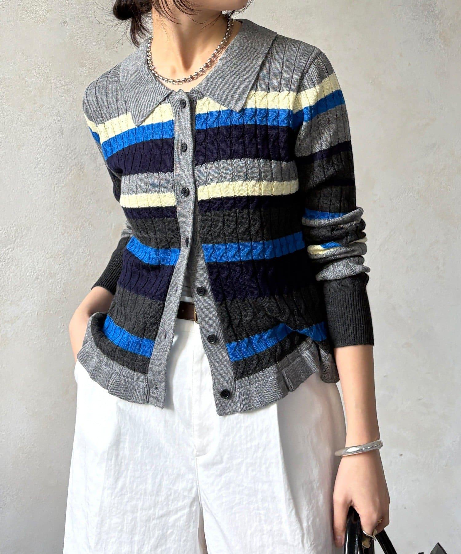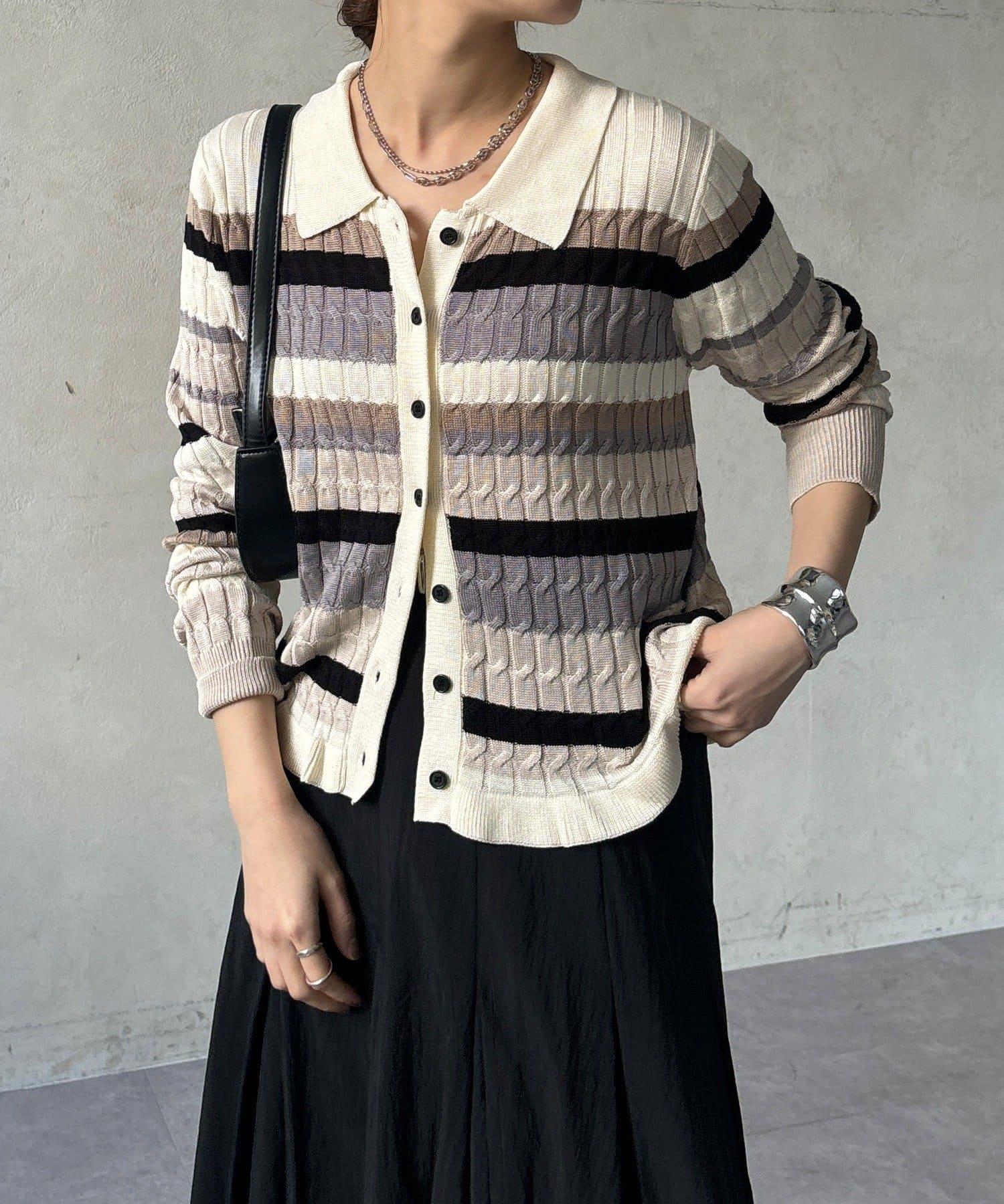 多色條紋針織Polo上衣