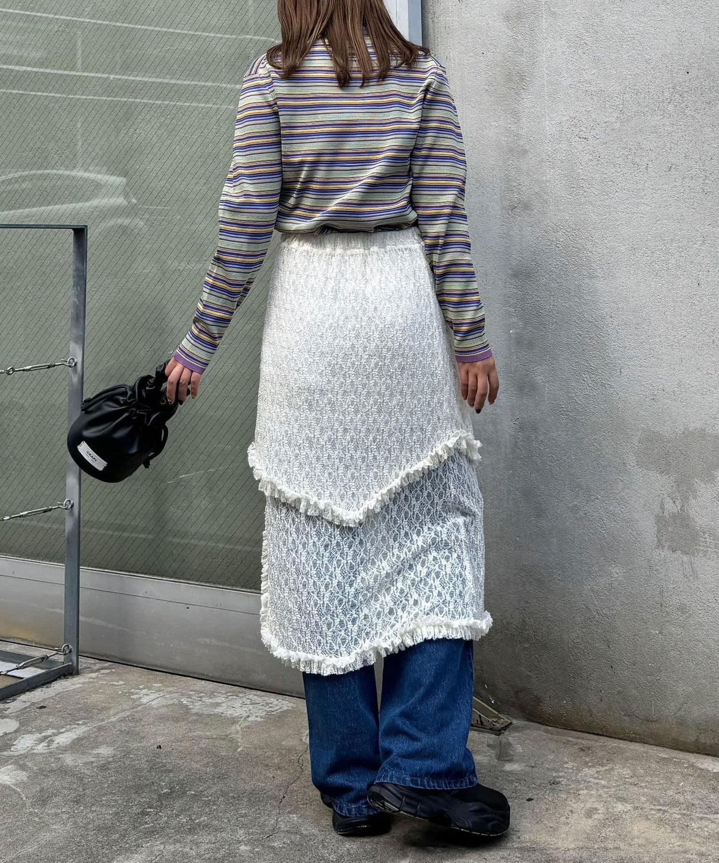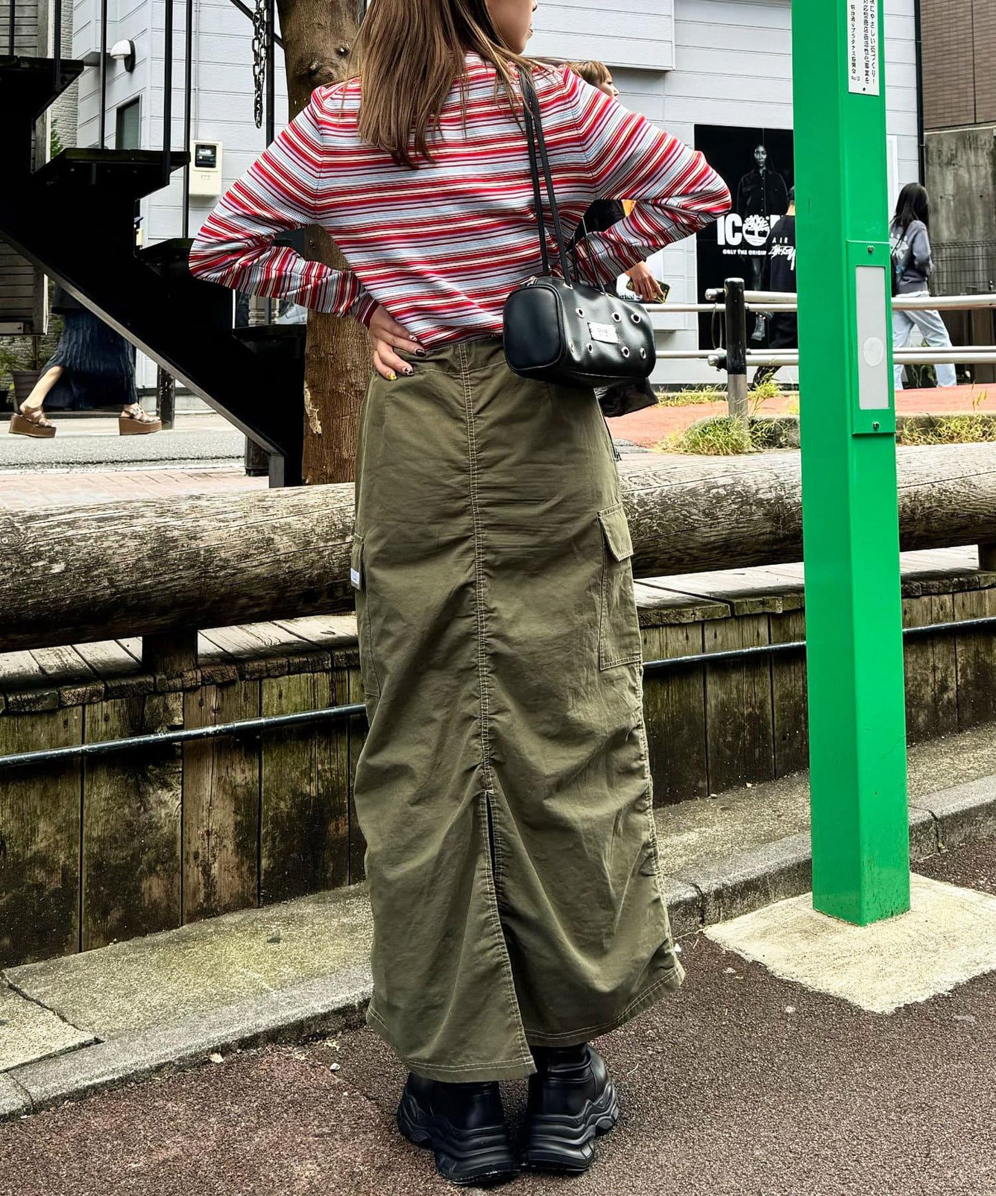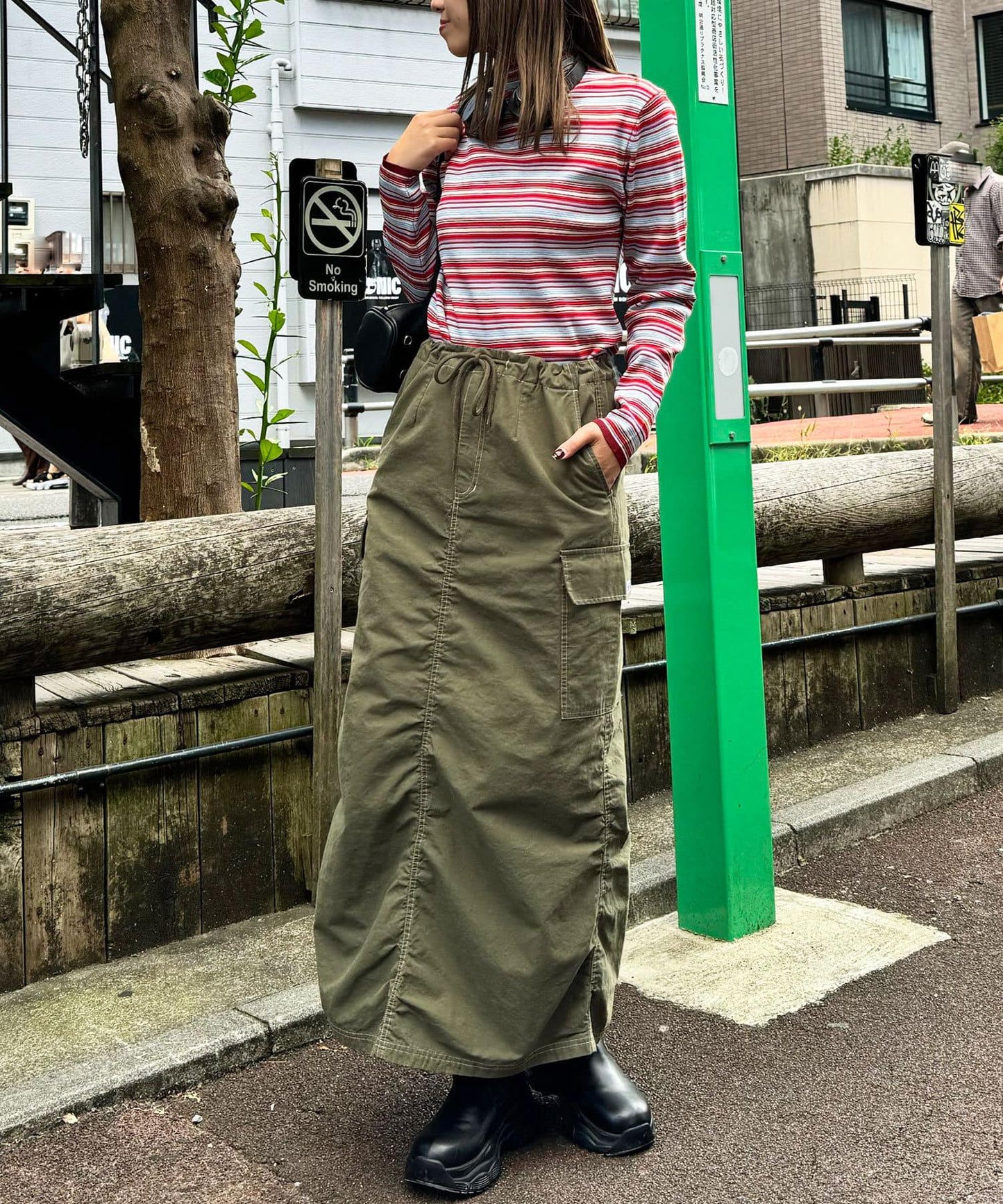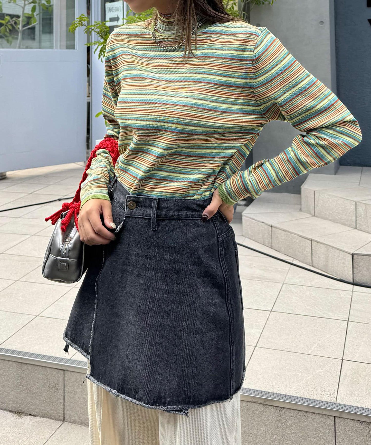 與高腰裙或長褲搭配時,利用高領毛衣的廓形打造出均衡的造型。