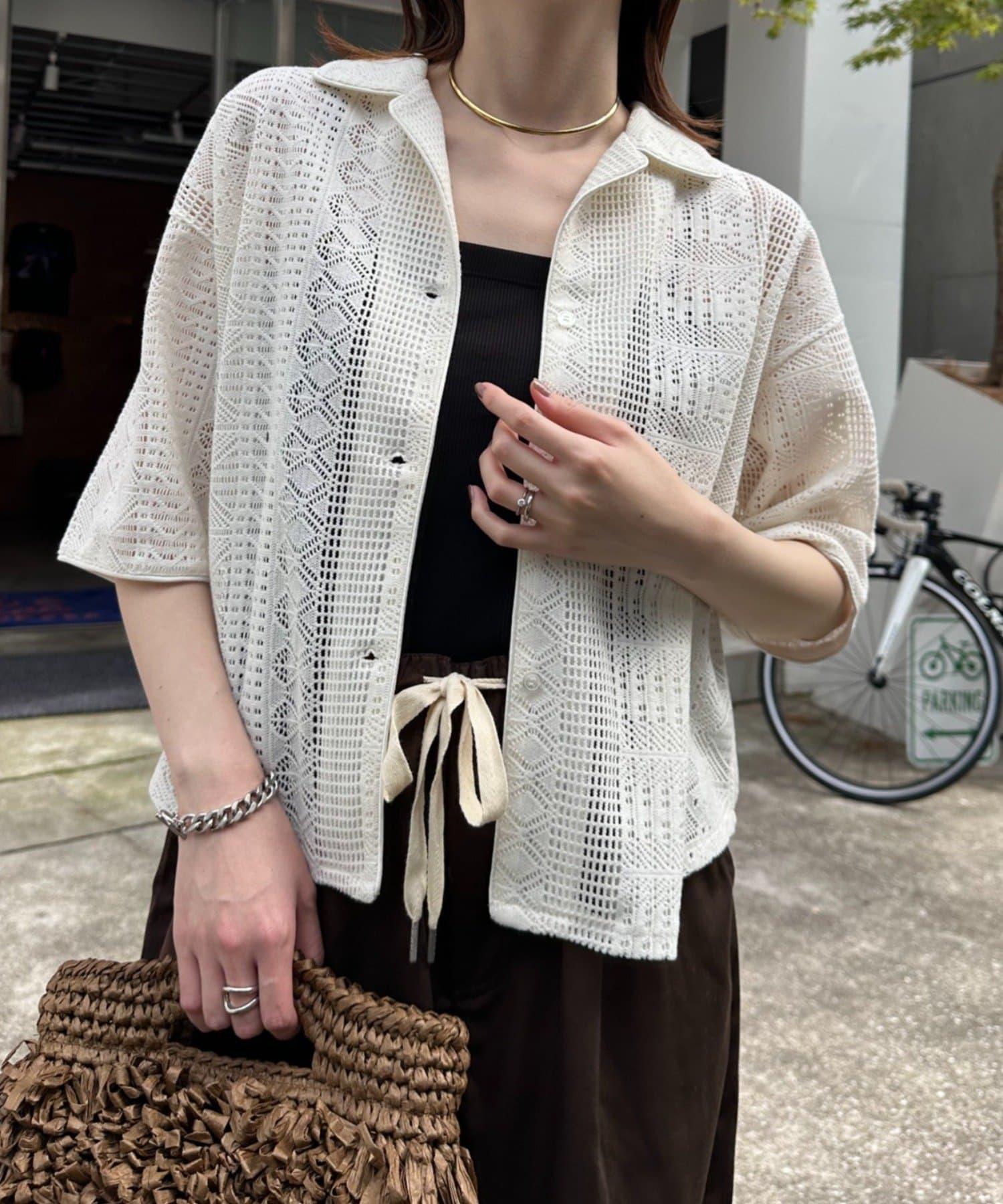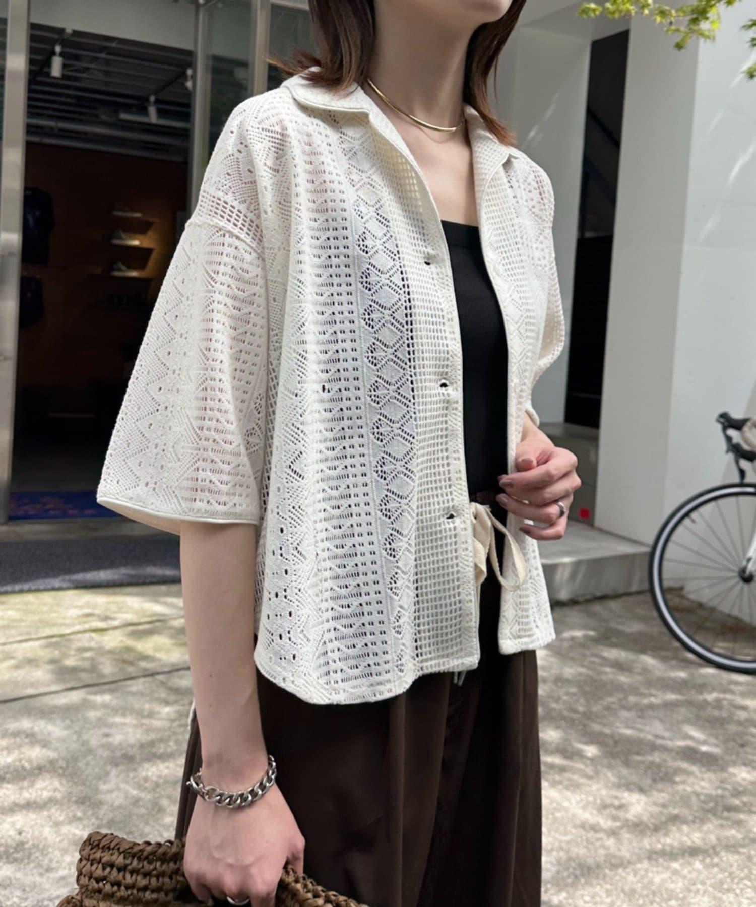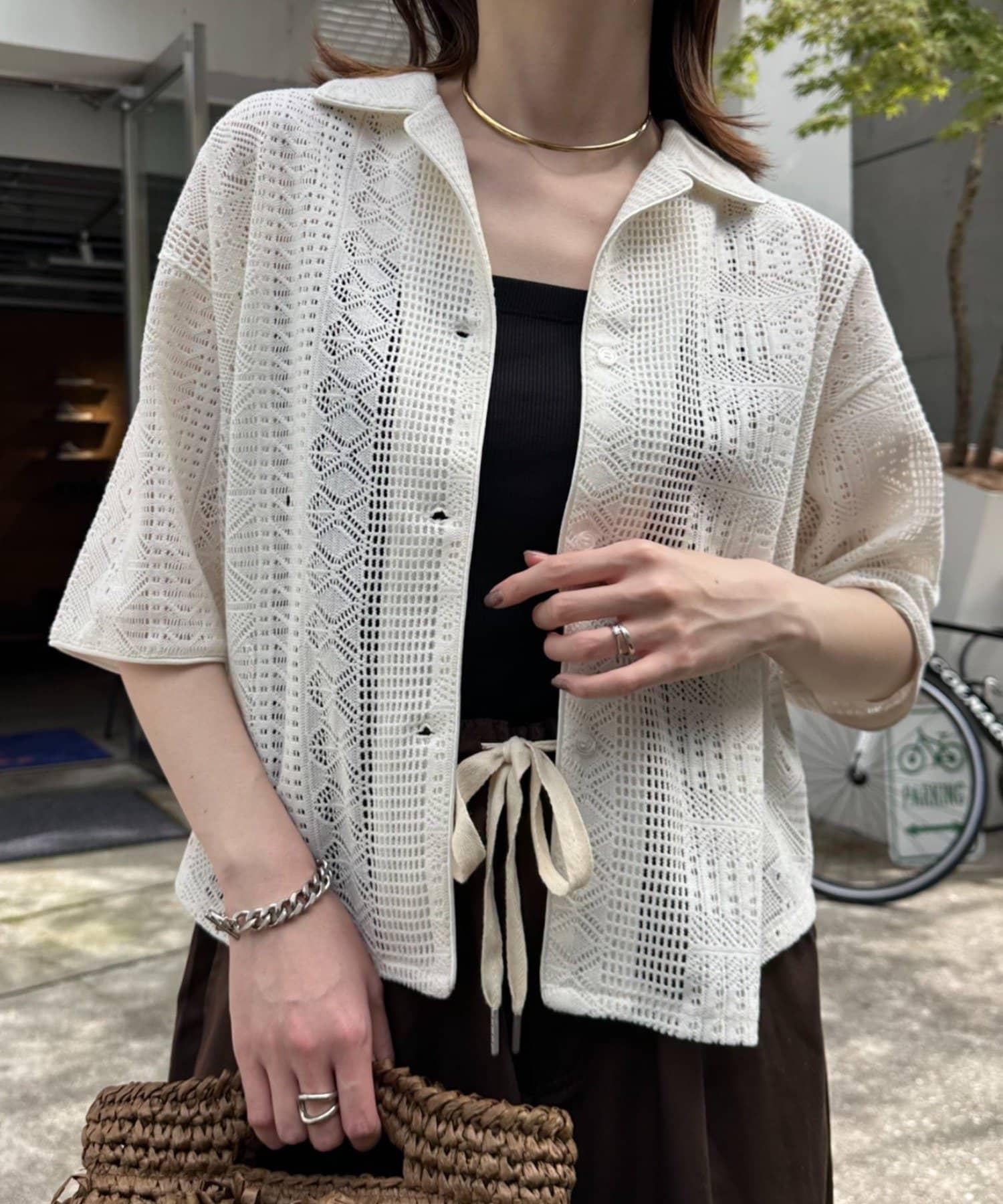 一件 "不太甜美 "的蕾絲襯衫,單穿也很好看。