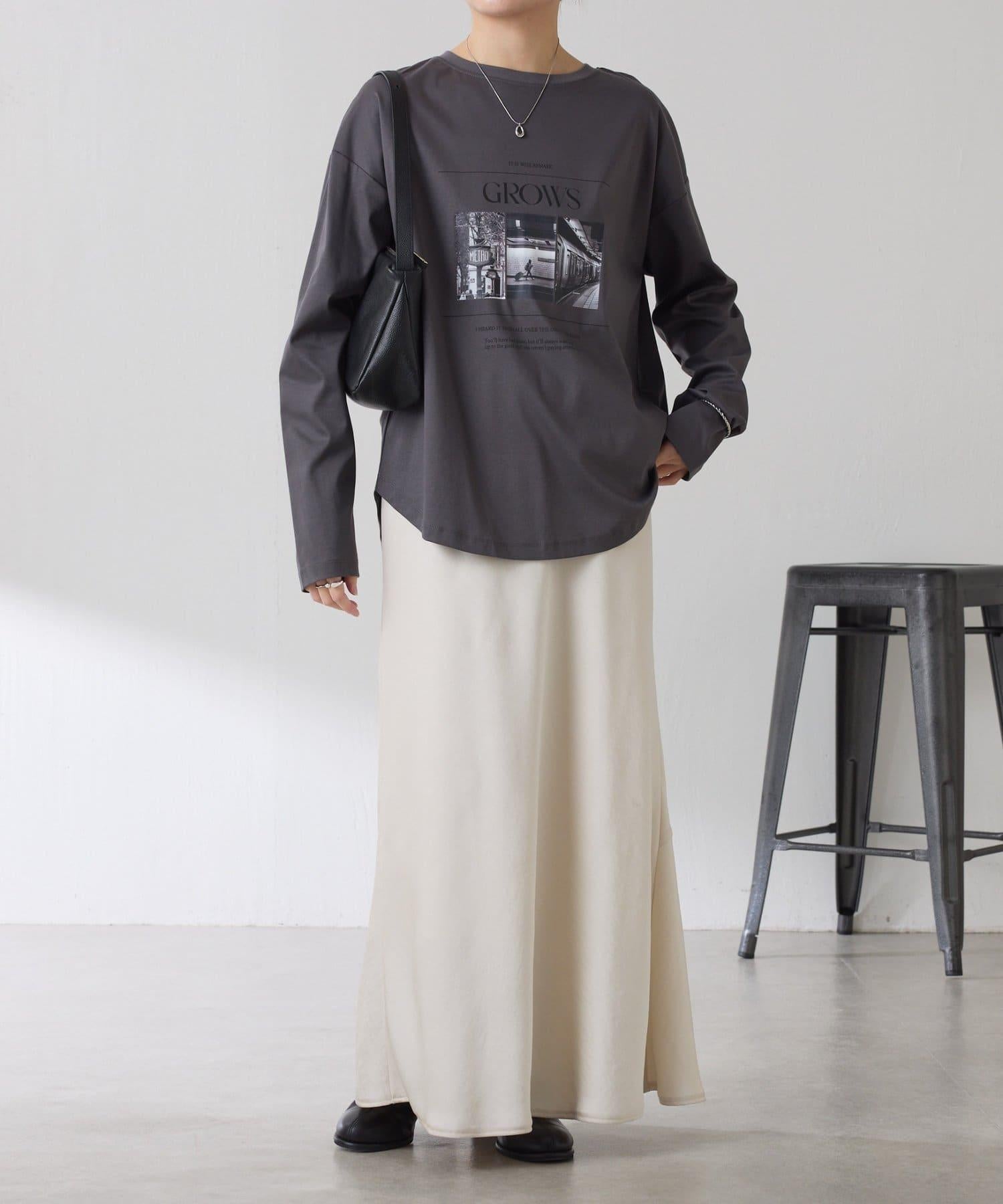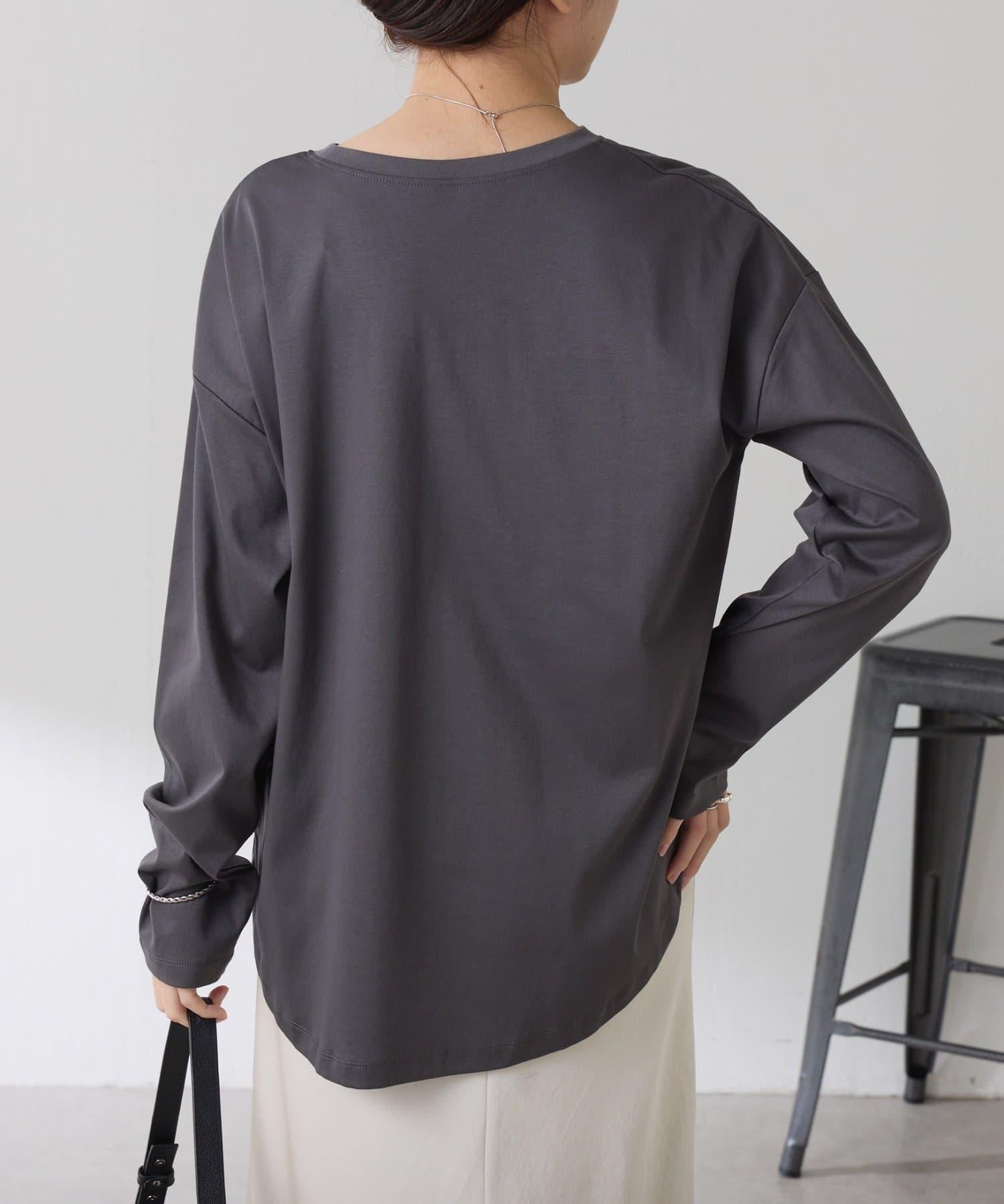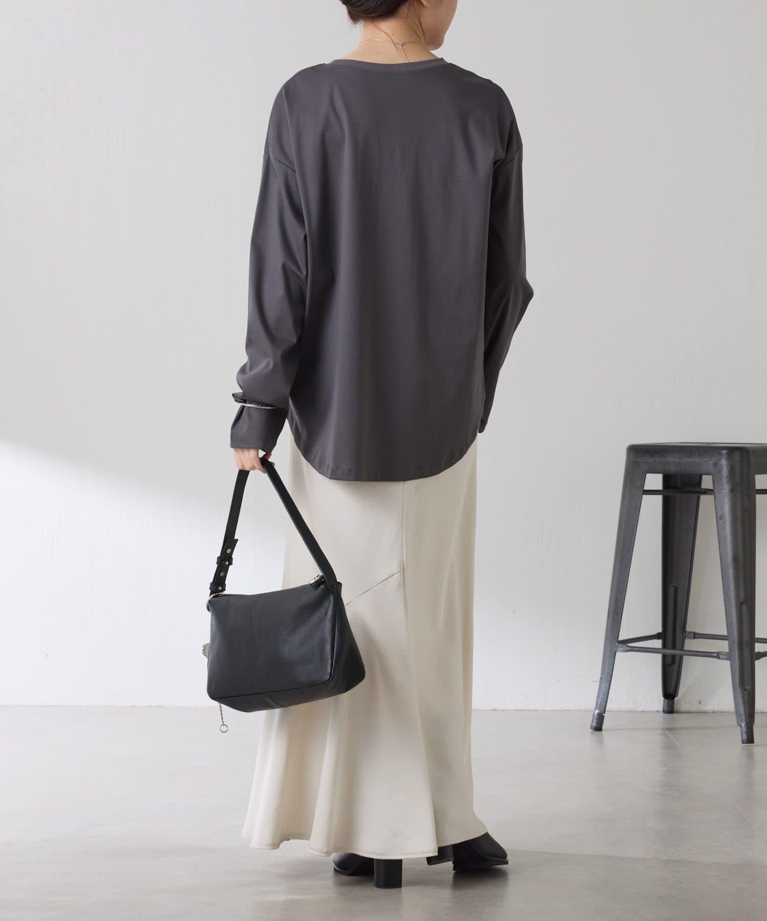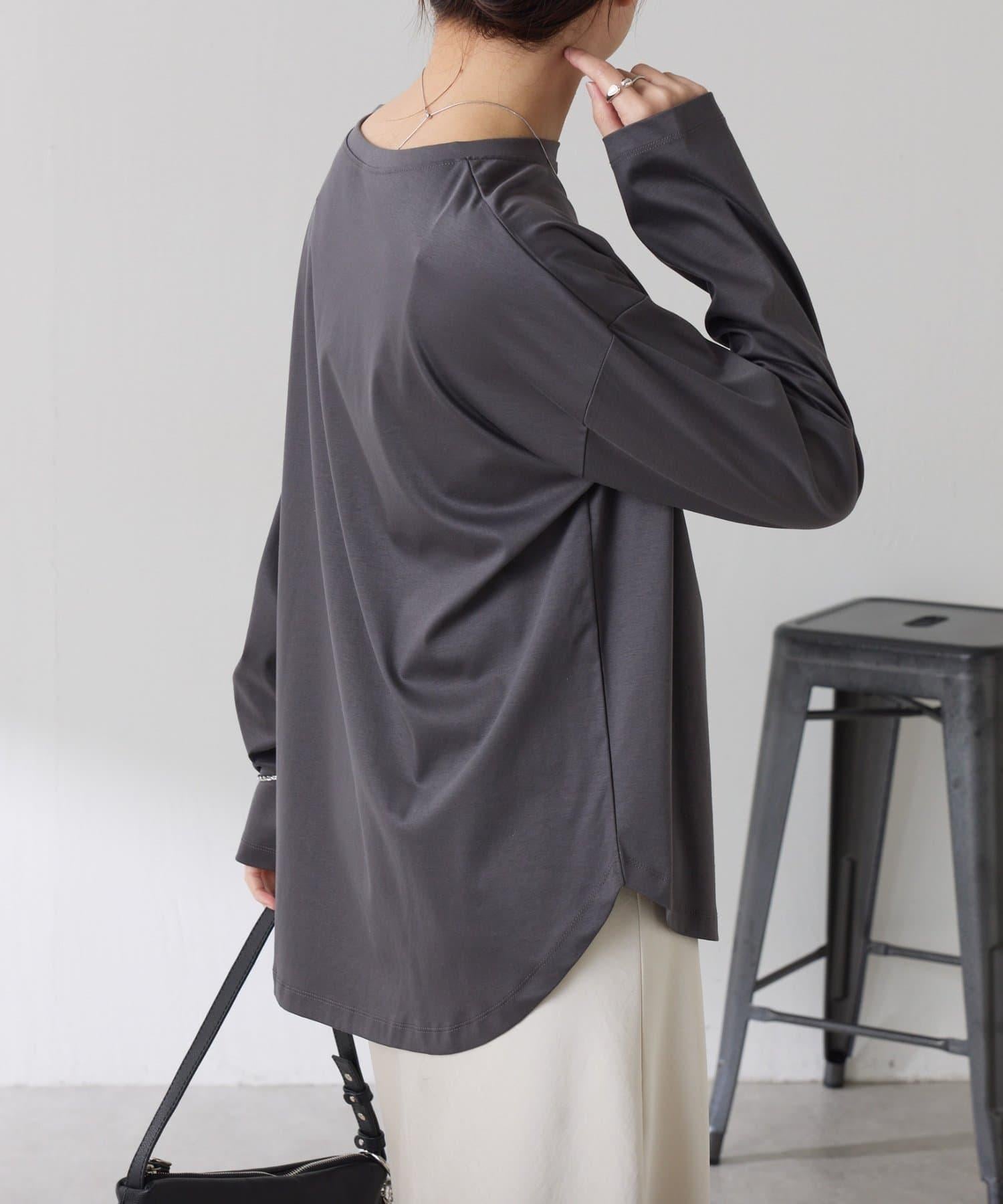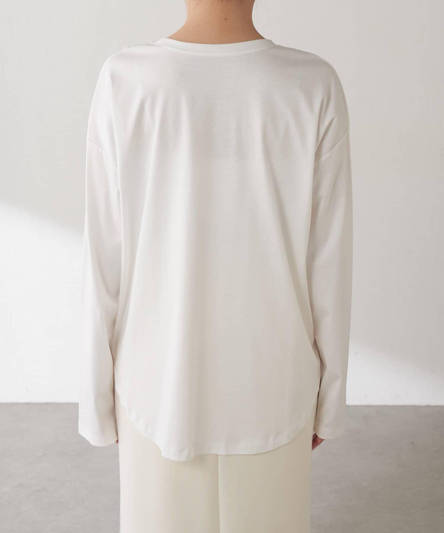 這款 T 恤的下襬採用圓形設計,即使外穿也能美美地圍在腰間。