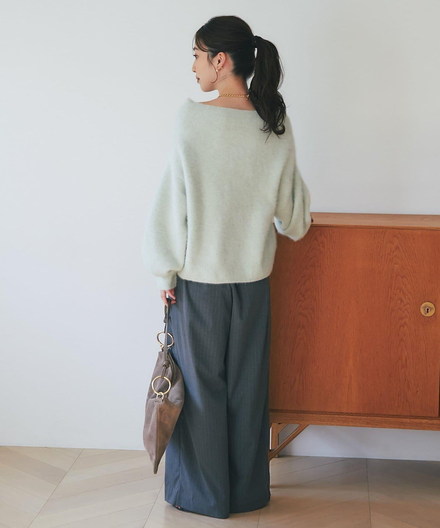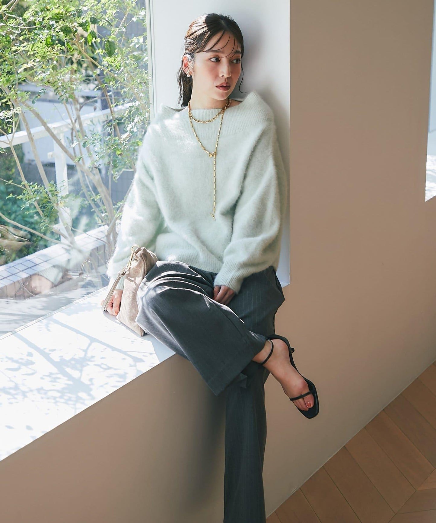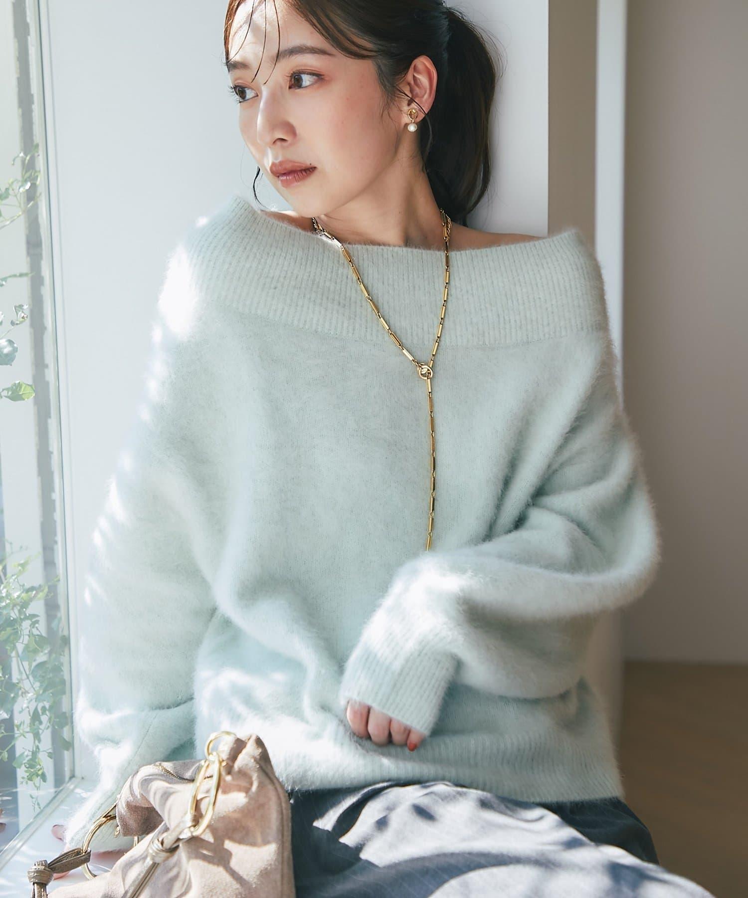 經典的瓶領針織衫,給人柔軟蓬鬆的感覺。