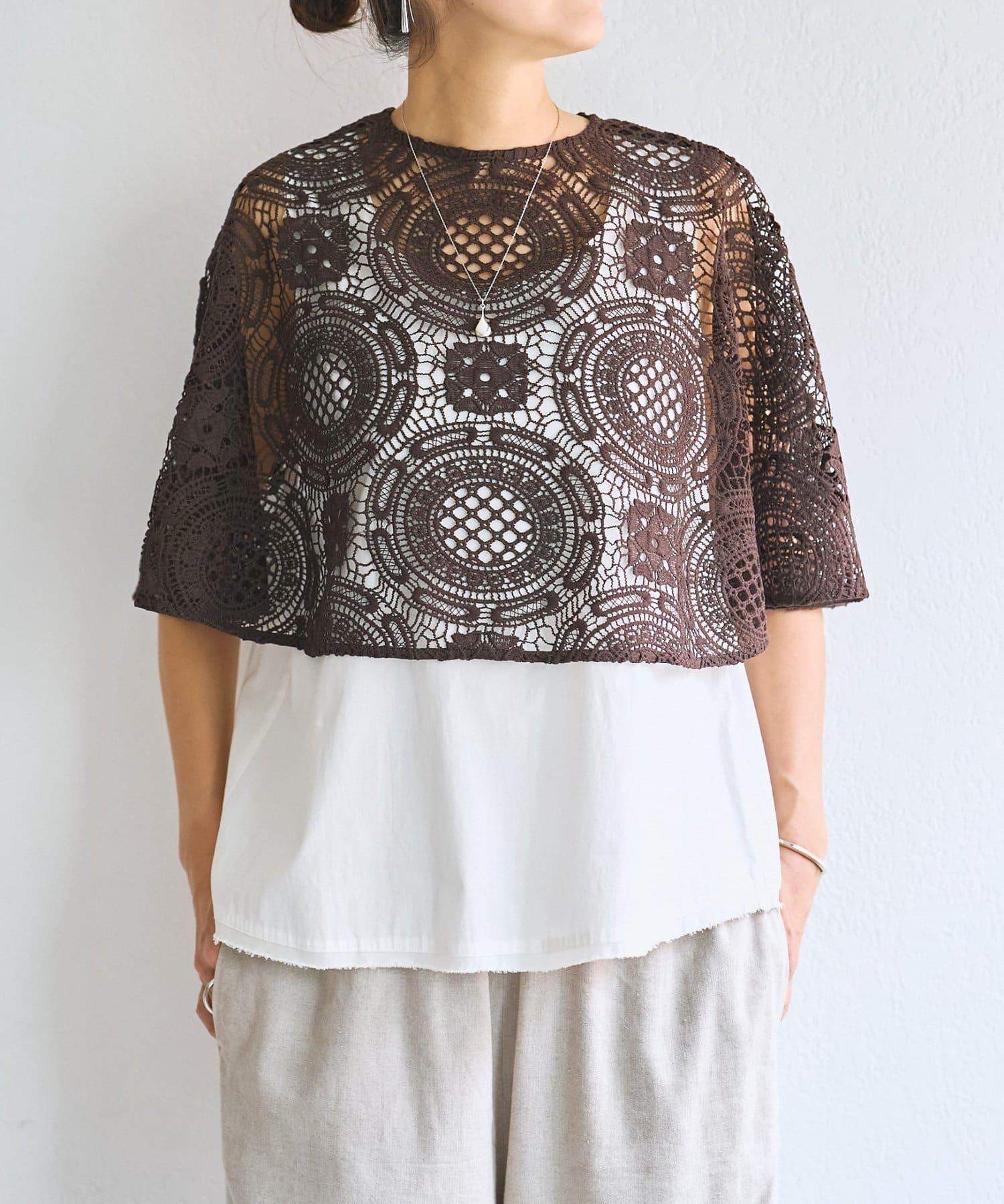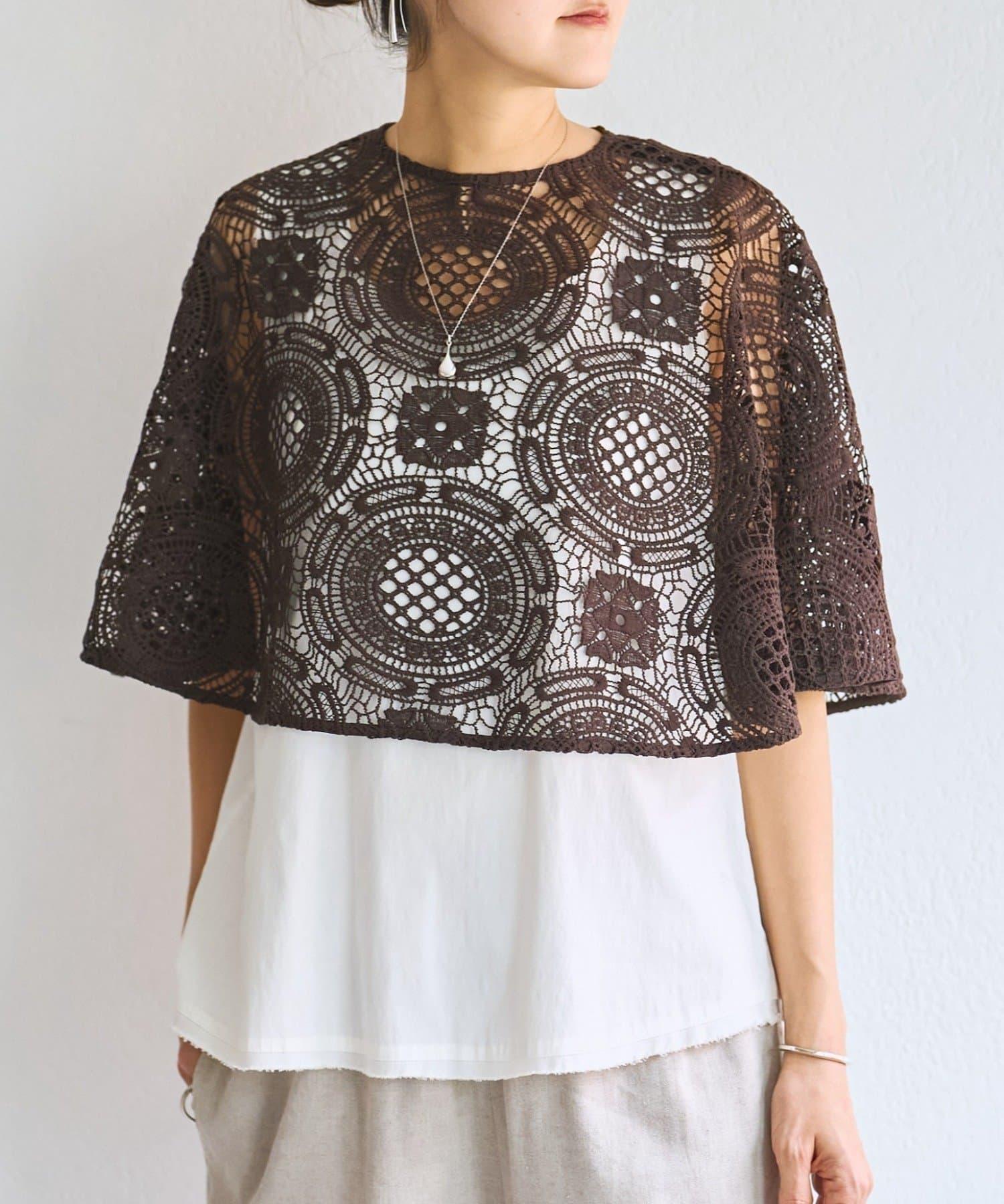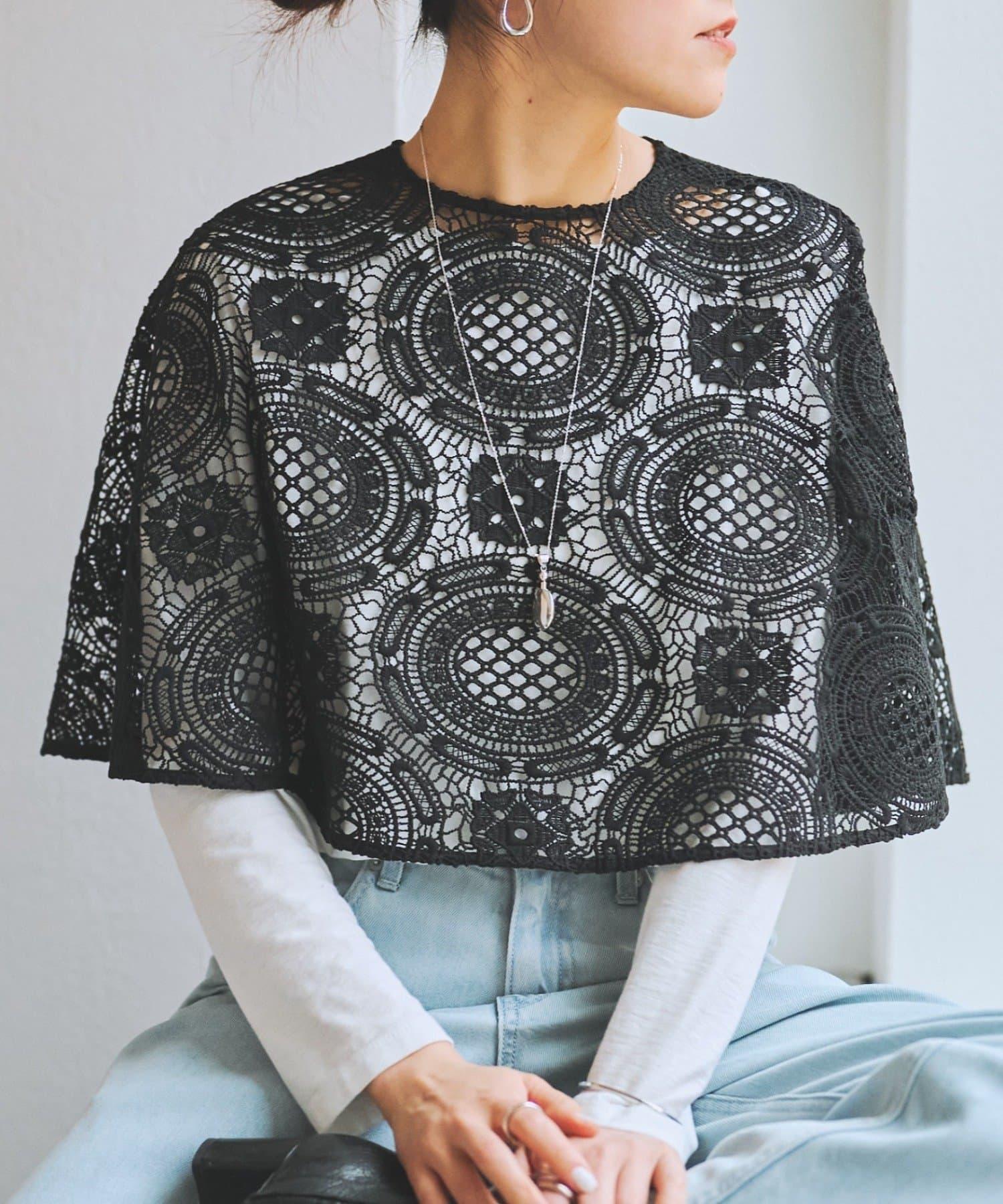 帶有醒目大圖案的蕾絲披風。