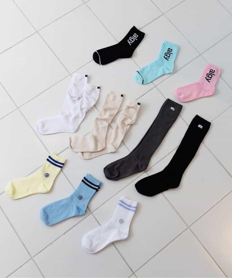緊身褲和襪子 "Big Logo 圓筒襪",由 ALGY 提供。