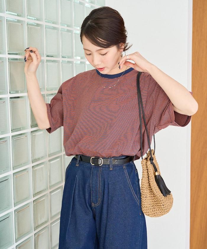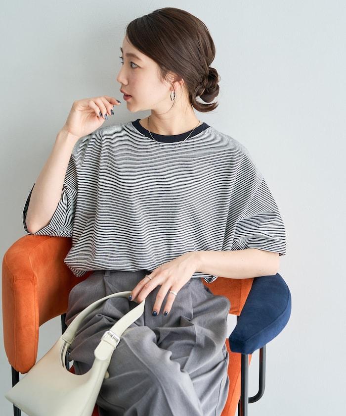 大尺寸剪裁 顏色 細條紋 短袖 T恤