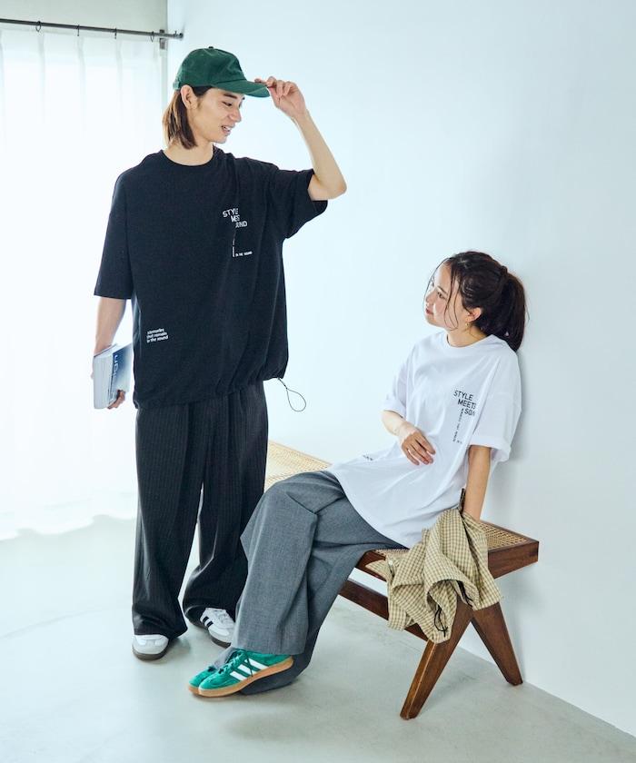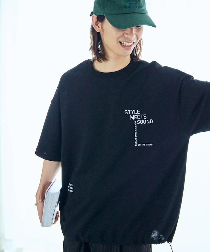 大輪廓設計刺繡下襬繩帶 T 恤