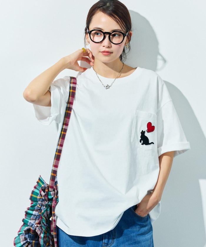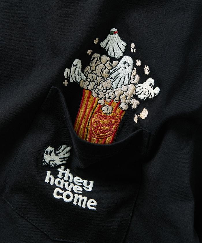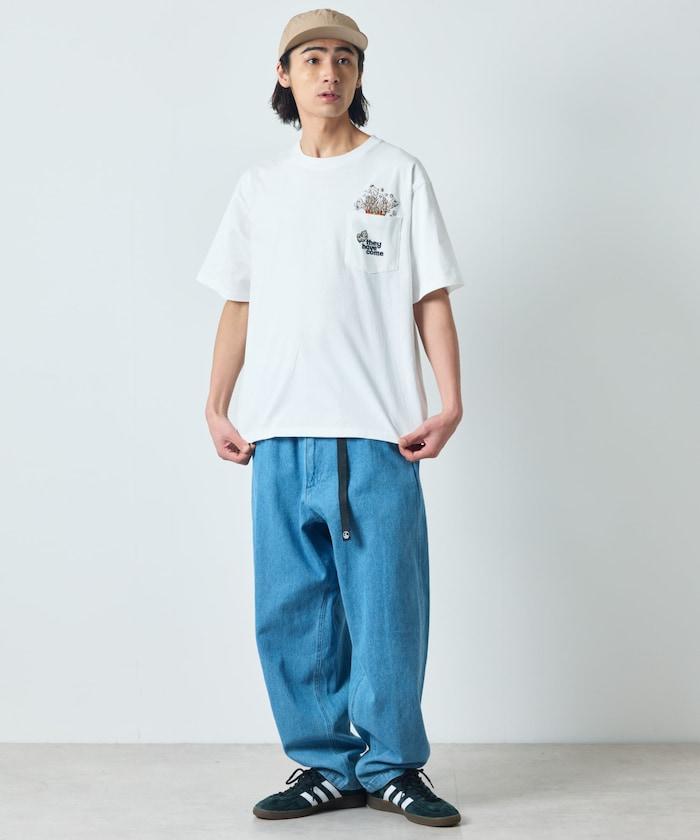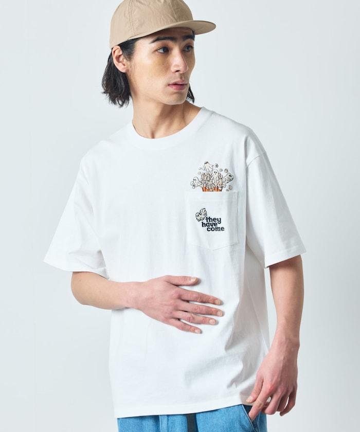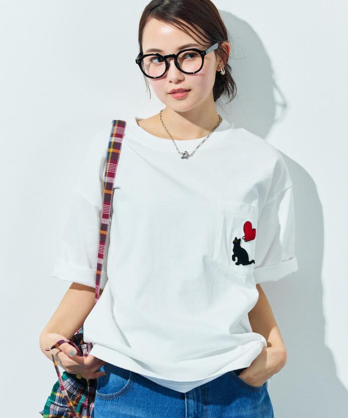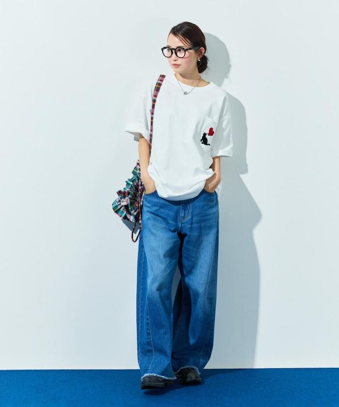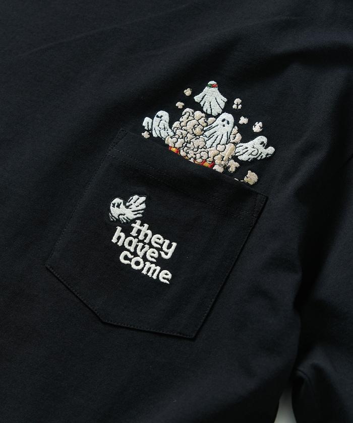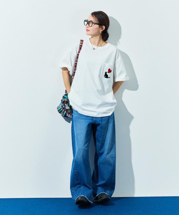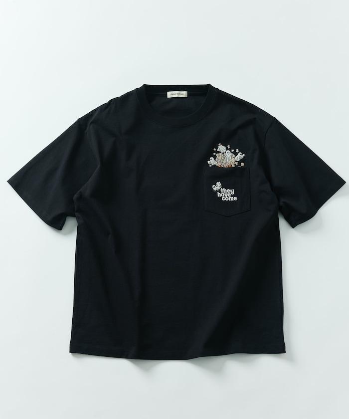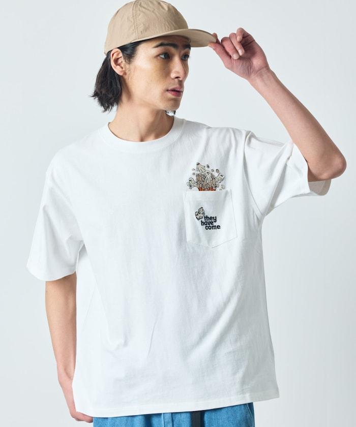 圓領 T 恤,刺繡設計充分利用了前口袋。