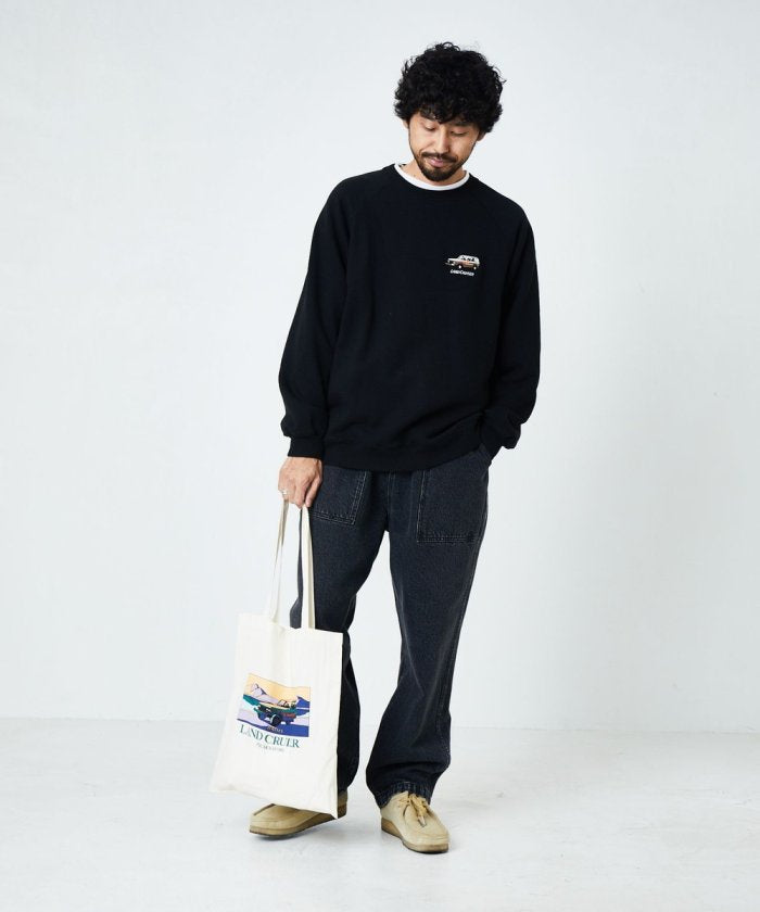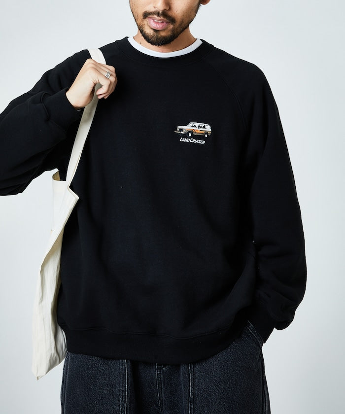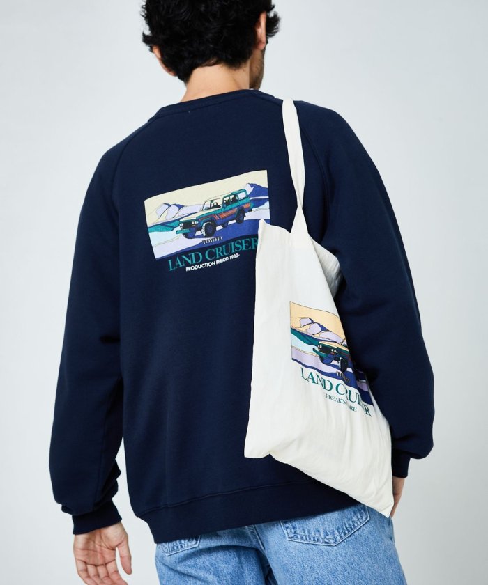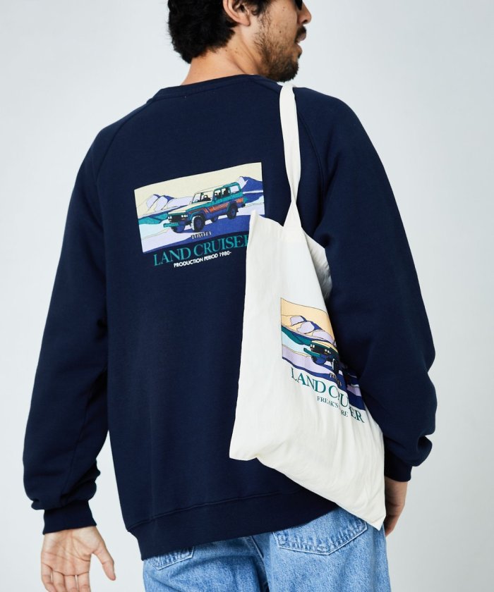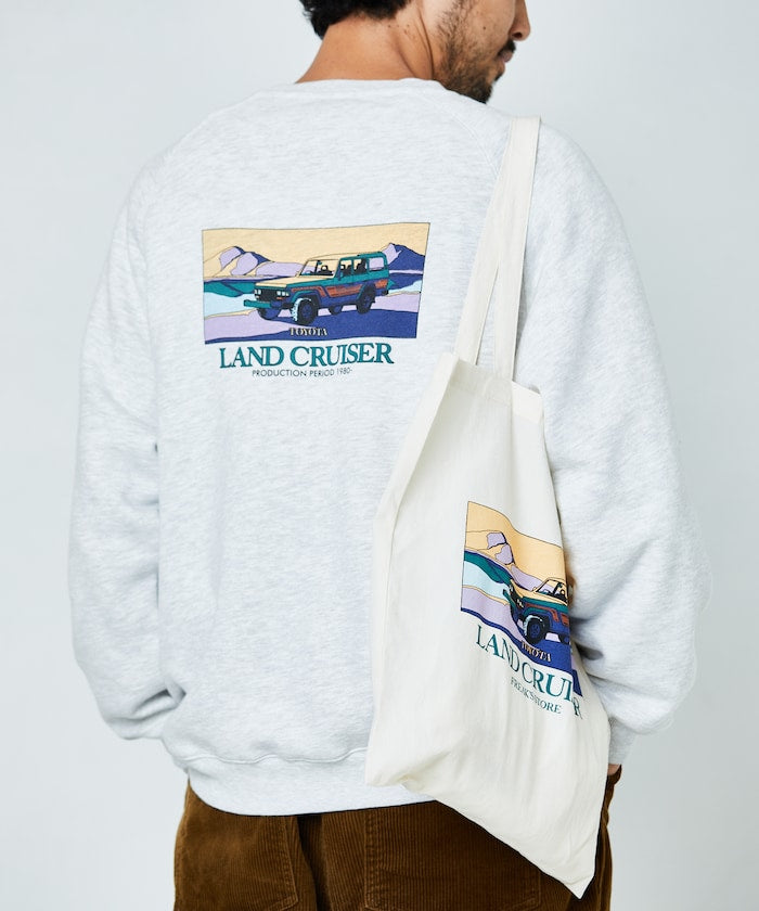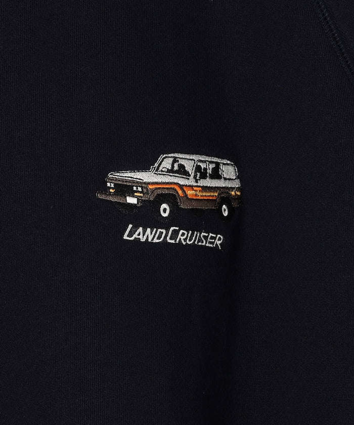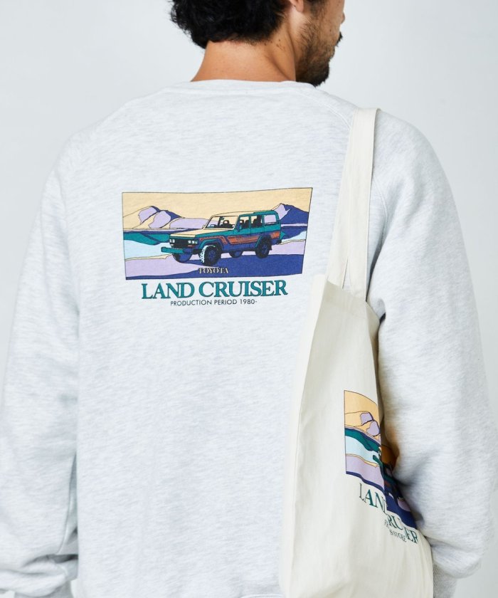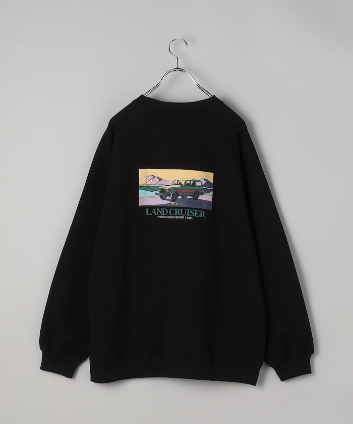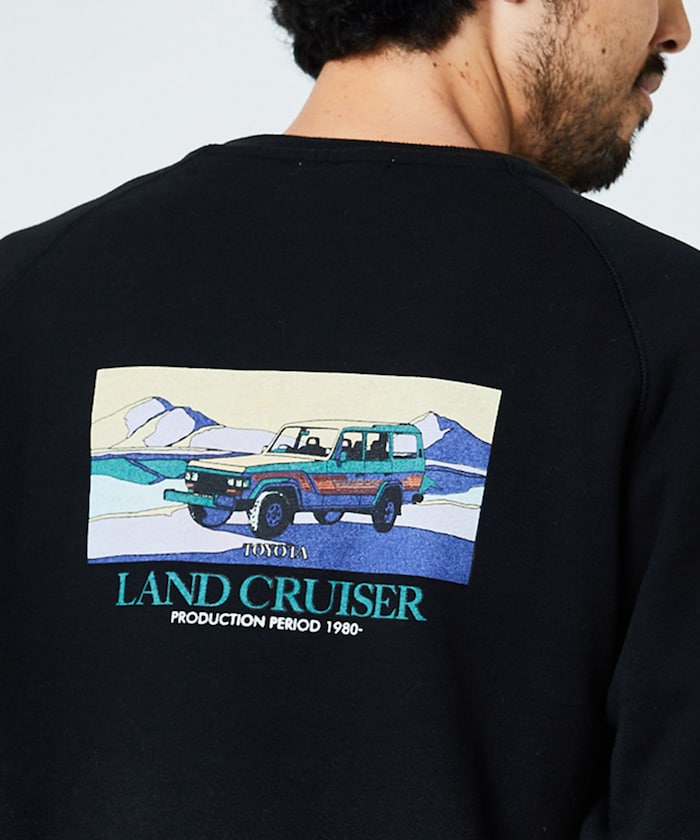 印花衛衣背面印有歷史悠久的👍豐田陸地巡洋艦圖案。