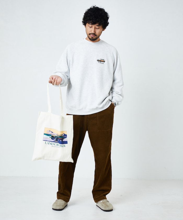 這款圓領運動衫上印有陸地巡洋艦的圖案,色彩搭配令人聯想到清晨、正午和傍晚,是 "任何時候都值得信賴的夥伴"。