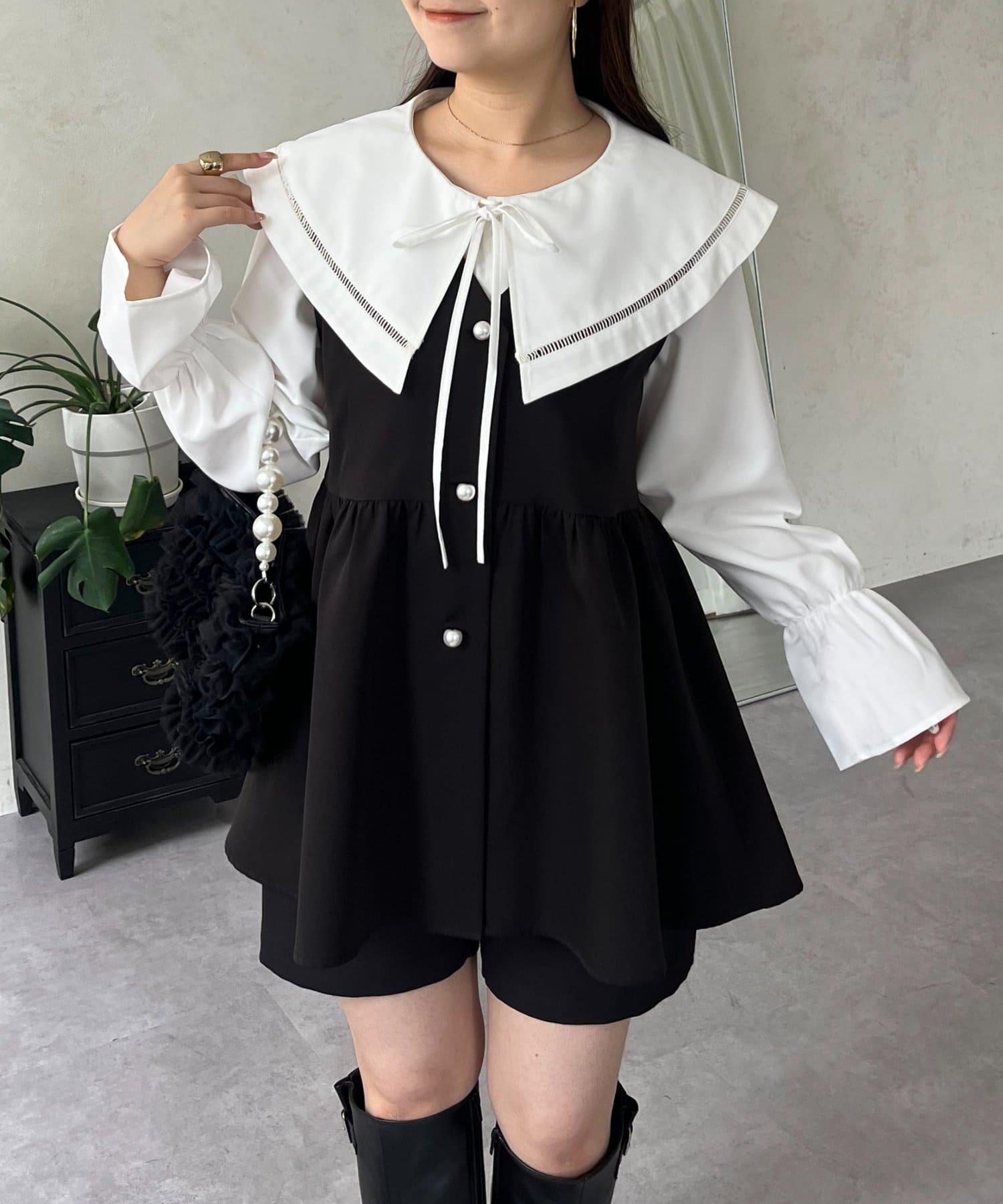 上衣 / 多層次 / 左右穿 / 成人可愛 / 大領