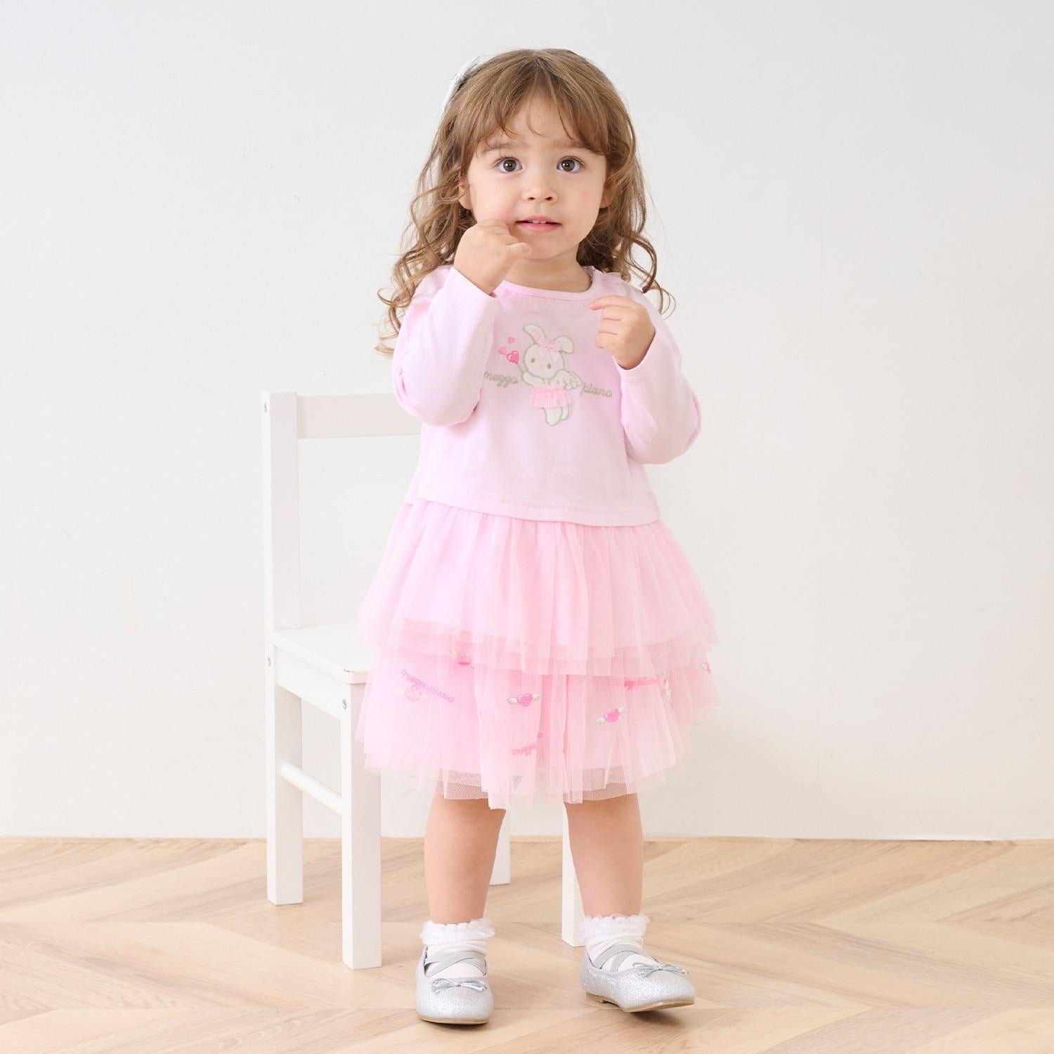 荷葉邊的下襬勾勒出兔子穿著與兔子相同裙子的輪廓。