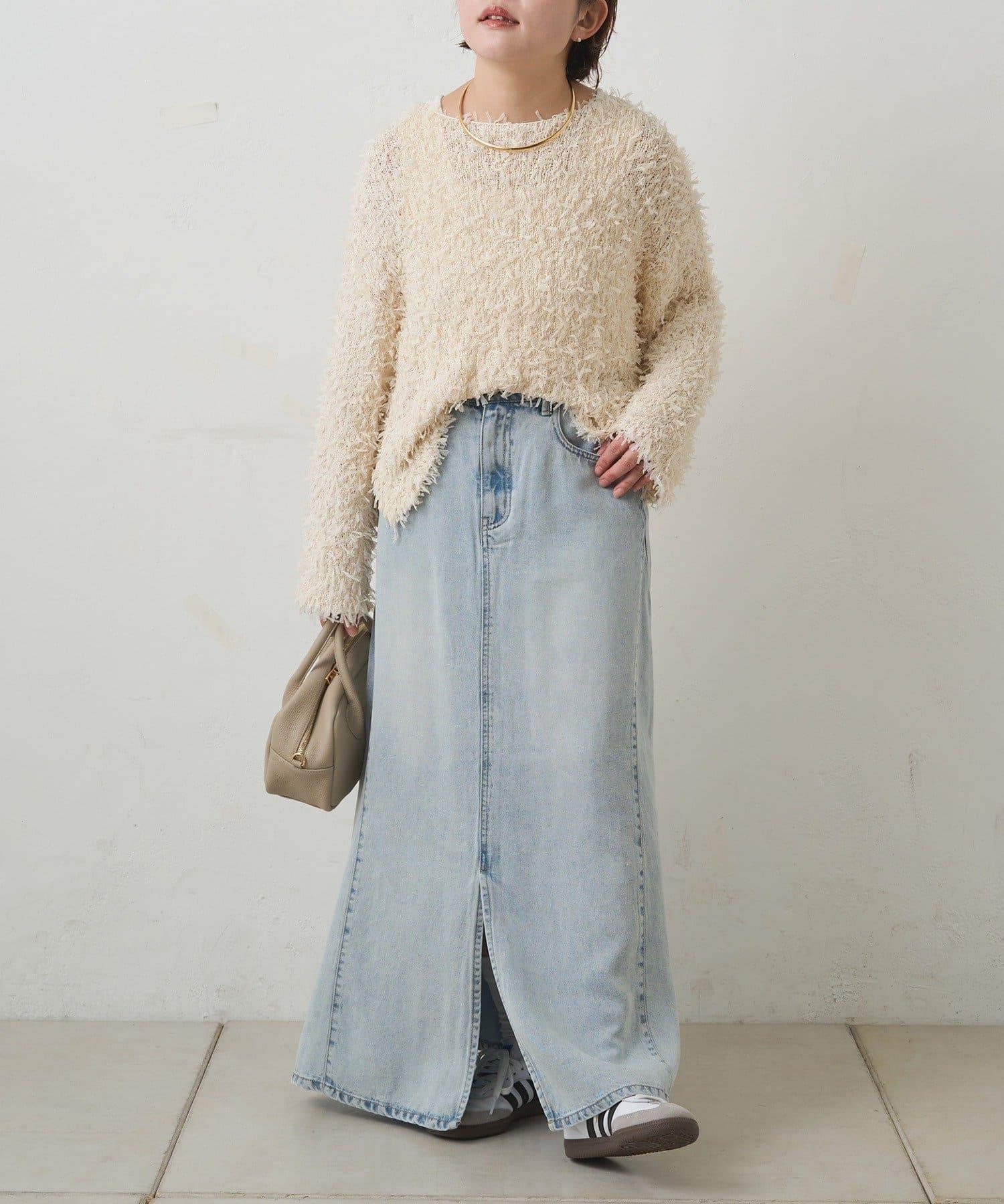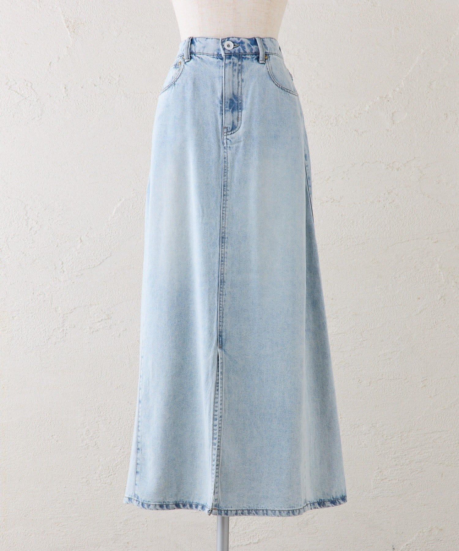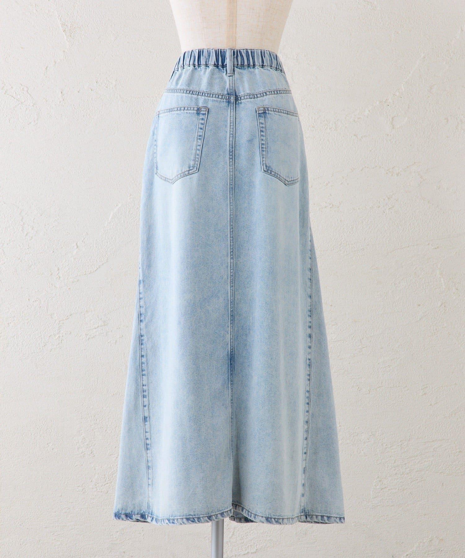 簡潔的梯形輪廓和柔軟舒適的牛仔長裙。