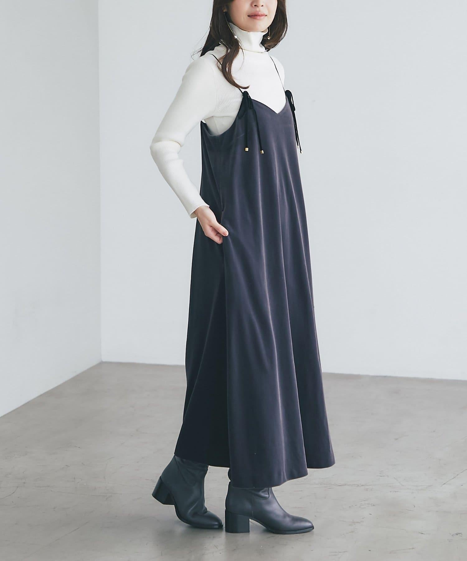 天鵝絨吊帶連衣裙,烘托季節氣氛。