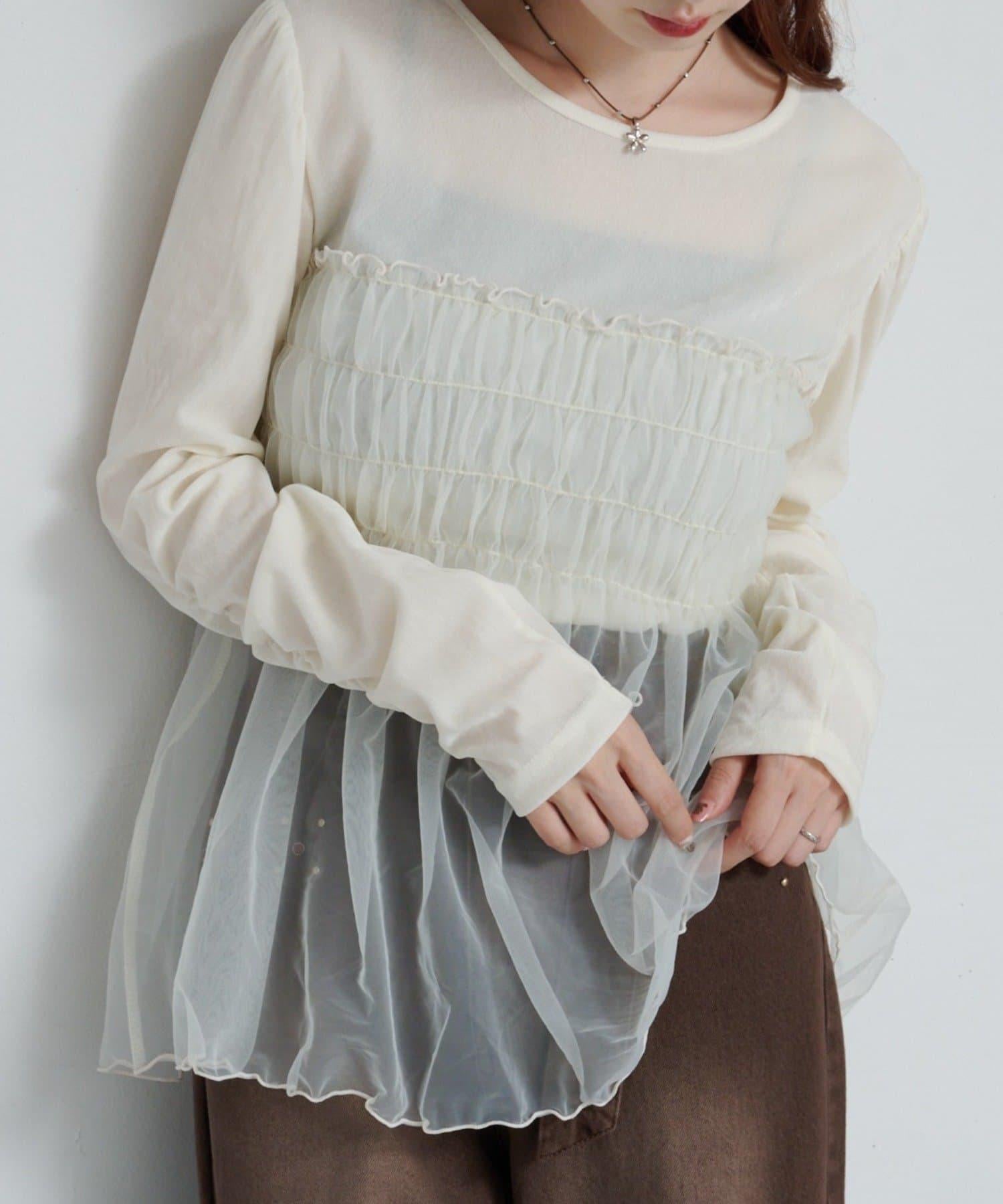 這款迷人的上衣由閃亮的絲絨面料和柔軟透明的薄紗對接而成。