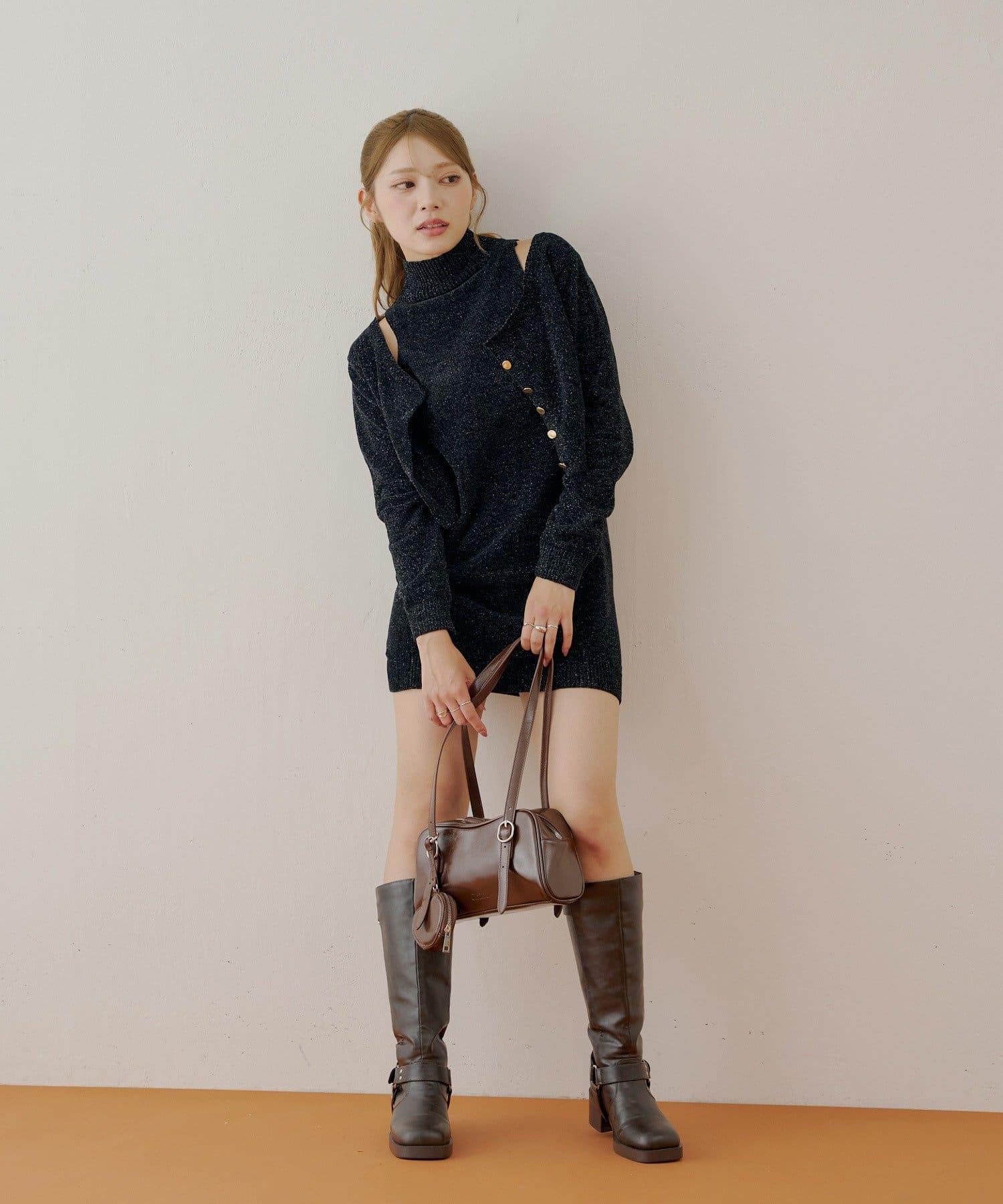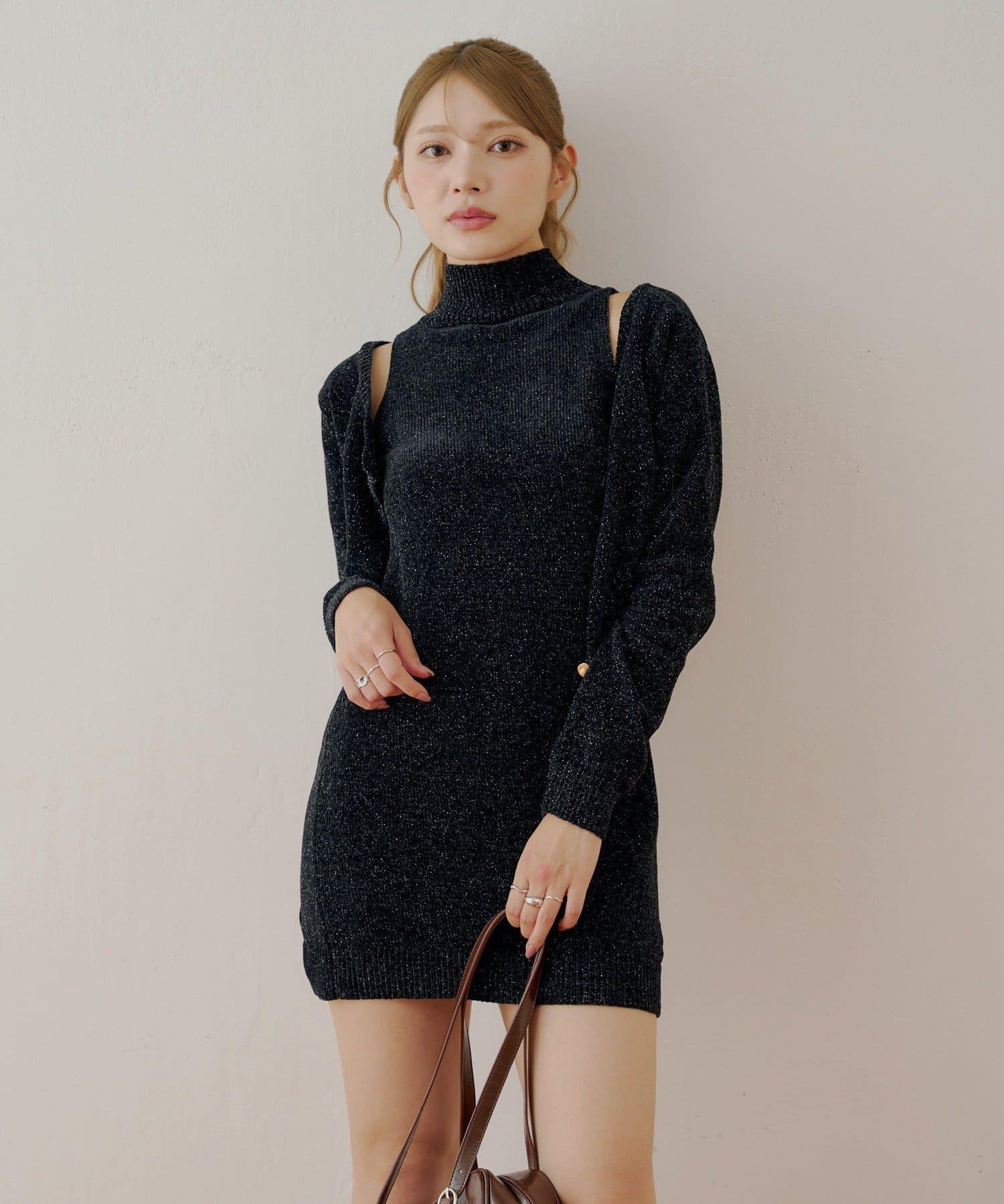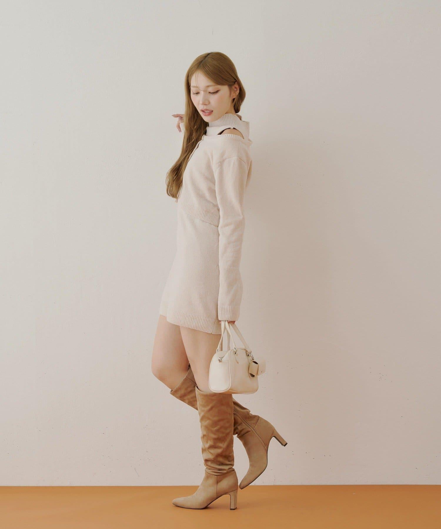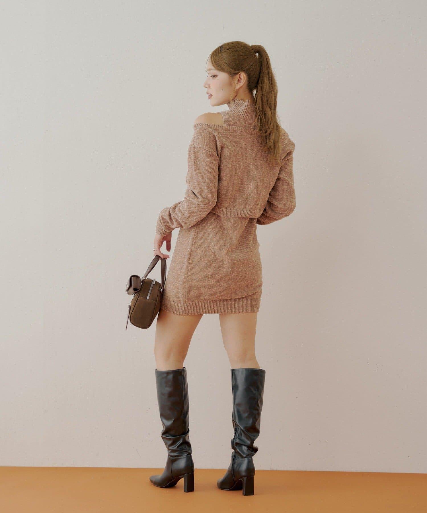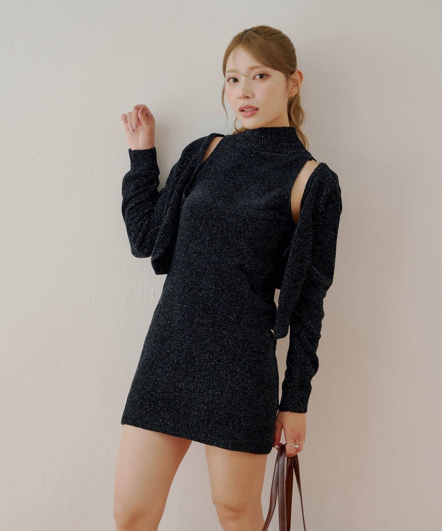 絲絨莫爾無袖連體+開衫套裝,恰到好處地展現肌膚。